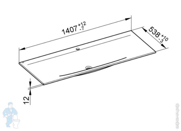 Раковина Keuco Edition Lignatur 1405х538 накладная на тумбу,2 отверстия под смес., белый 33360311402Код: 182563