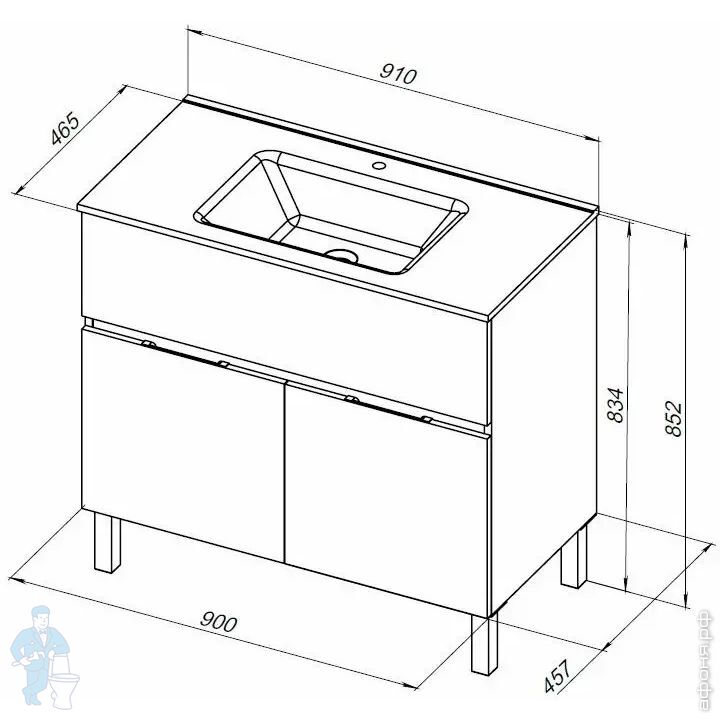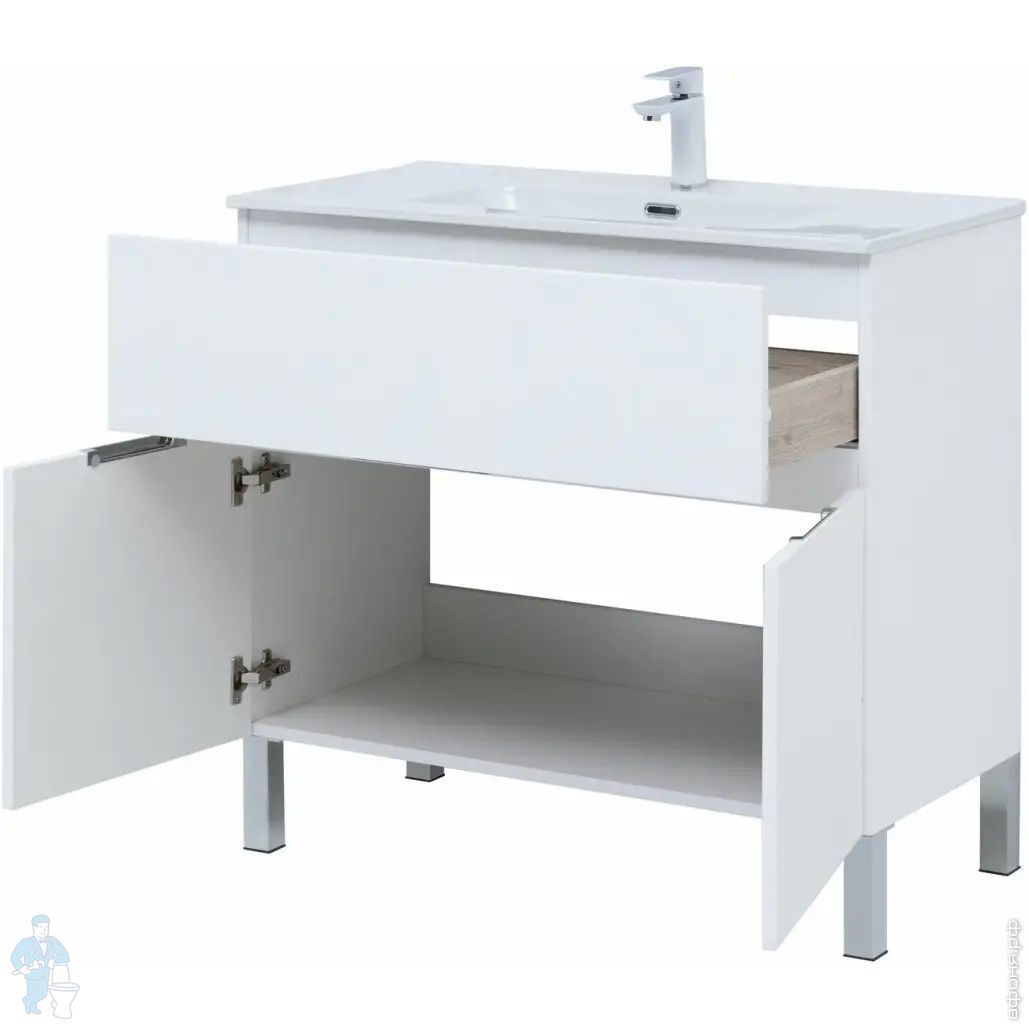 Тумба под умывальник Aquanet Алвита New 900х834х457 напольная, 1 ящ., 2 дверцы, белый матовый 303914Код: 319173