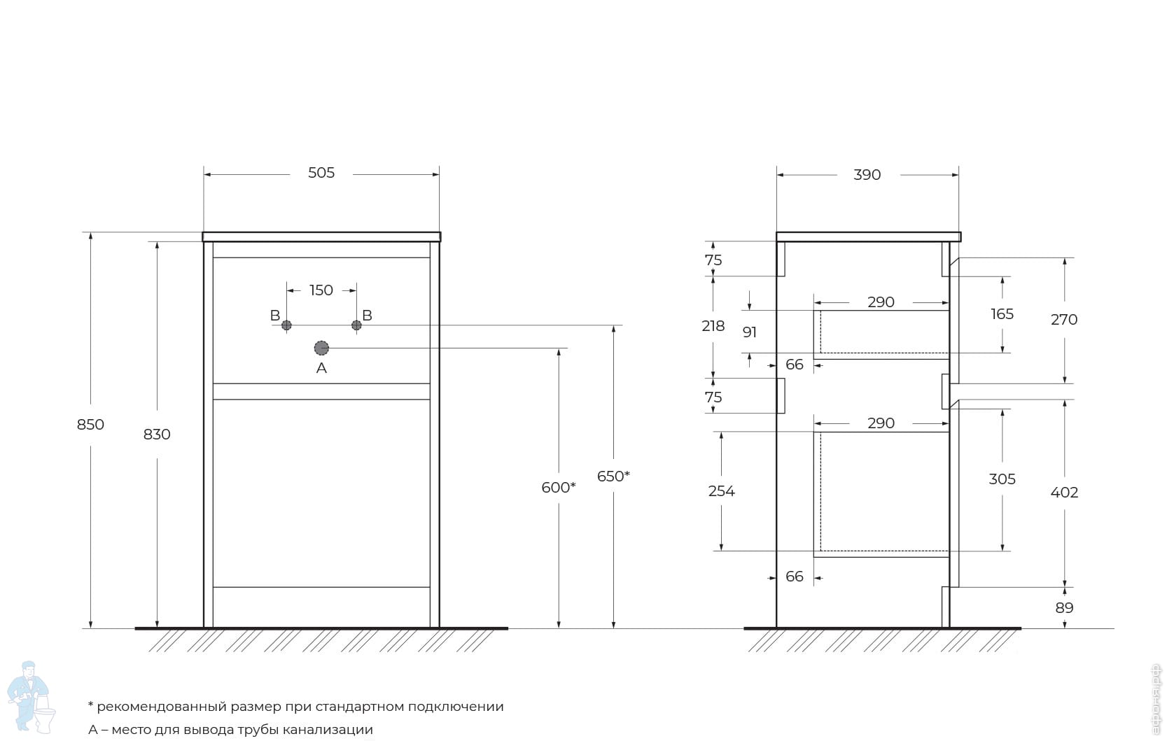 Тумба под раковину BelBagno KRAFT 39 (505х390х840) напольная, Bianco Opaco KRAFT39-500/390-2C-PIA-BOКод: 309750