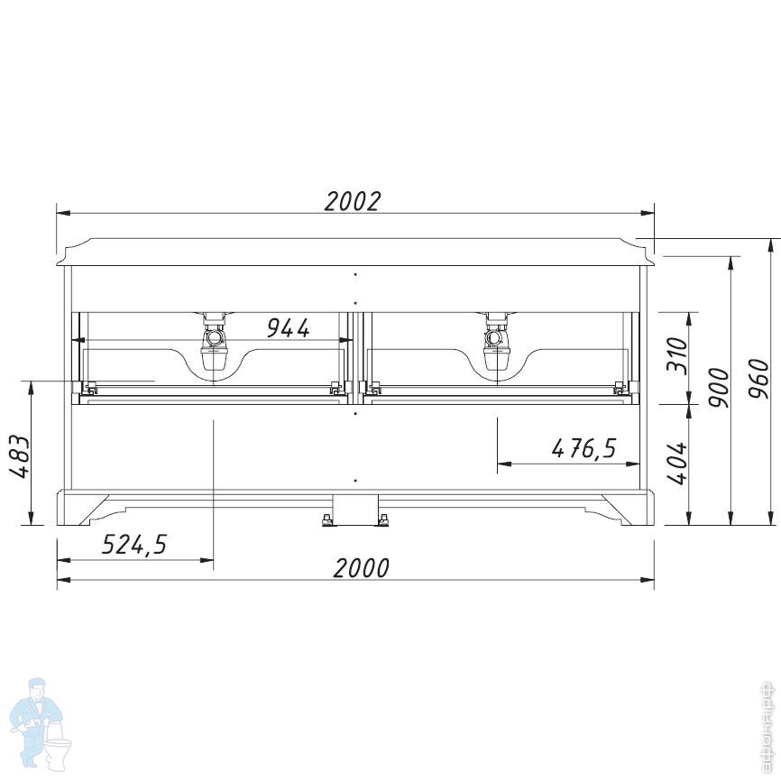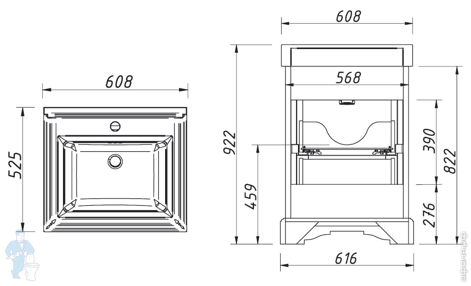 Тумба под раковину Caprigo Гринвич 60 antico light vintage 616х922х526 напольная, 2 ящика 10720-В043Код: 147991