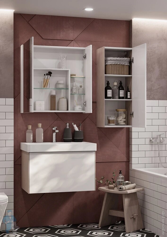 Тумба под раковину AQUATON Асти 70 (427х682х400мм) подвесная, 1 ящик, белый/ясень шимо 1A263001AXD70Код: 227930
