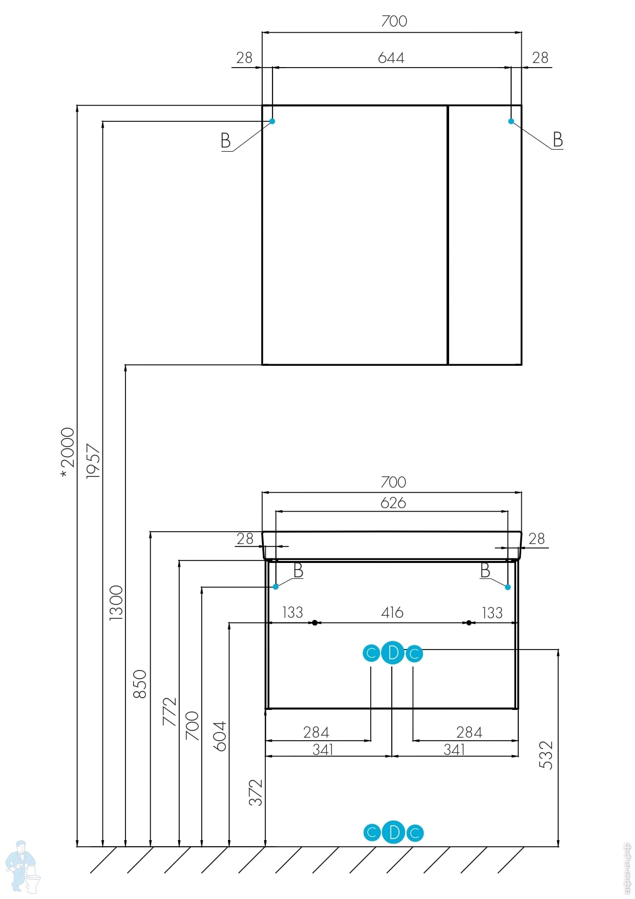 Тумба под раковину AQUATON Асти 55 (532x427x400) подвесная, 1 ящ., белый гл./бел. мат. 1A263101AX2B0Код: 195199