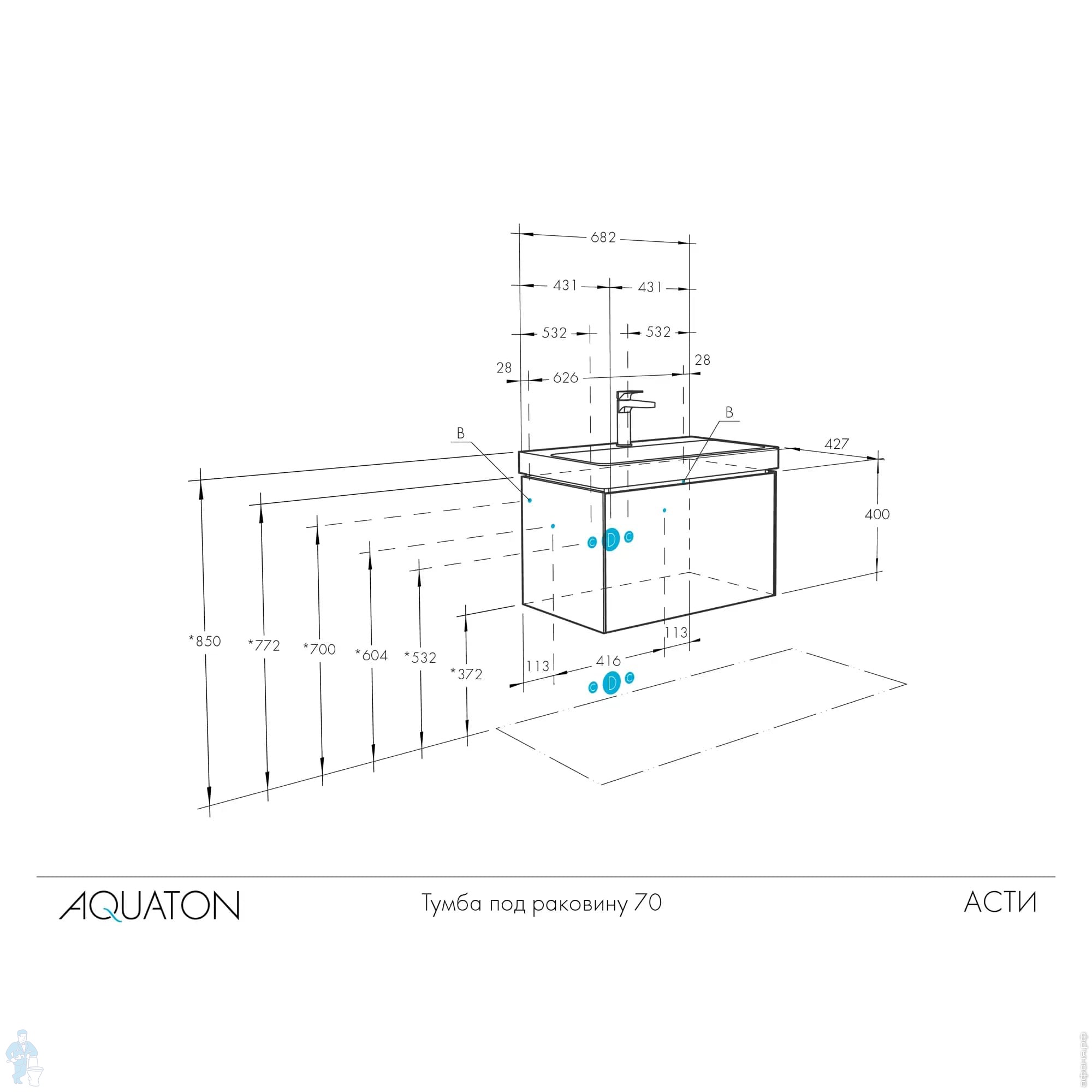 Тумба под раковину AQUATON Асти 70 (682x427x400) подвесная, 1 ящ., белый гл./бел. мат. 1A263001AX2B0Код: 195208