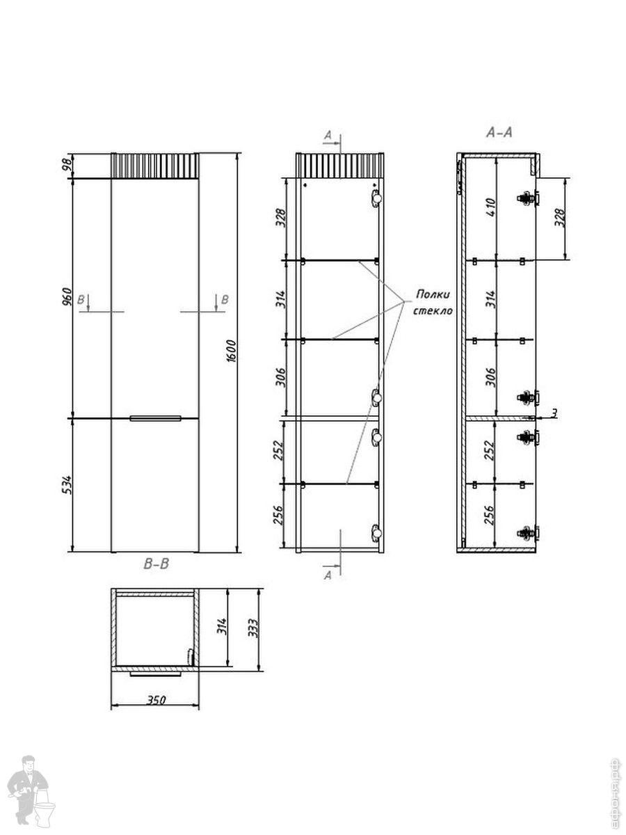 Мебель для ванной комнаты CAPRIGO: Шкаф-пенал MONBAR R
