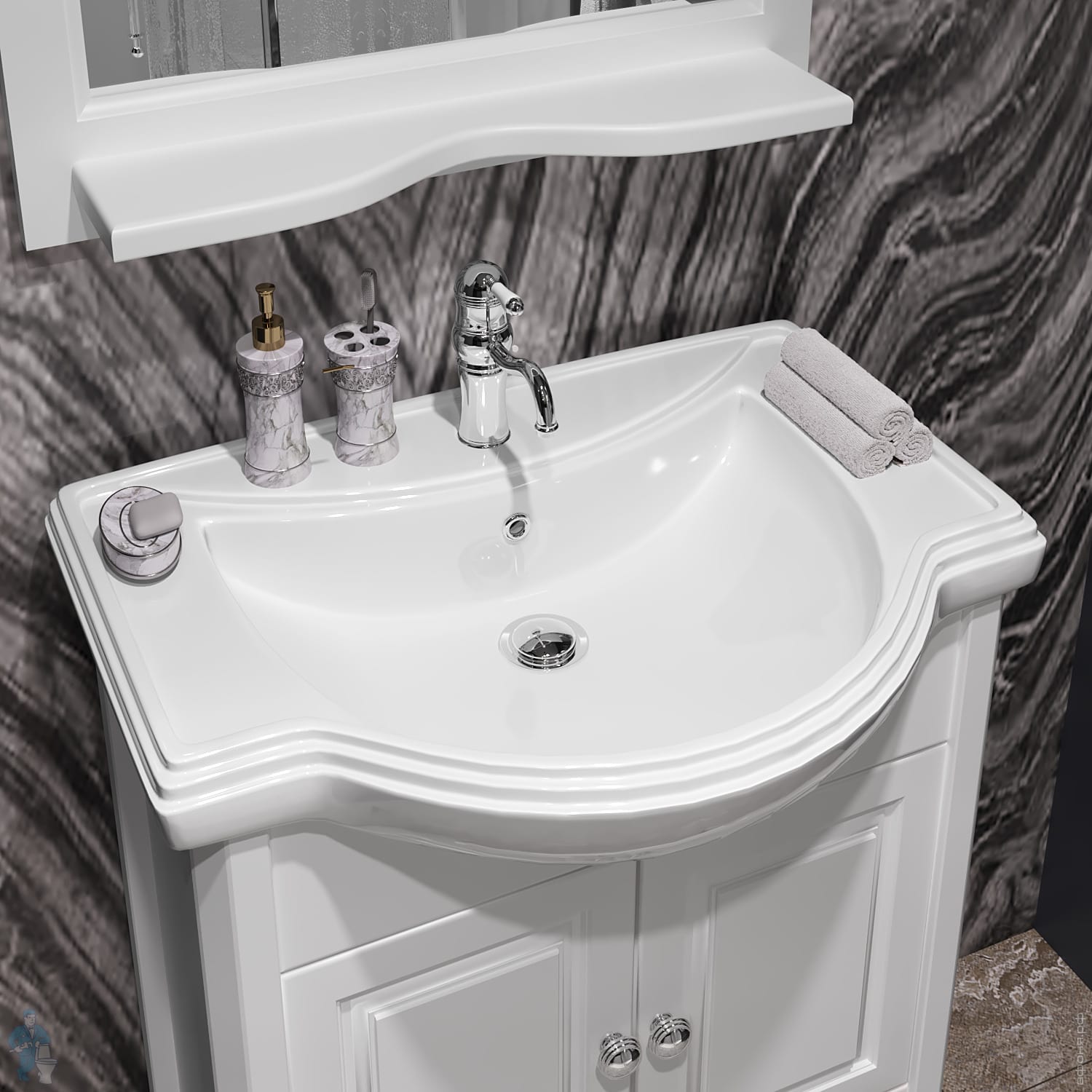 Тумба с раковиной Opadiris Брунелла 80 (810х885х475) напольная, белый мат. 00-00003631+4620008198941Код: 248392