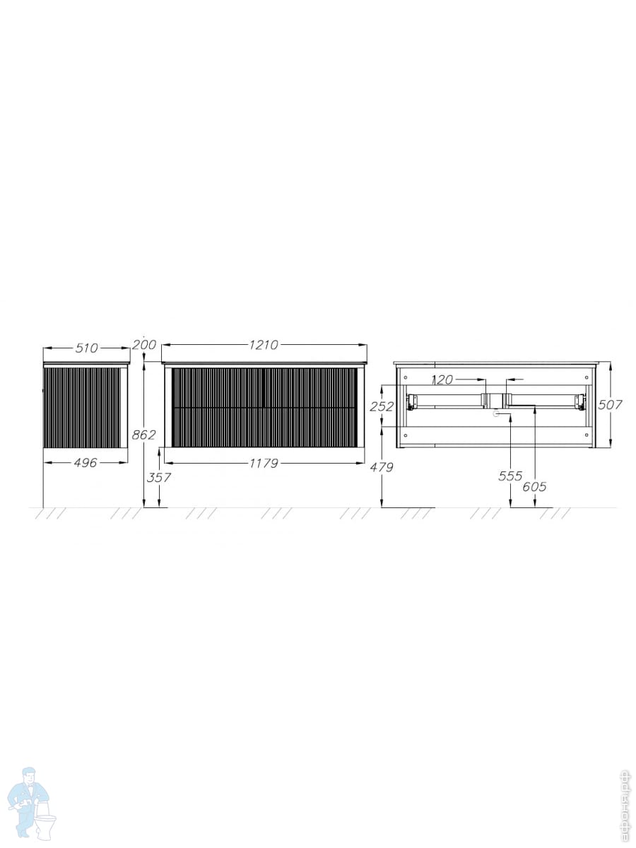 Тумба с раковиной Opadiris Рубинно 120 (1210х510х477) подвесная, серый глянц.00-00006372+050600-u-01Код: 210937