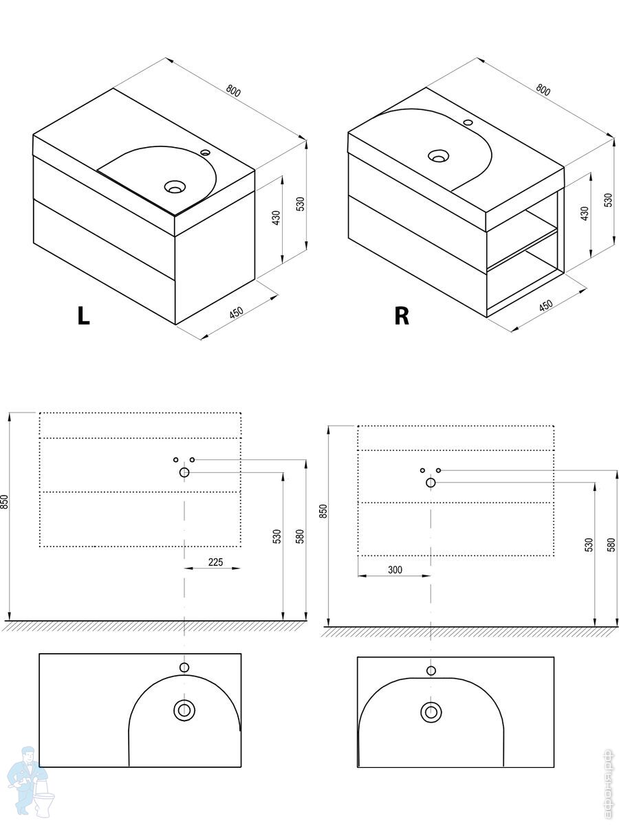 Мебель для ванной комнаты RAVAK: Серия LITE