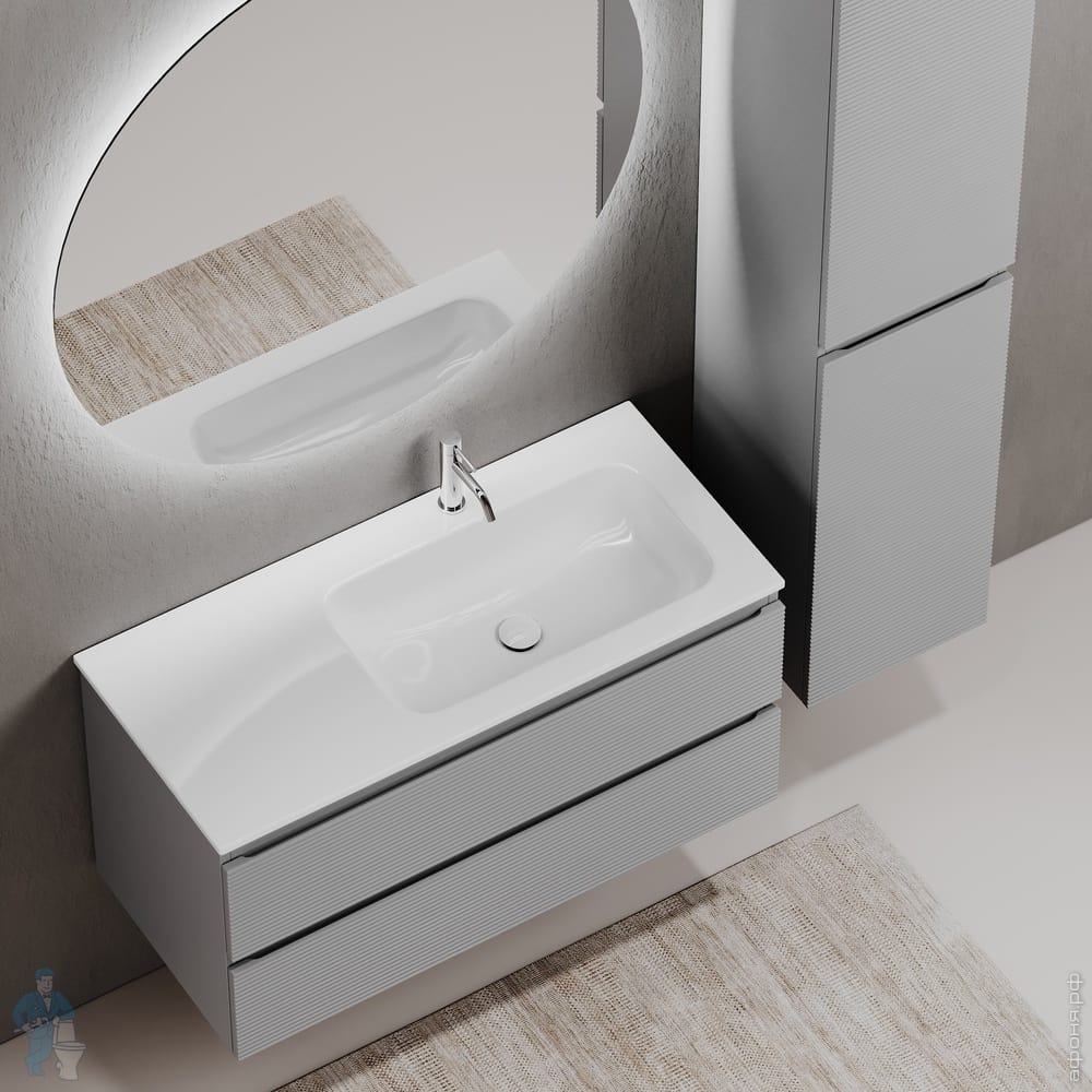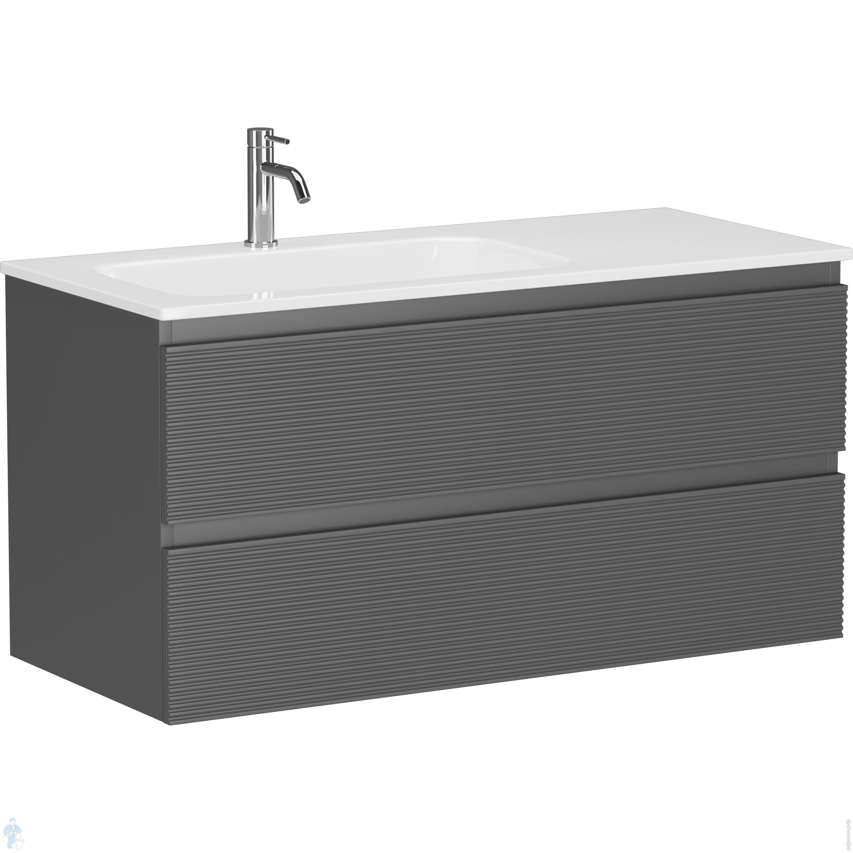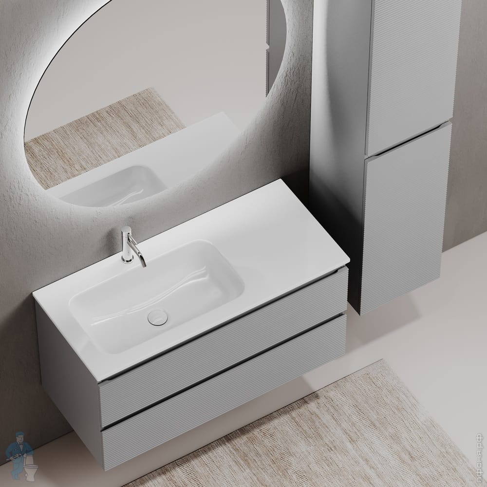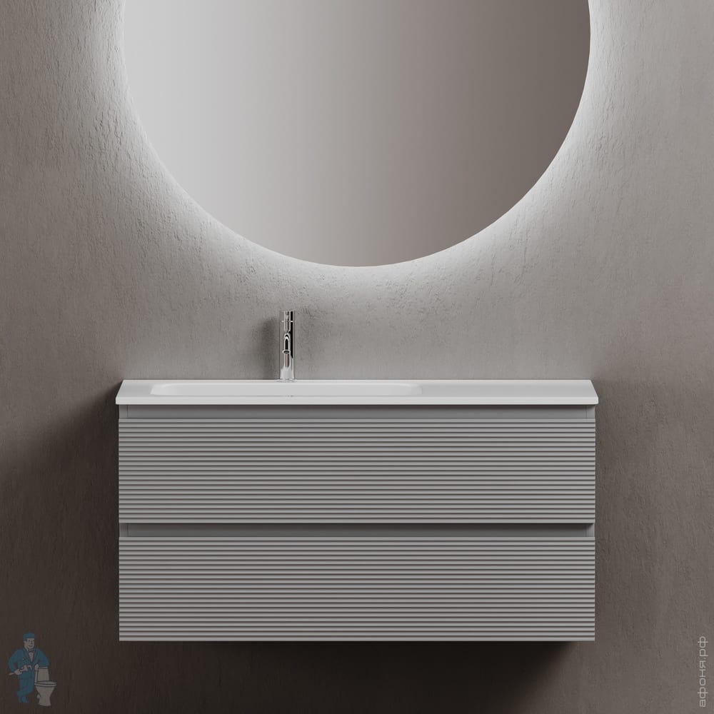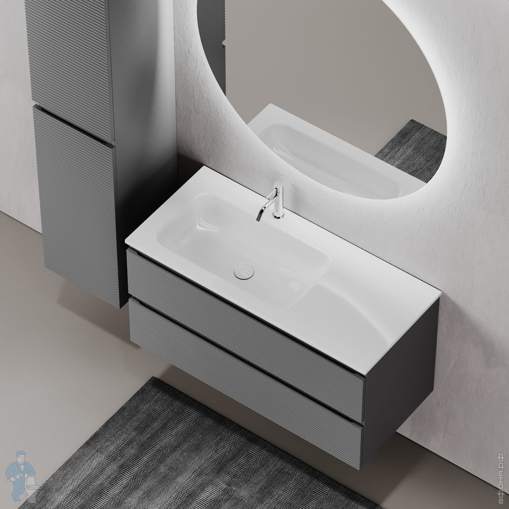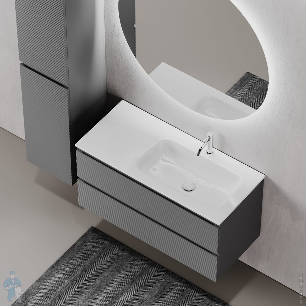 Тумба под раковину SANCOS Folk (995х445х500) подвесная,2 ящика,раковина справа,Ergraut soft FL100RESКод: 323482