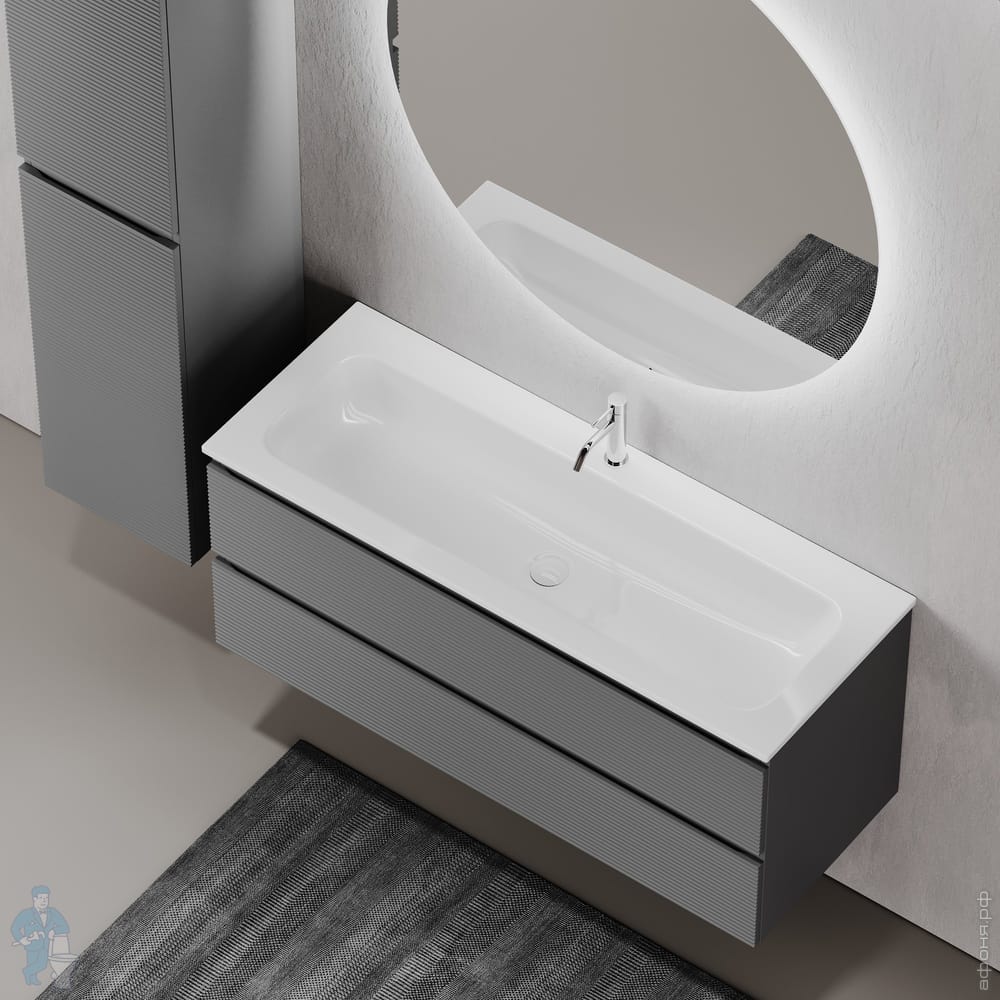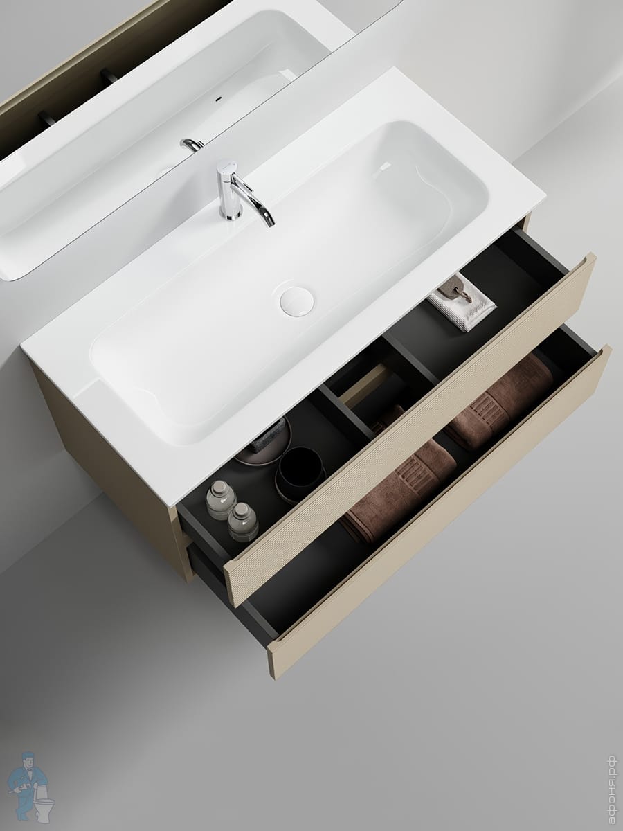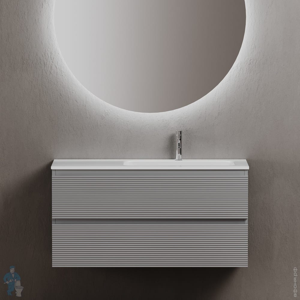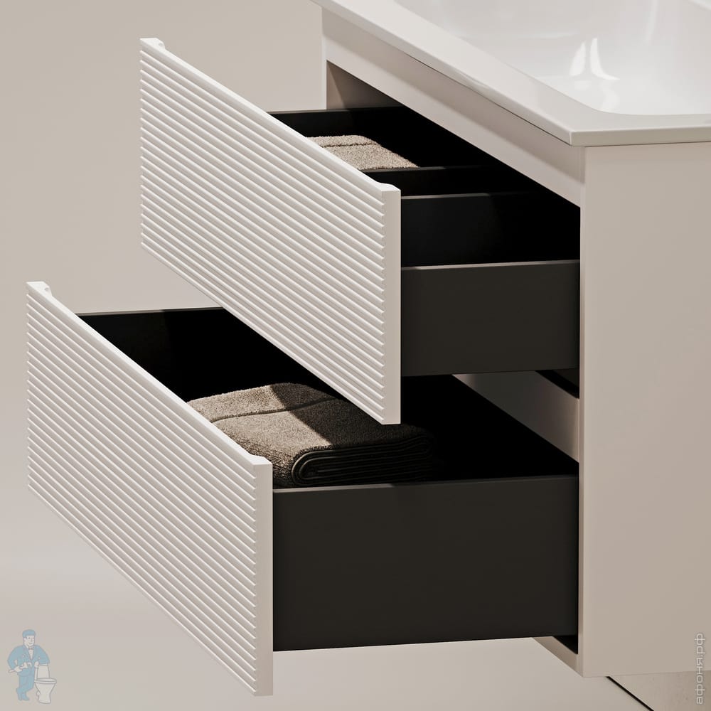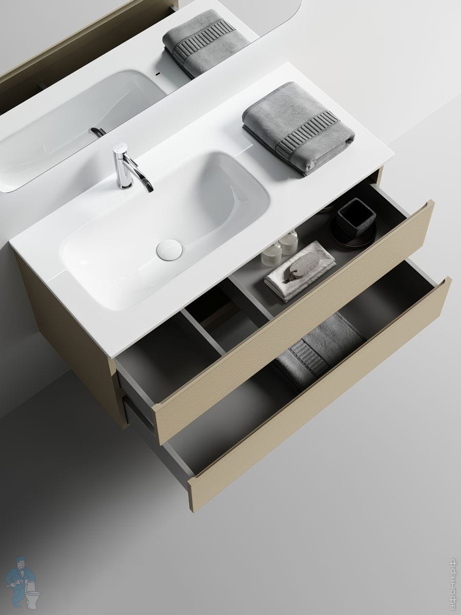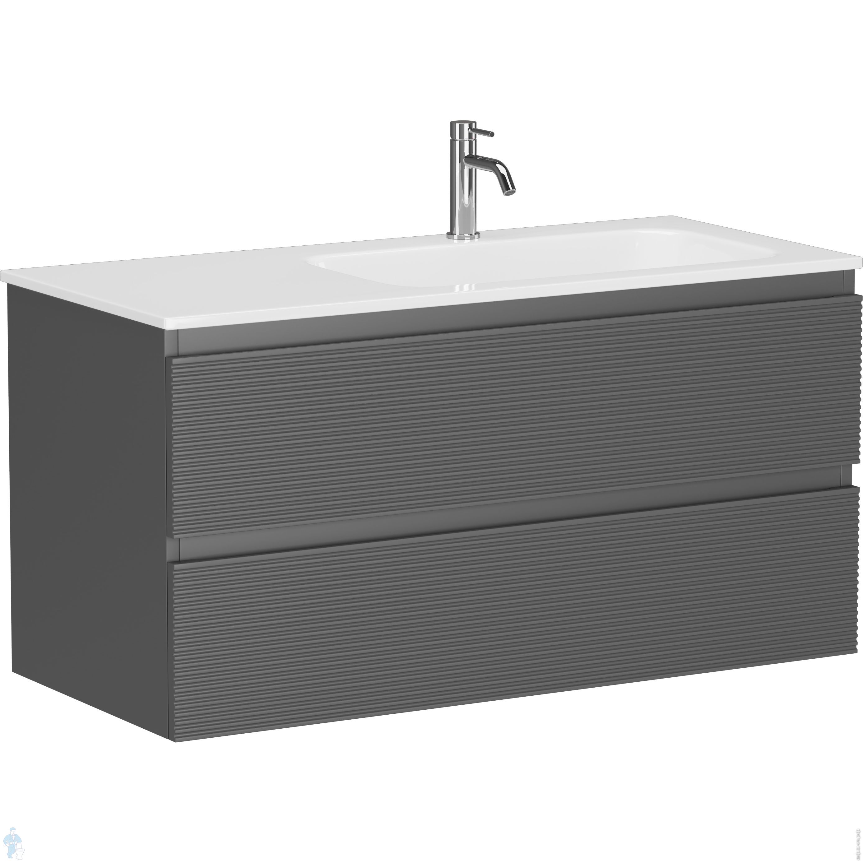 Тумба под раковину SANCOS Folk (995х445х500) подвесная,2 ящика,раковина справа,Ergraut soft FL100RESКод: 323482
