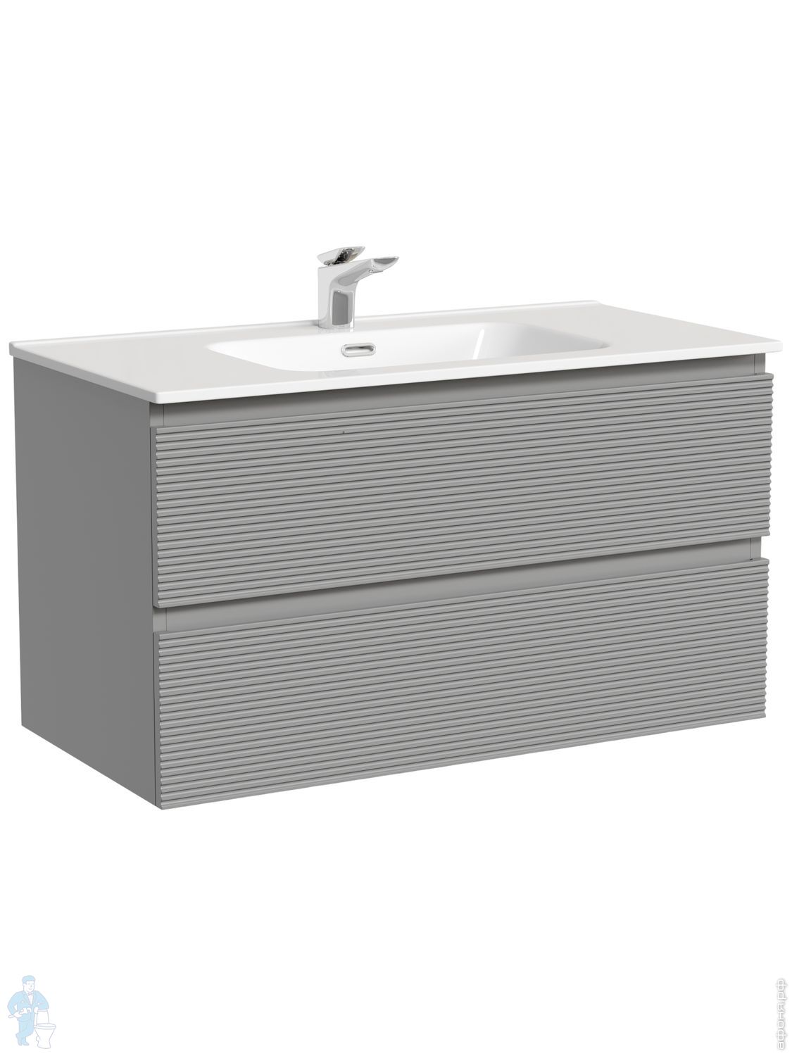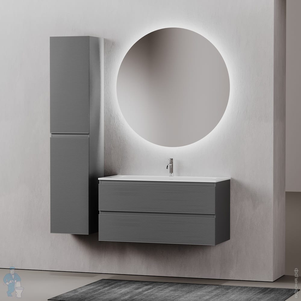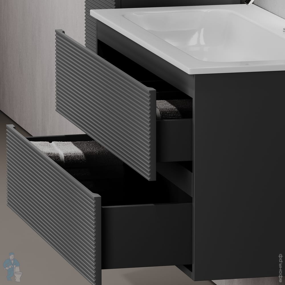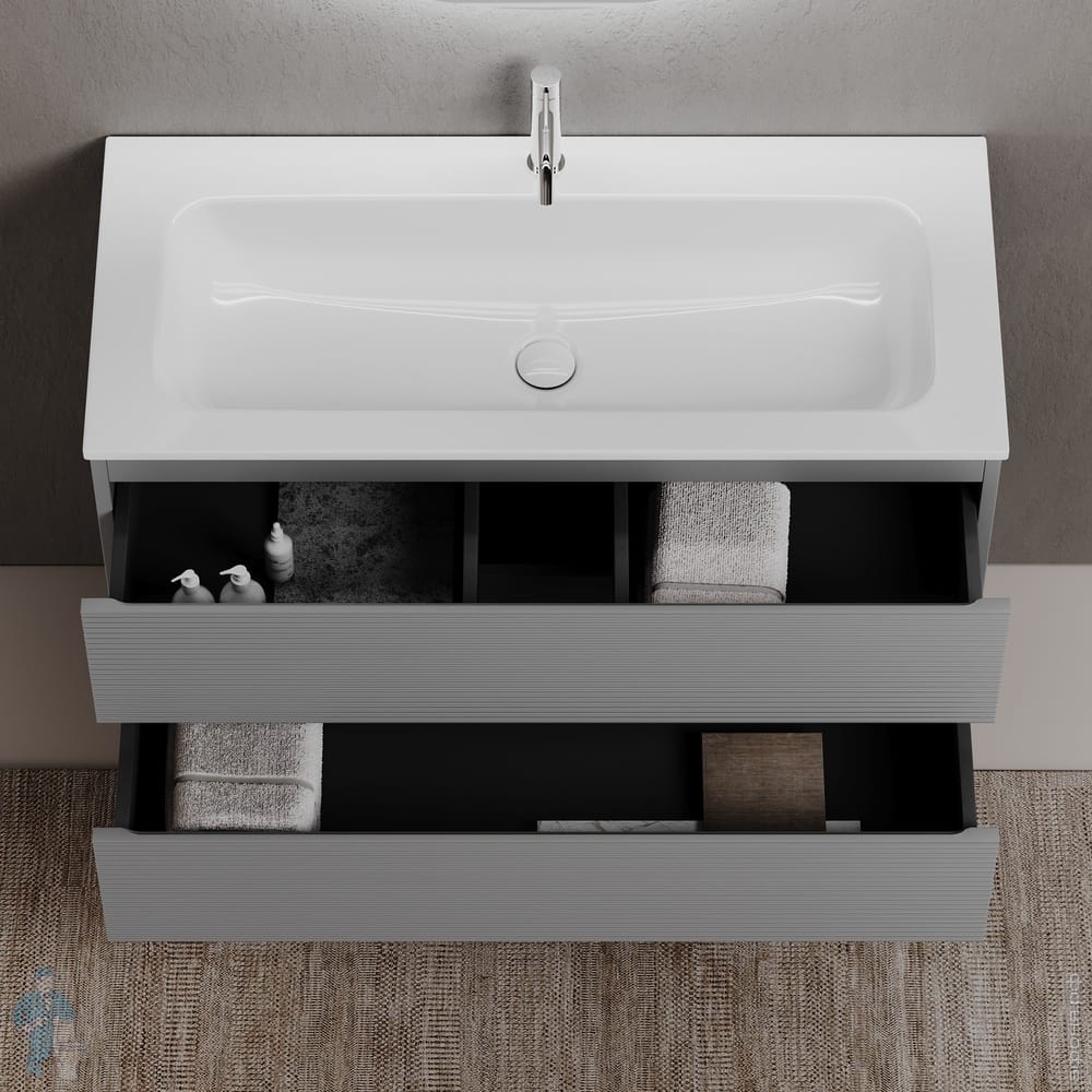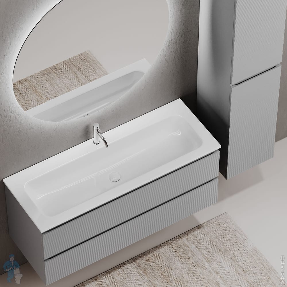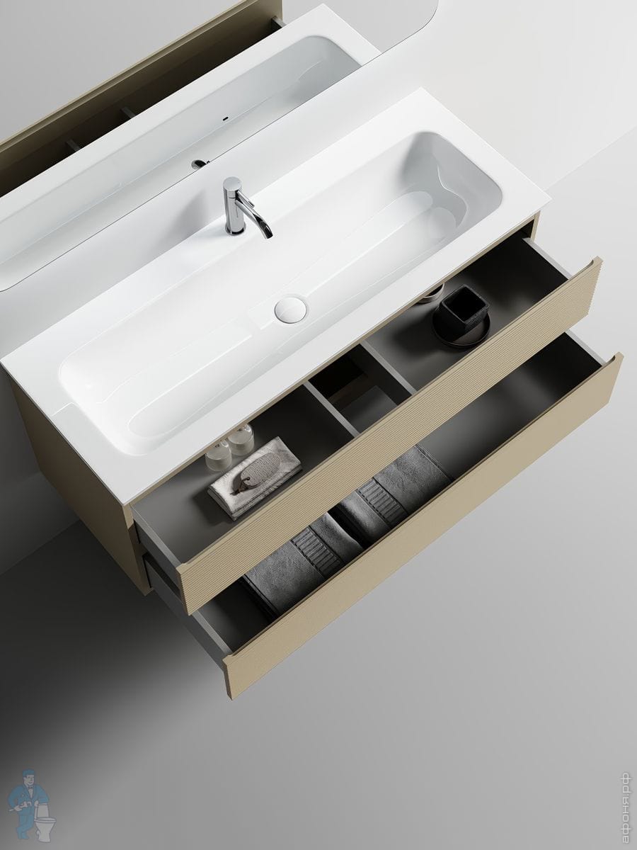 Тумба под раковину SANCOS Folk (995х445х500) подвесная,2 ящика,раковина справа,Ergraut soft FL100RESКод: 323482