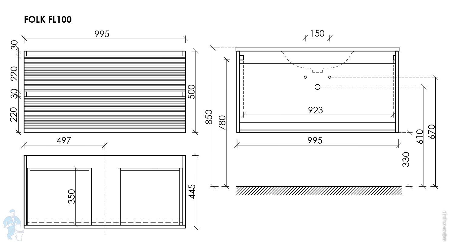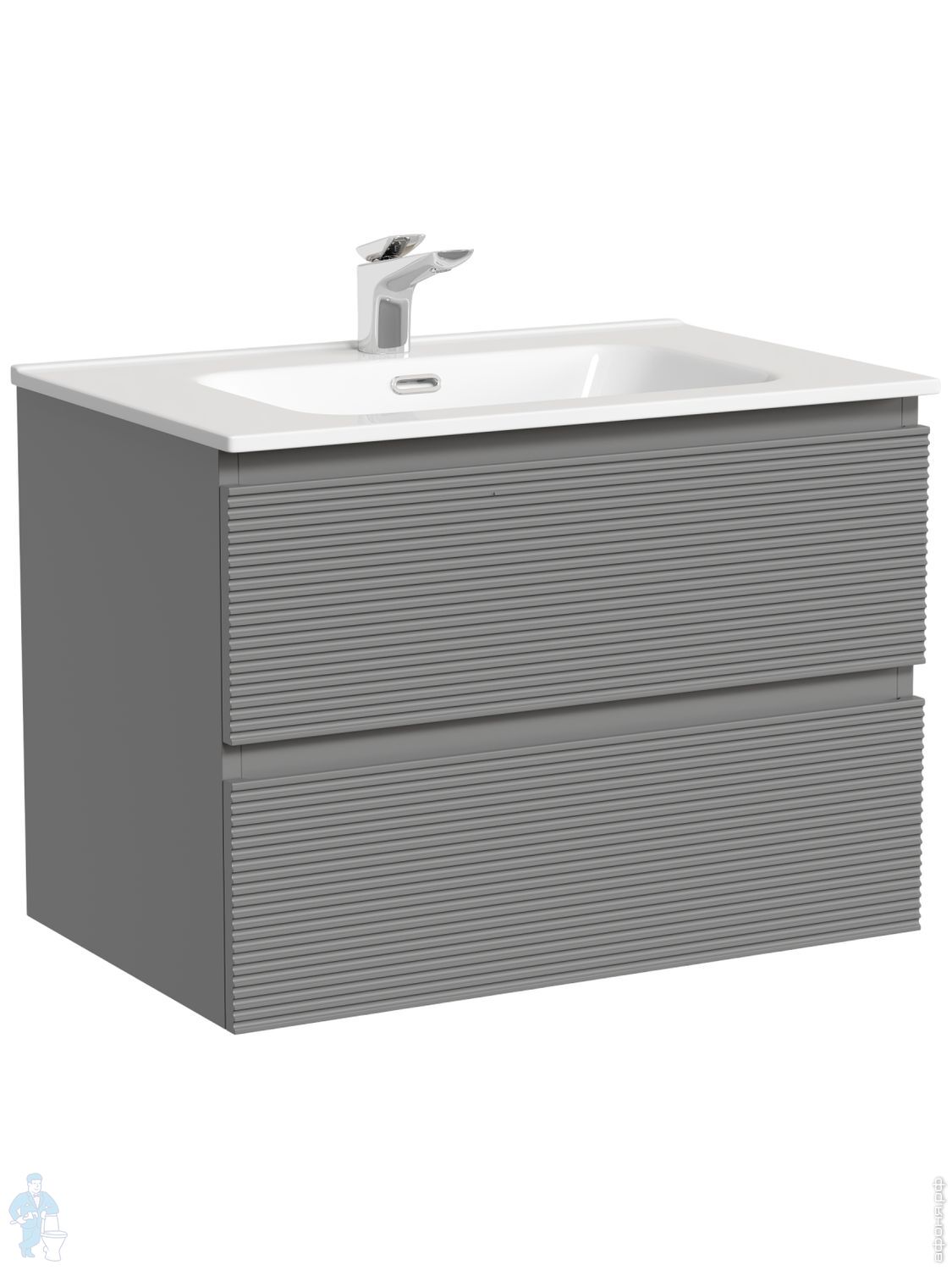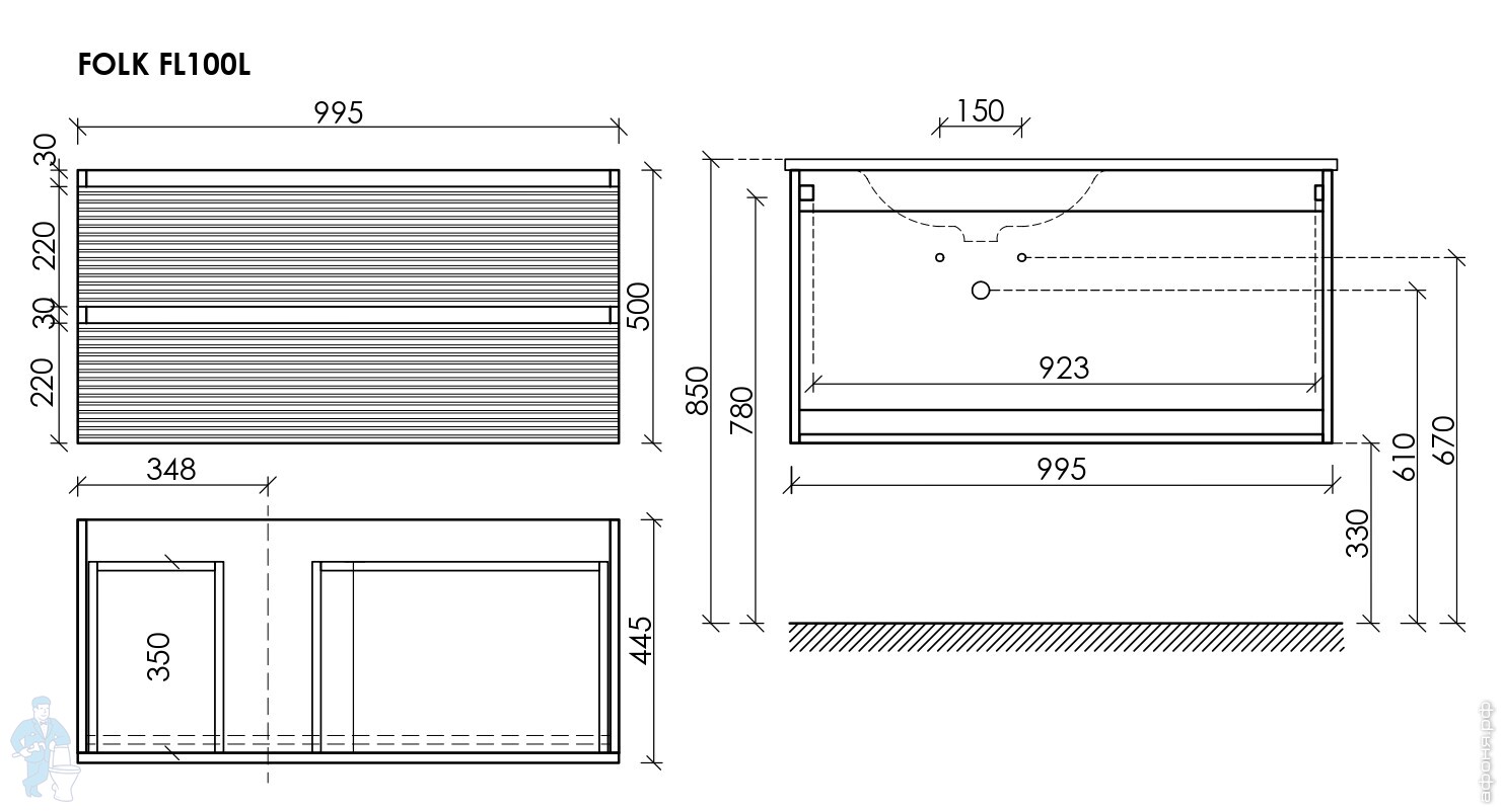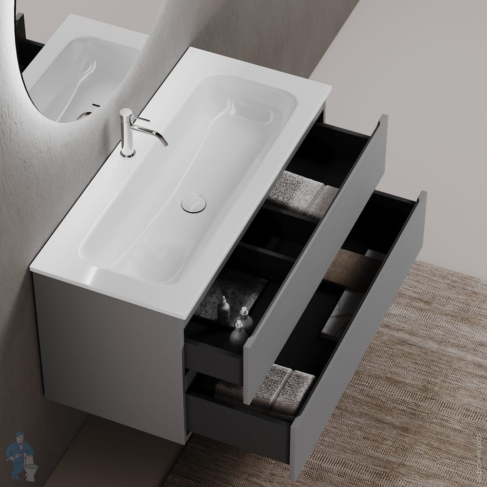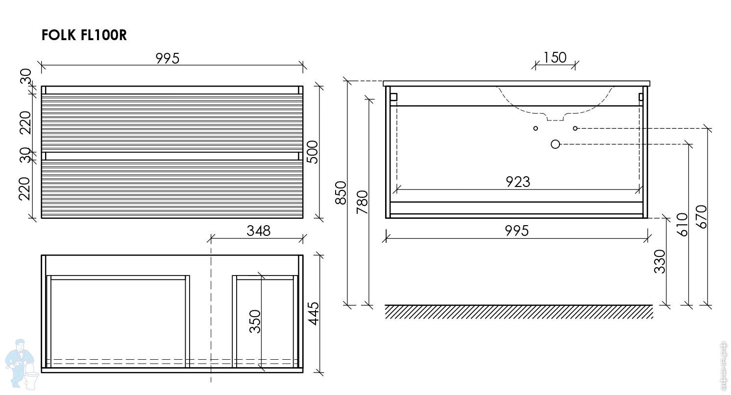 Тумба под раковину SANCOS Folk (995х445х500) подвесная,2 ящика,раковина справа,Ergraut soft FL100RESКод: 323482
