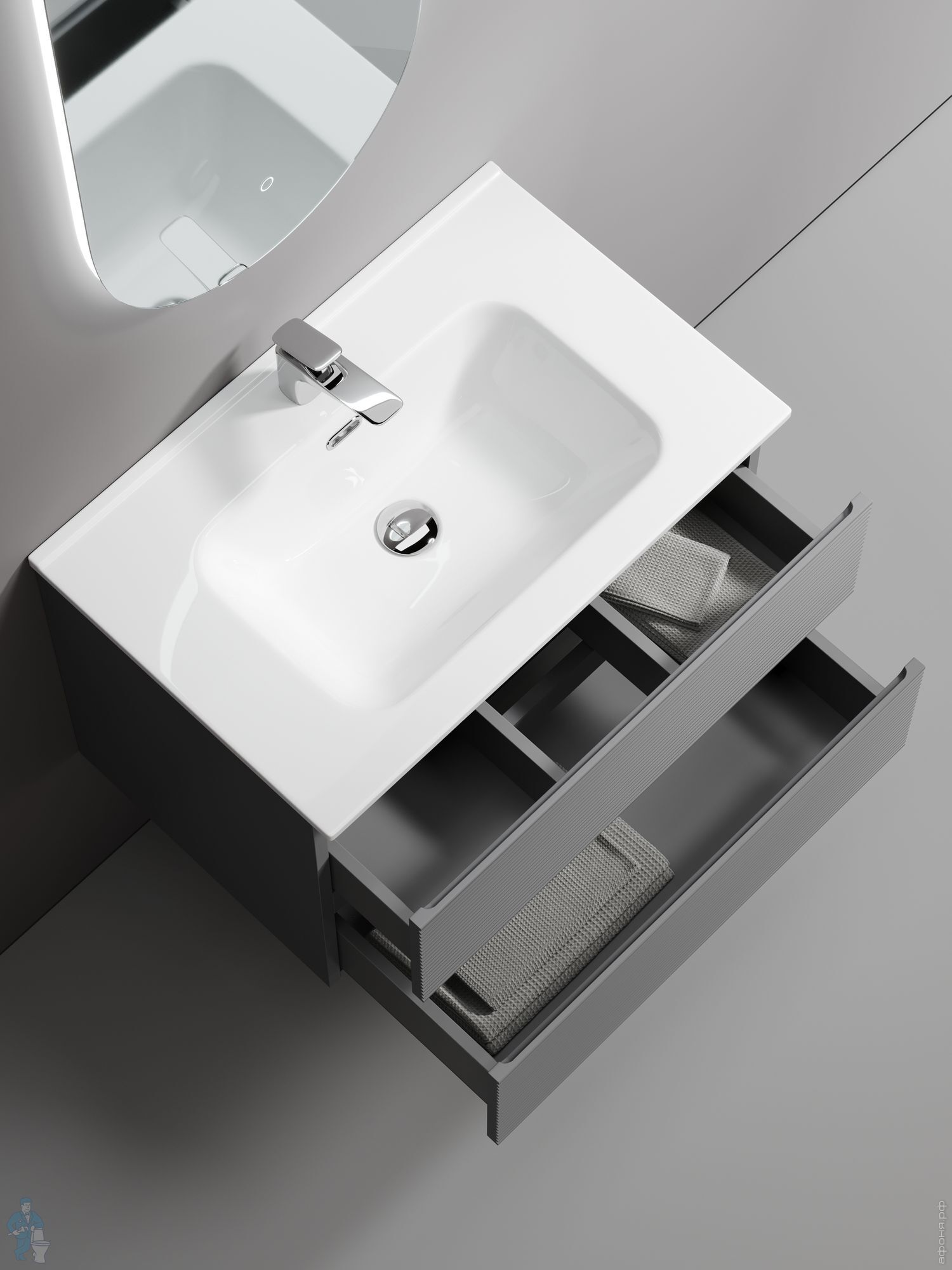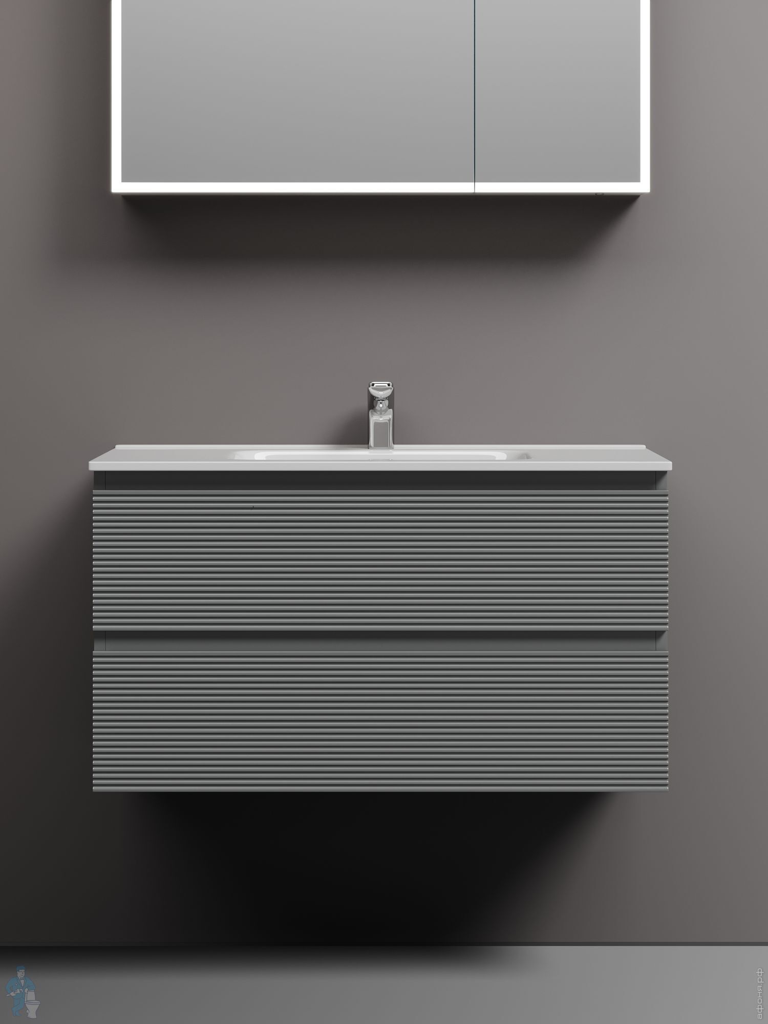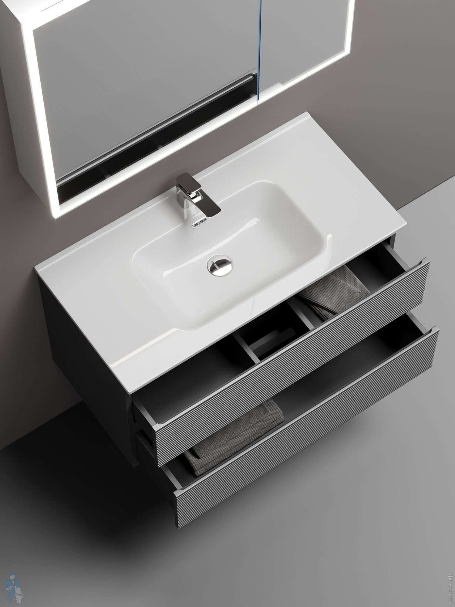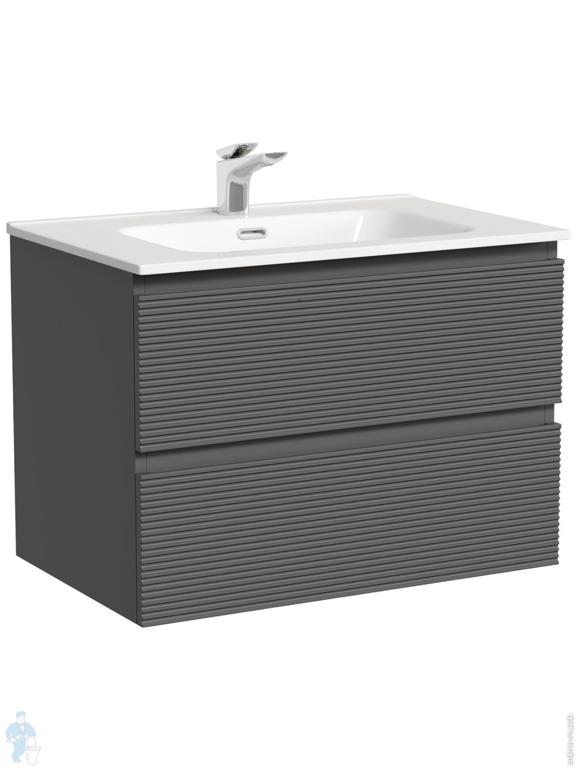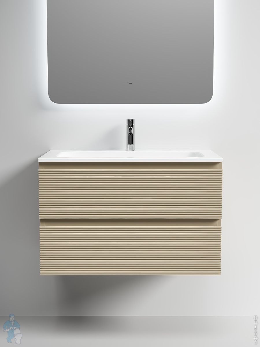 Тумба под раковину SANCOS Folk (995х445х500) подвесная,2 ящика,раковина справа,Ergraut soft FL100RESКод: 323482