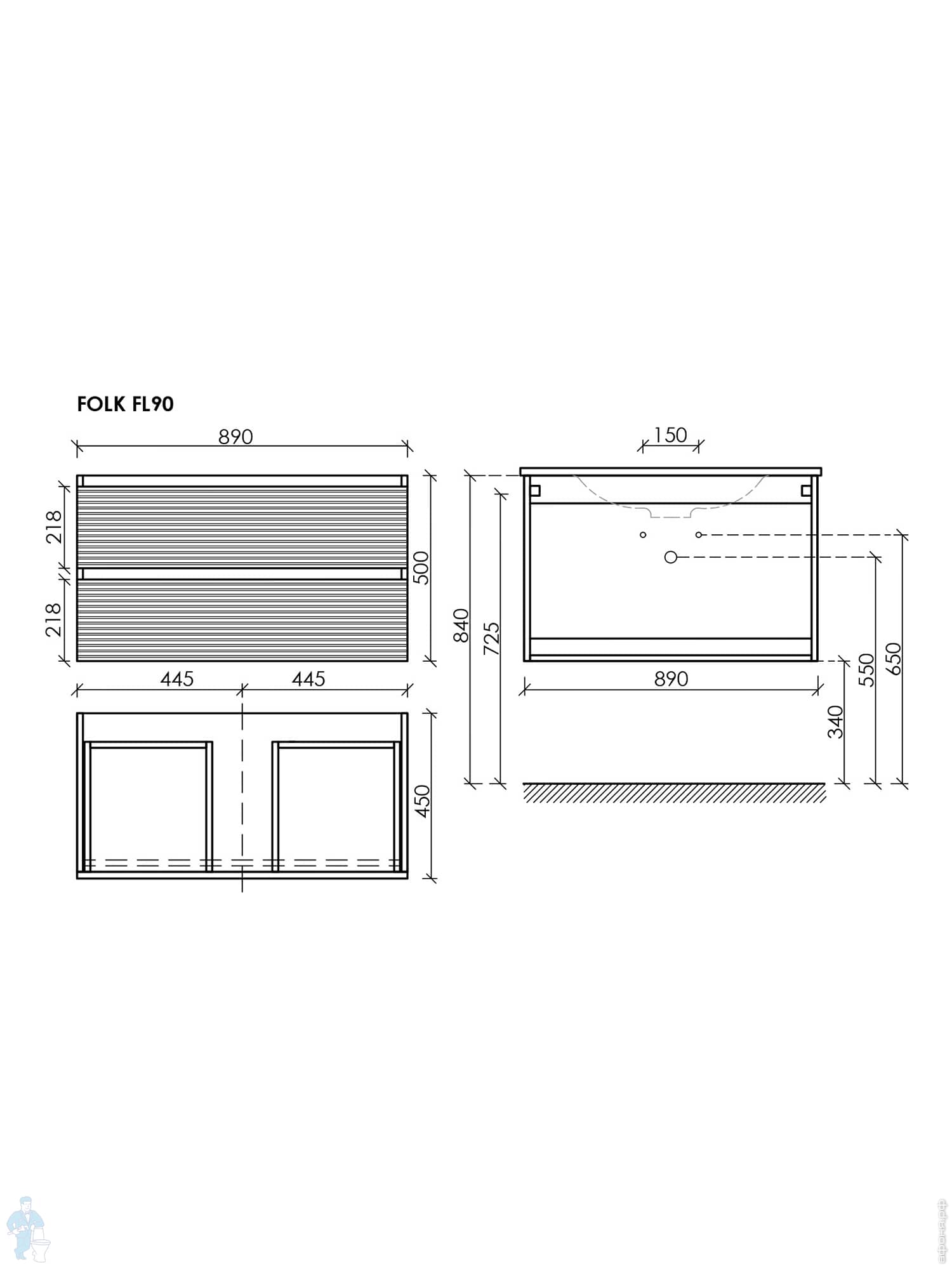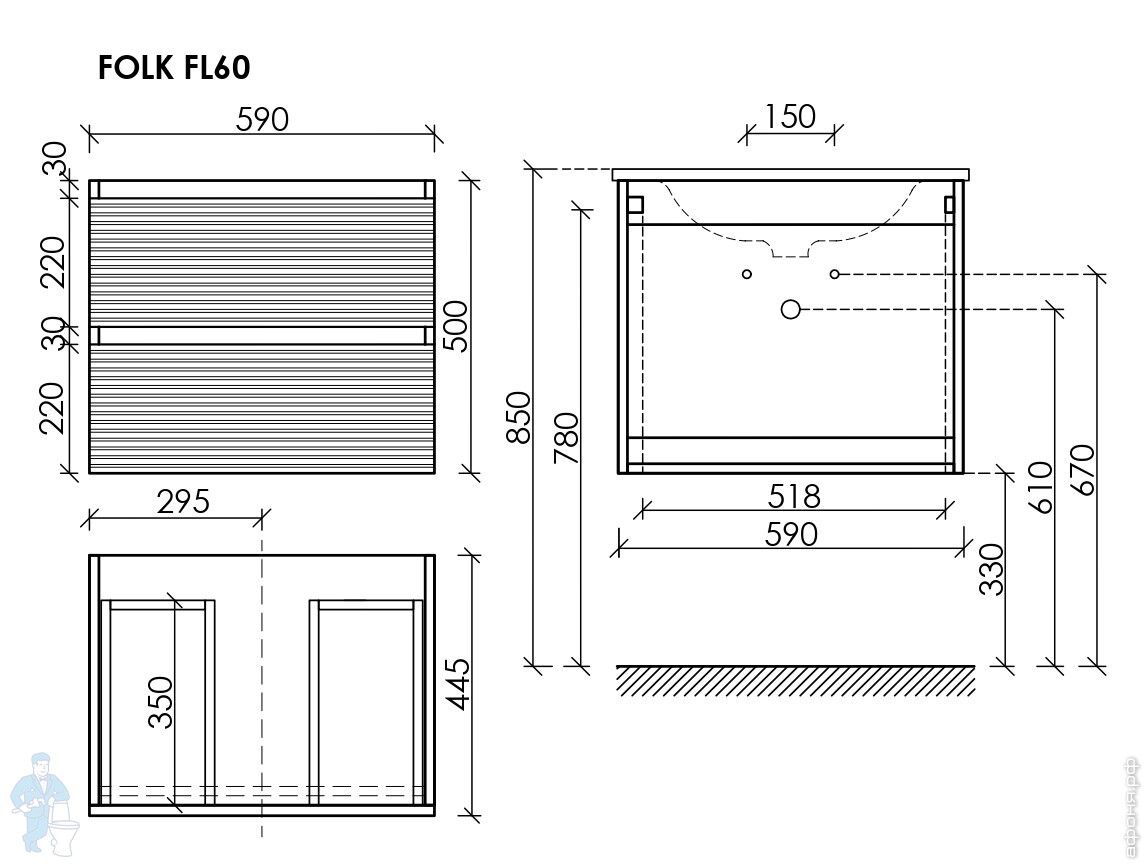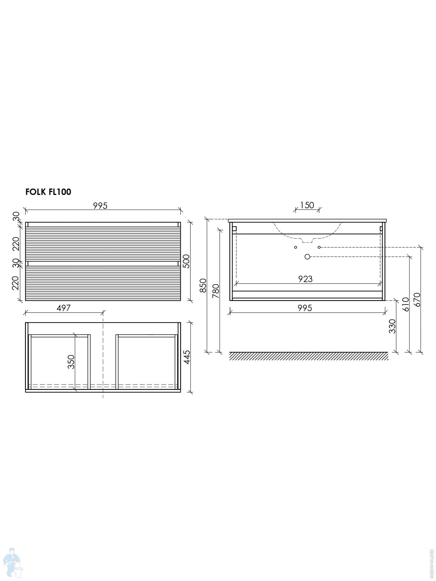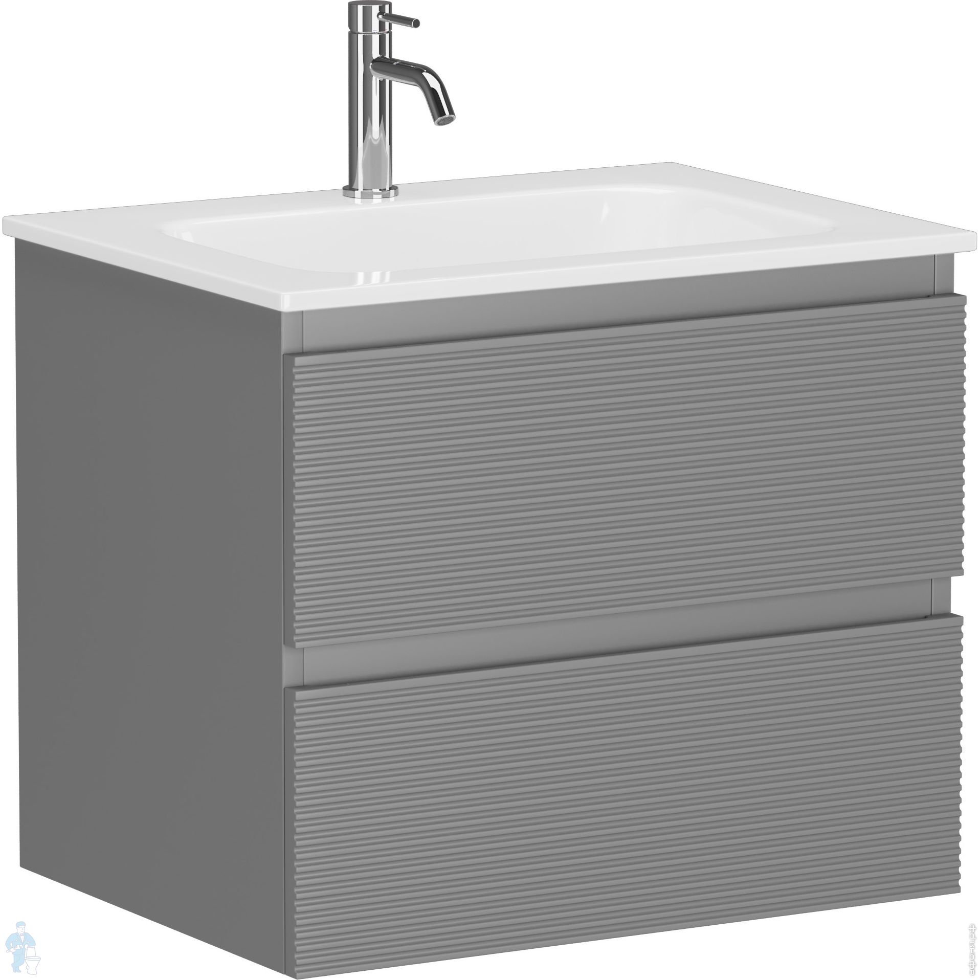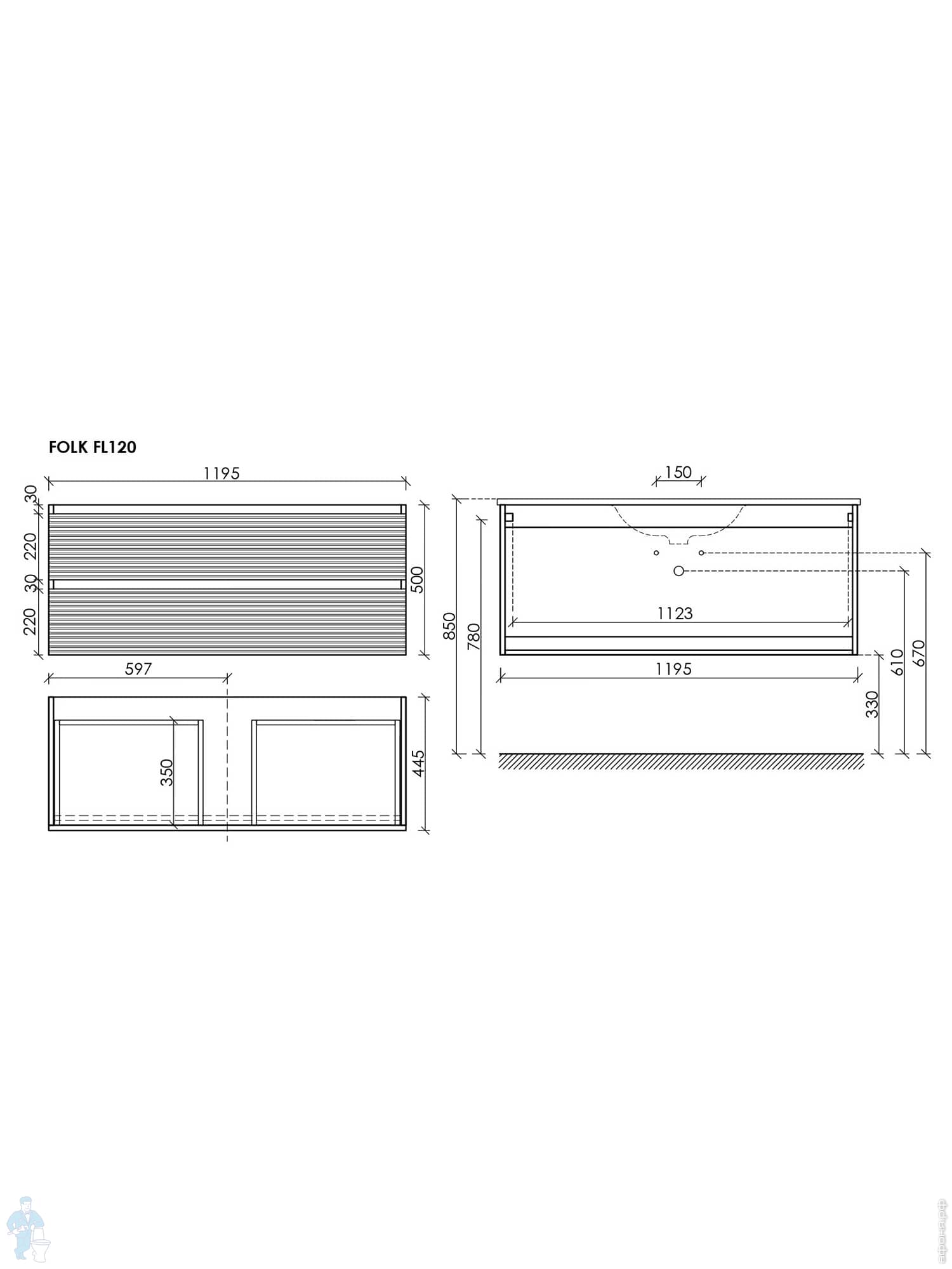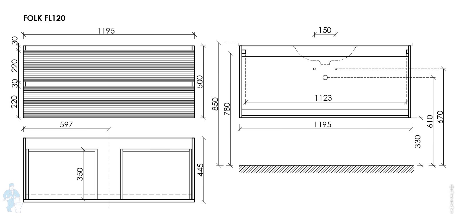 Тумба под раковину SANCOS Folk (995х445х500) подвесная,2 ящика,раковина справа,Ergraut soft FL100RESКод: 323482