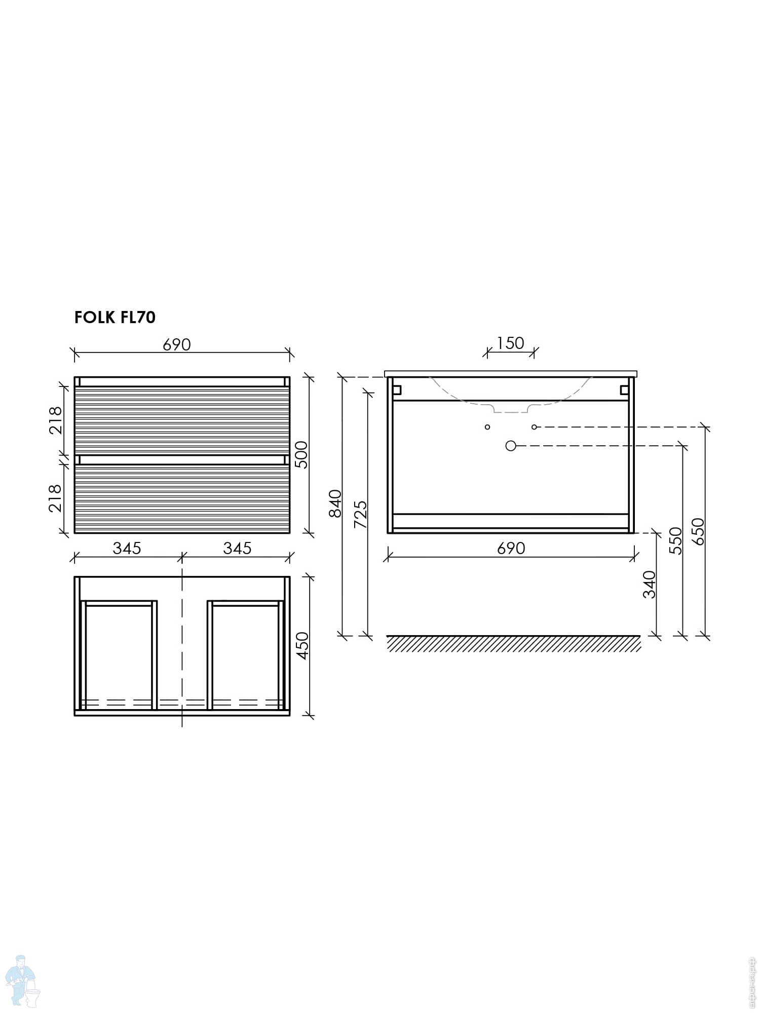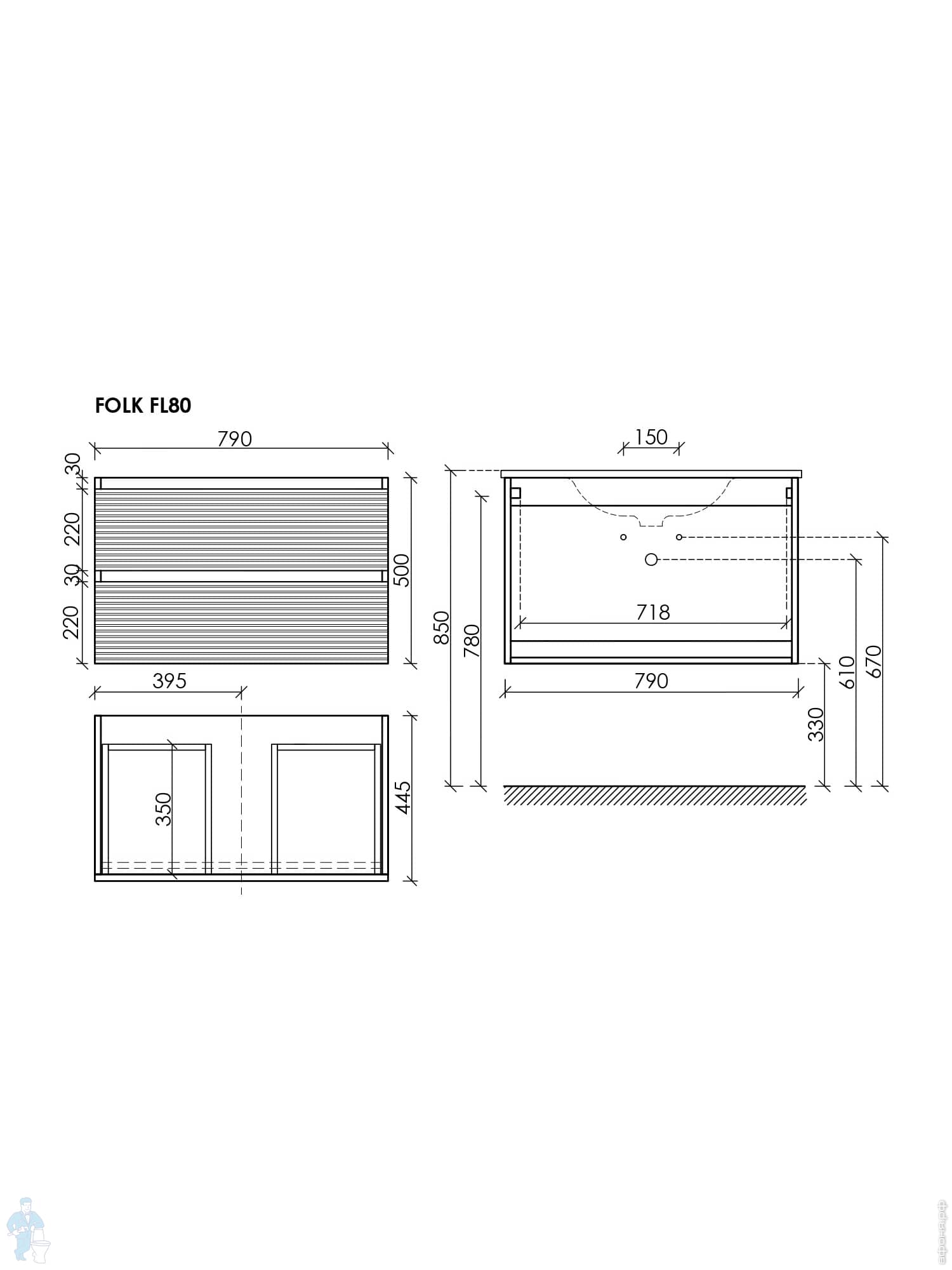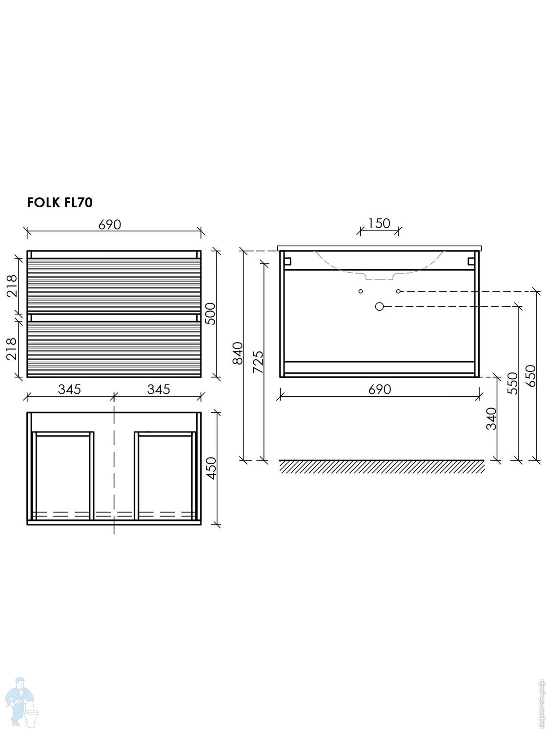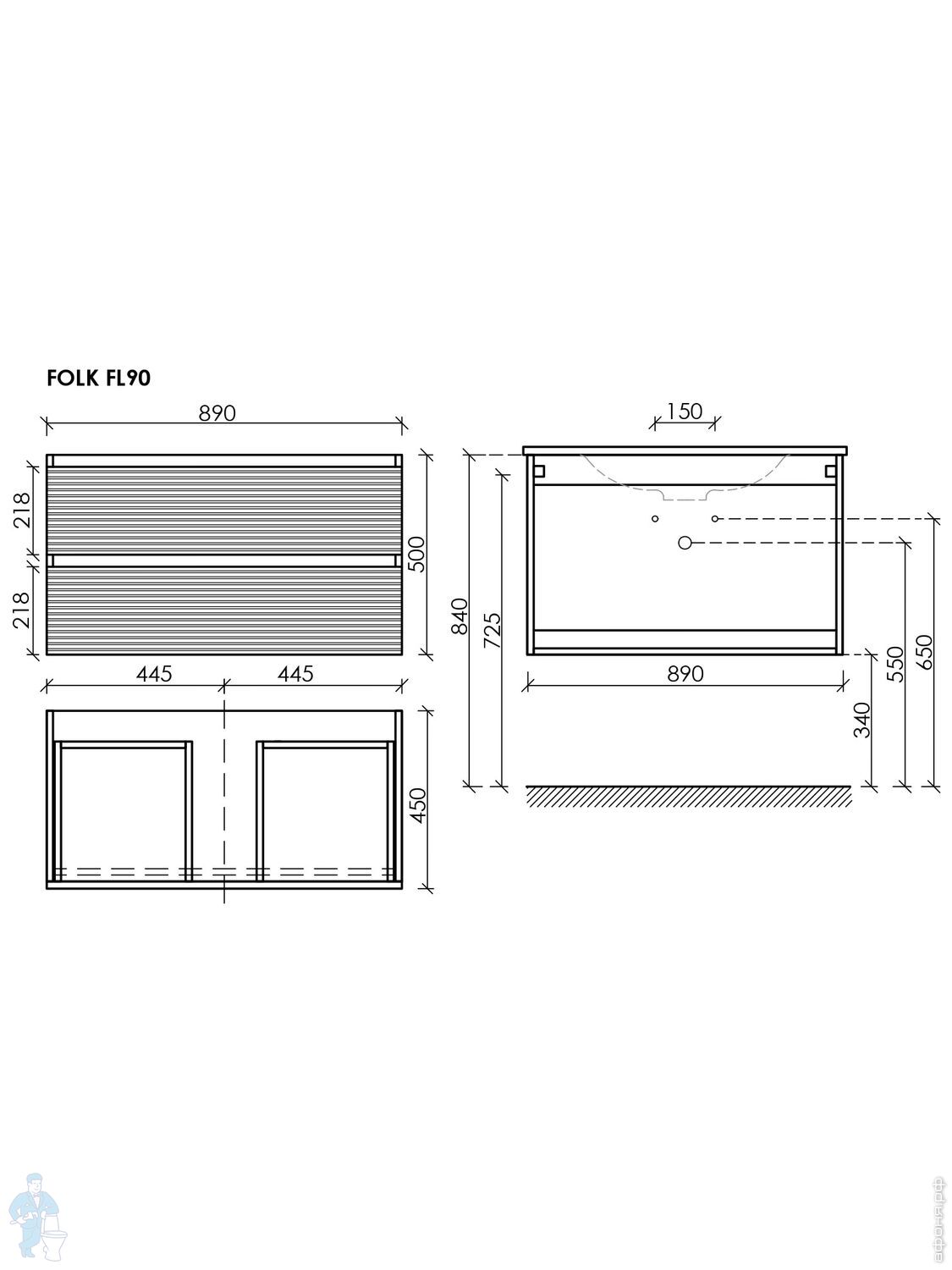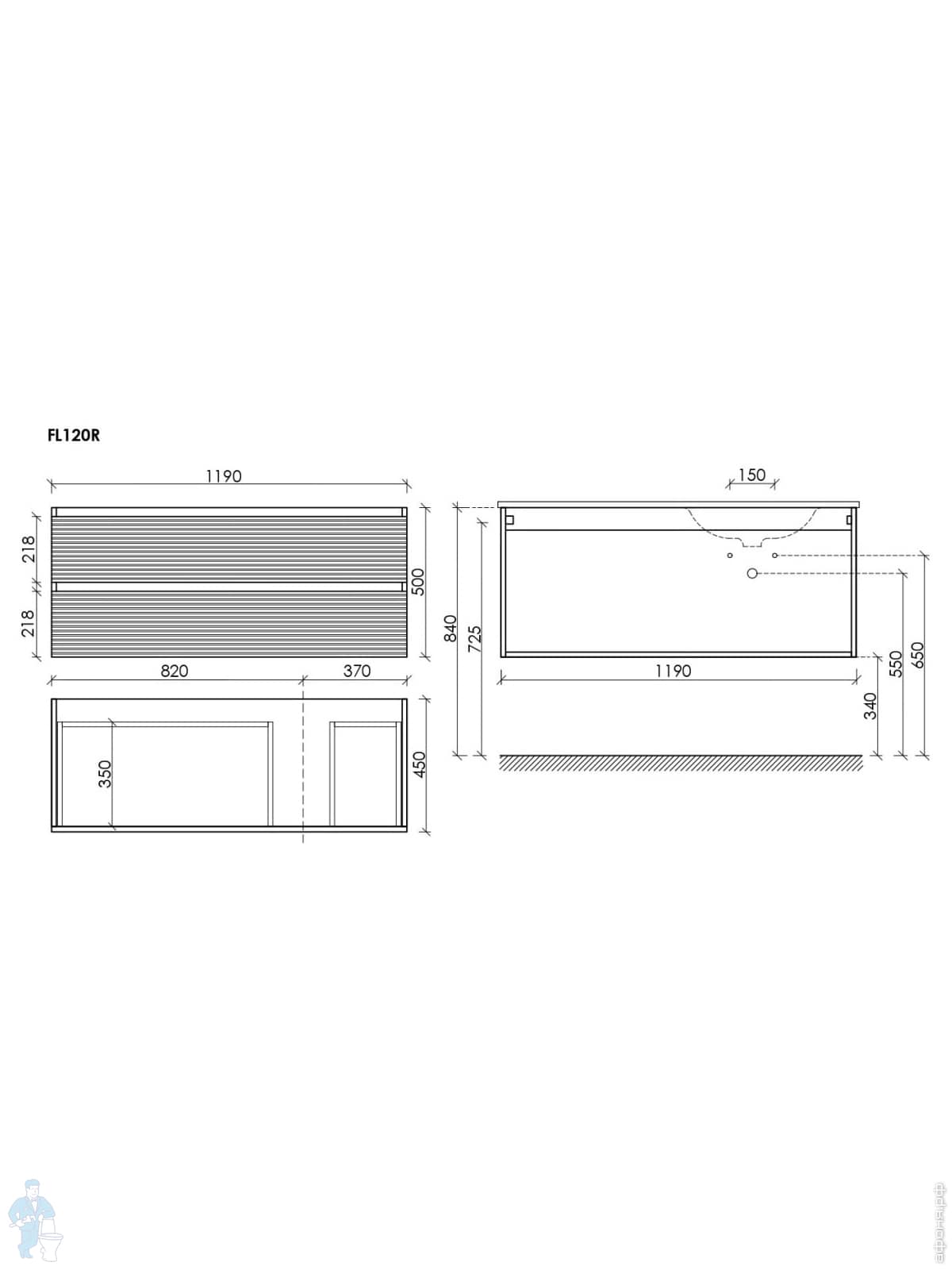 Тумба под раковину SANCOS Folk (995х445х500) подвесная,2 ящика,раковина справа,Ergraut soft FL100RESКод: 323482