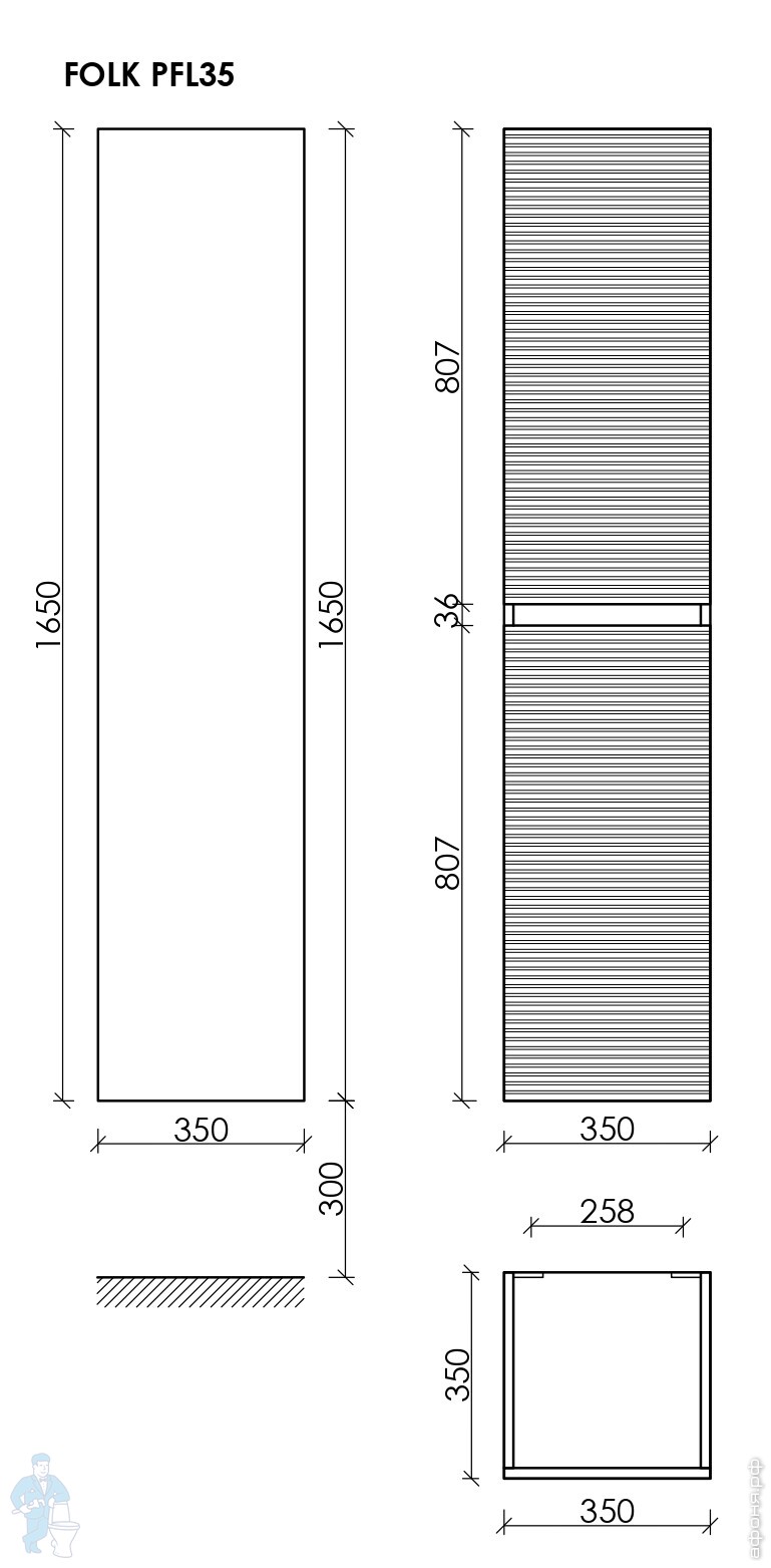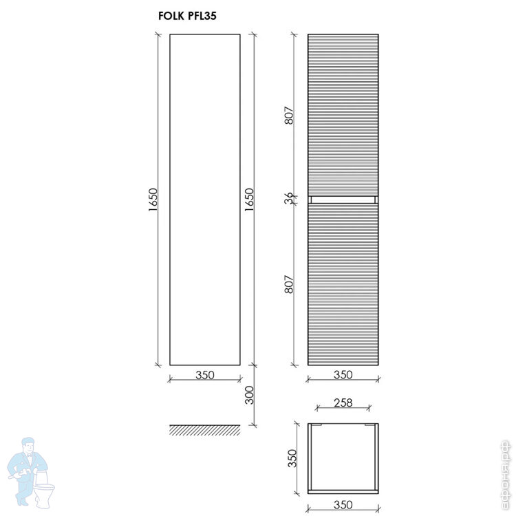 Шкаф-пенал SANCOS Folk (350х350х1650) подвесной,2 двер.,универсальная установка,Ergraut soft PFL35ESКод: 323484
