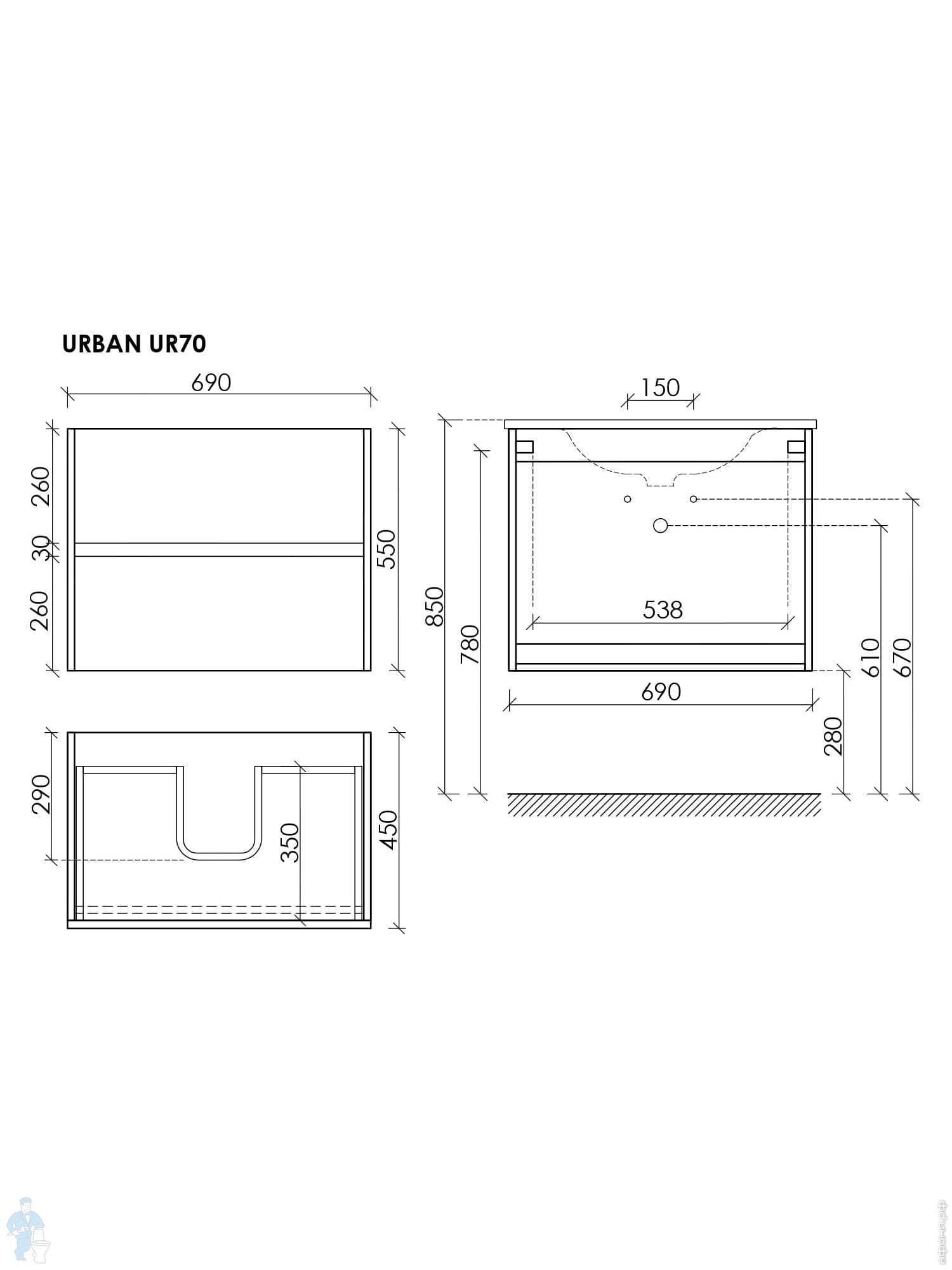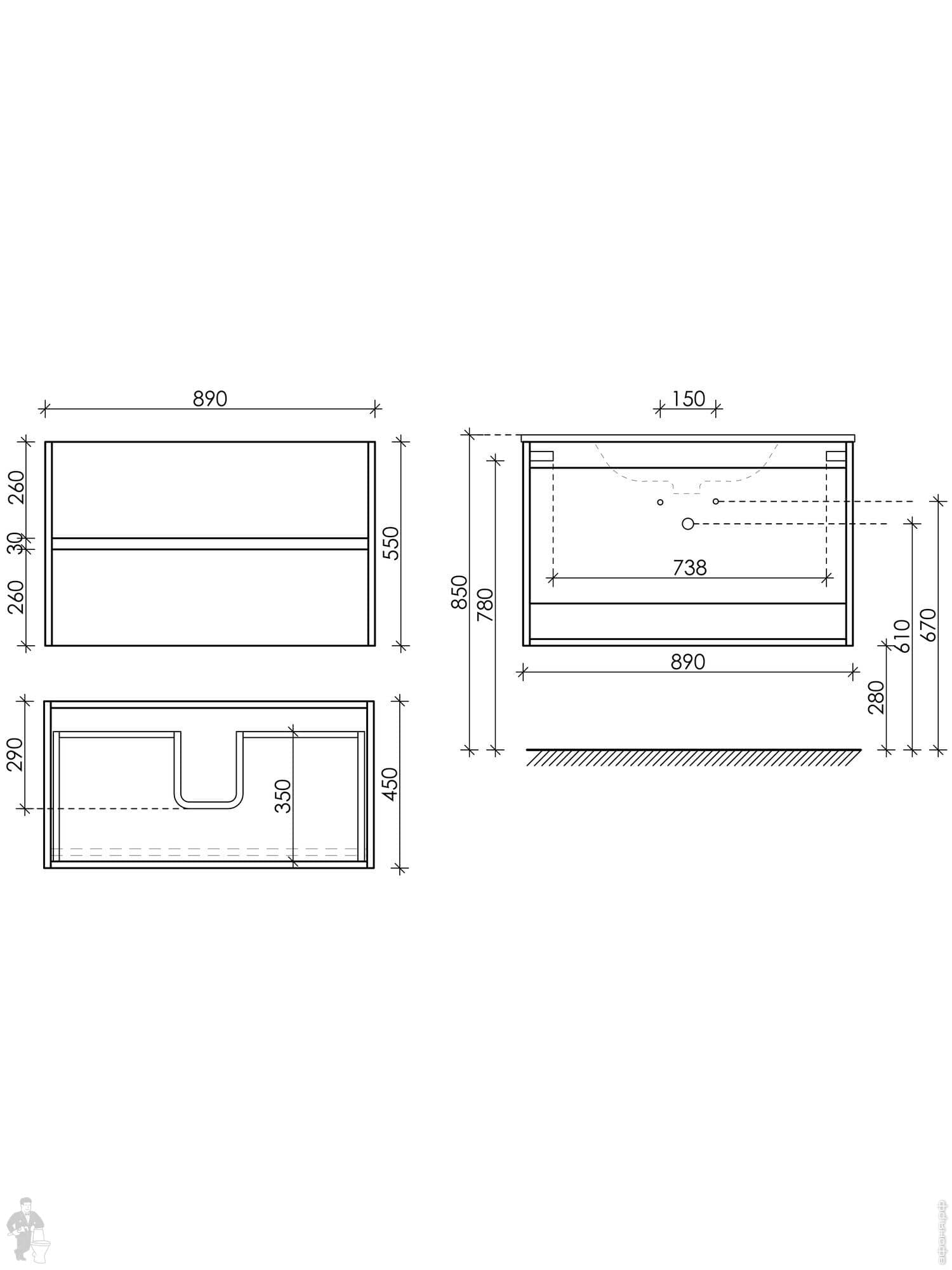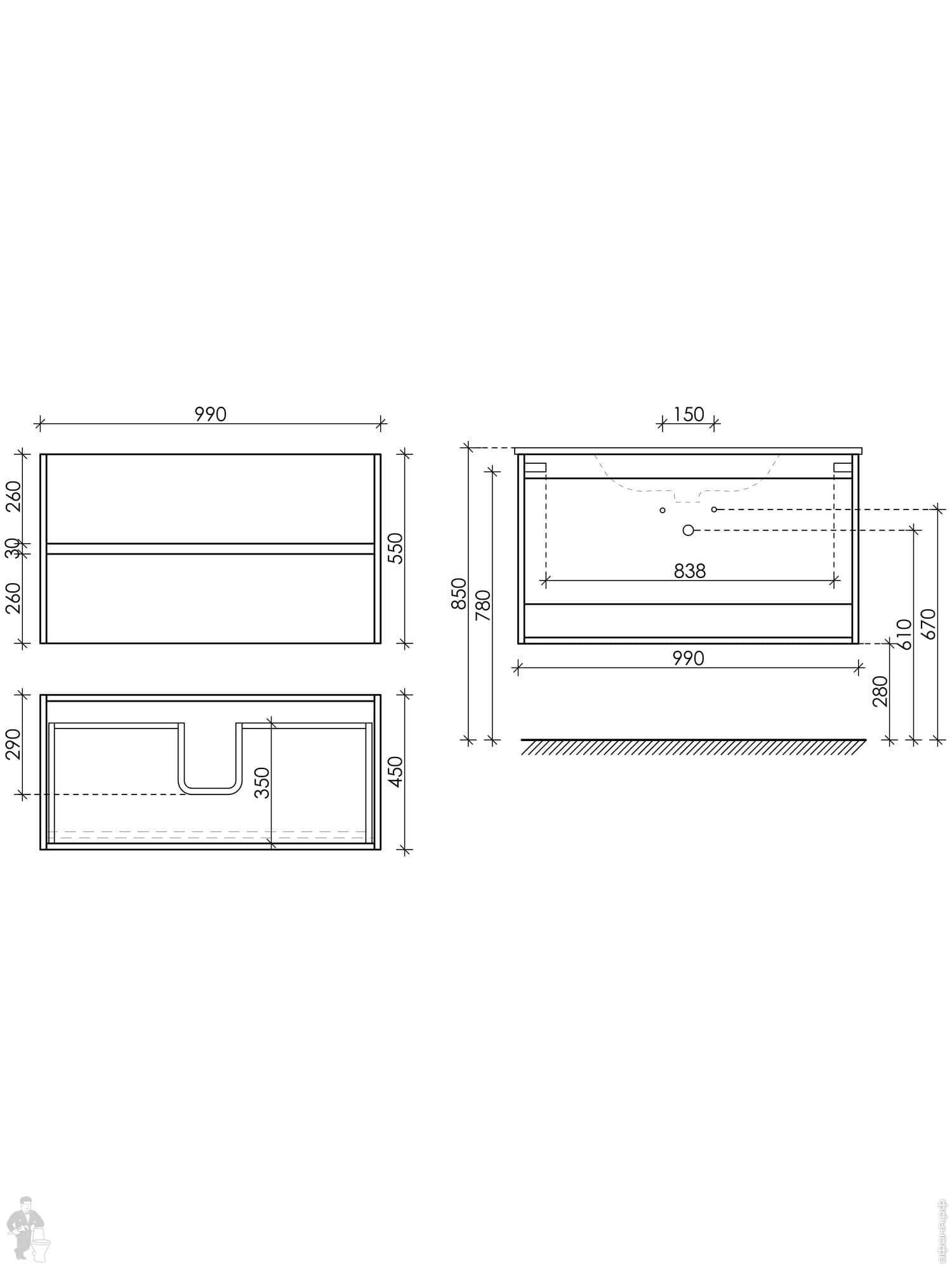 Тумба под раковину SANCOS Urban (990х450х550) подвесная, 2 ящика с доводчиками, дуб галифакс UR100EGКод: 323615