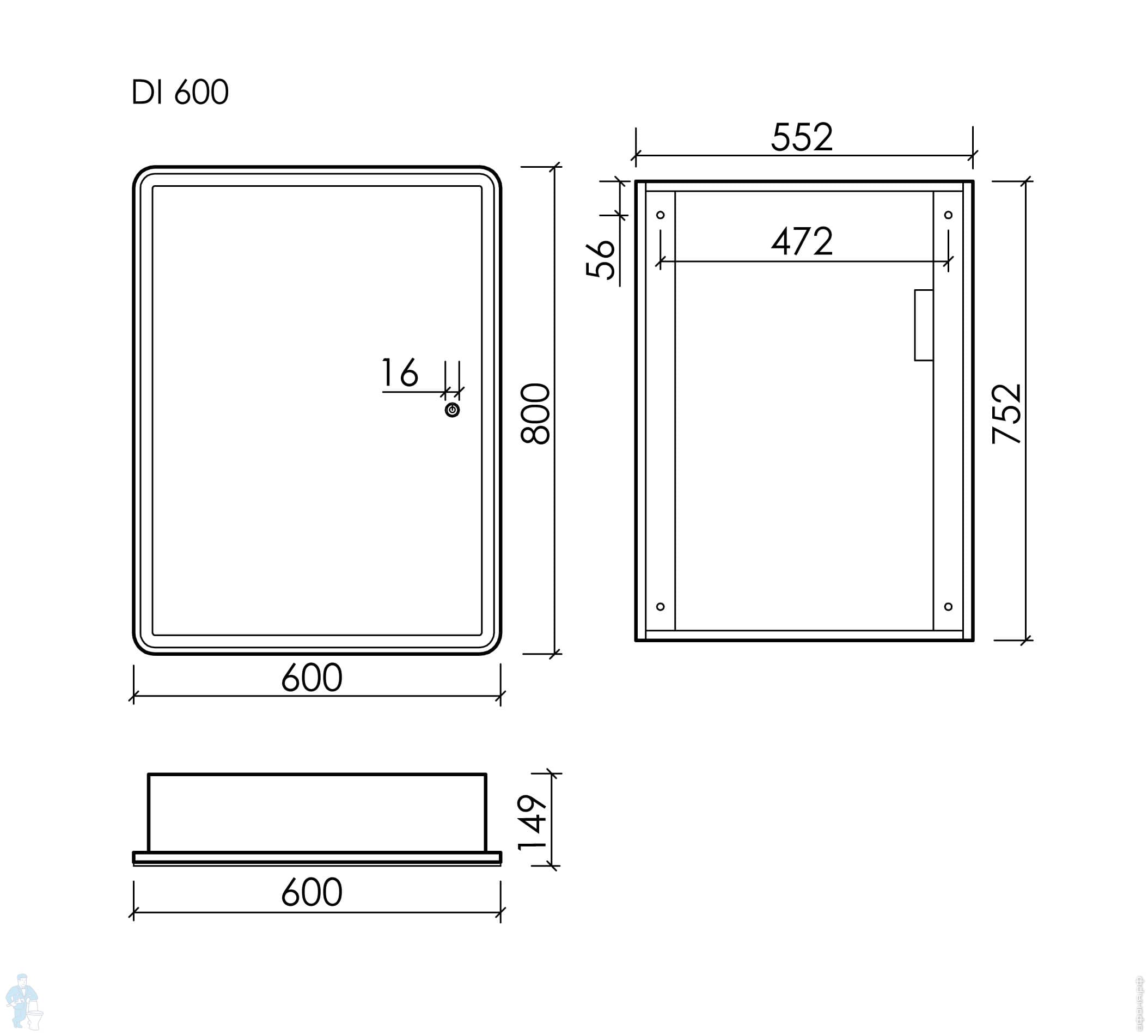 Зеркальный шкаф SANCOS Diva (600х150х800) правый,2полки стекло,подсвет,сенсор включатель,белый DI600Код: 332131