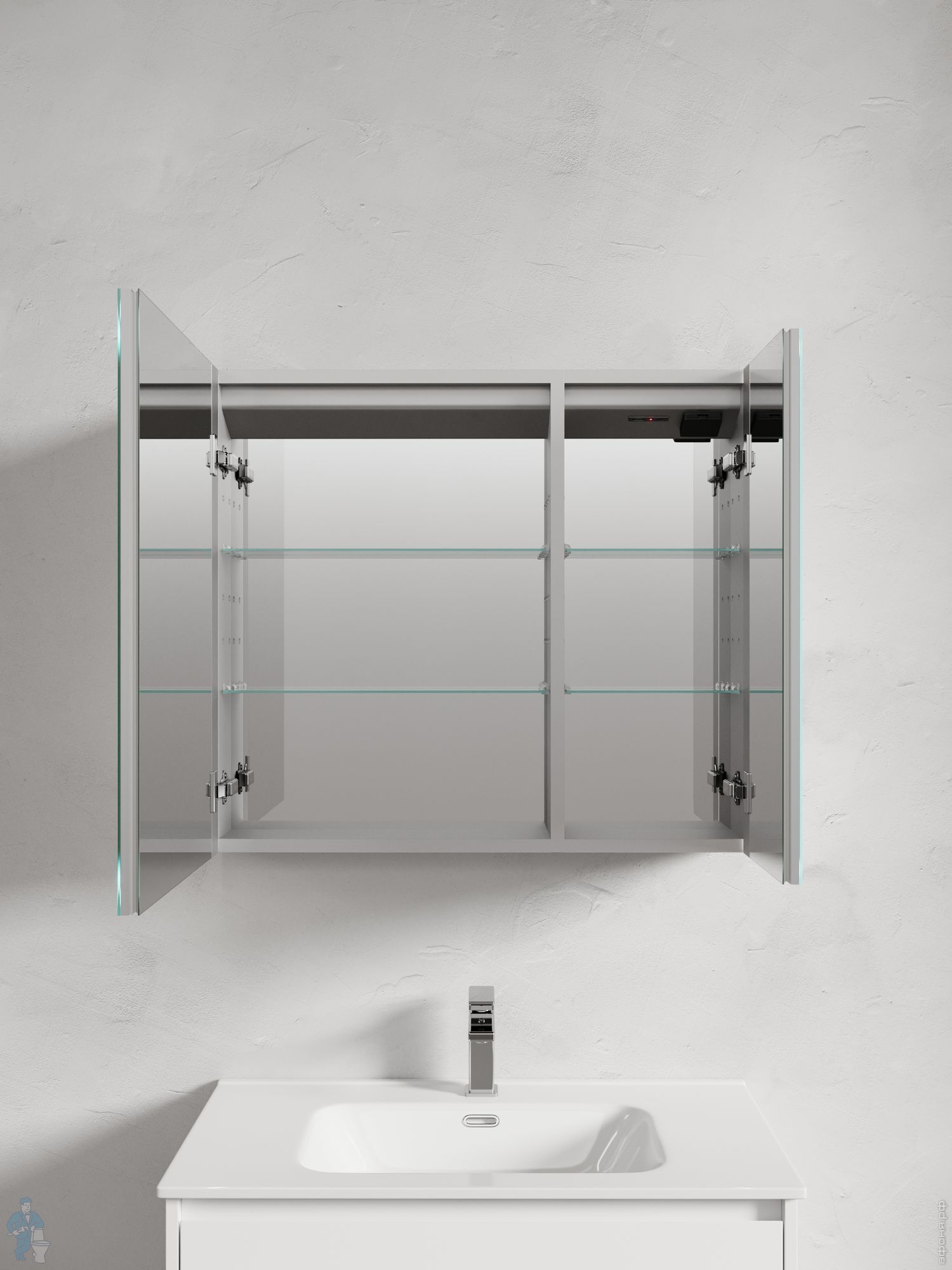 Зеркальный шкаф SANCOS Evoke 1000х136х700 подсветка,розетка,USB,Type-C, бесконтактное управ. SC80100Код: 350087