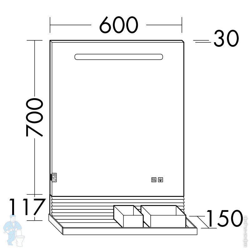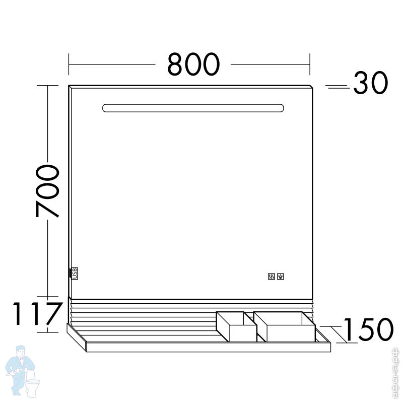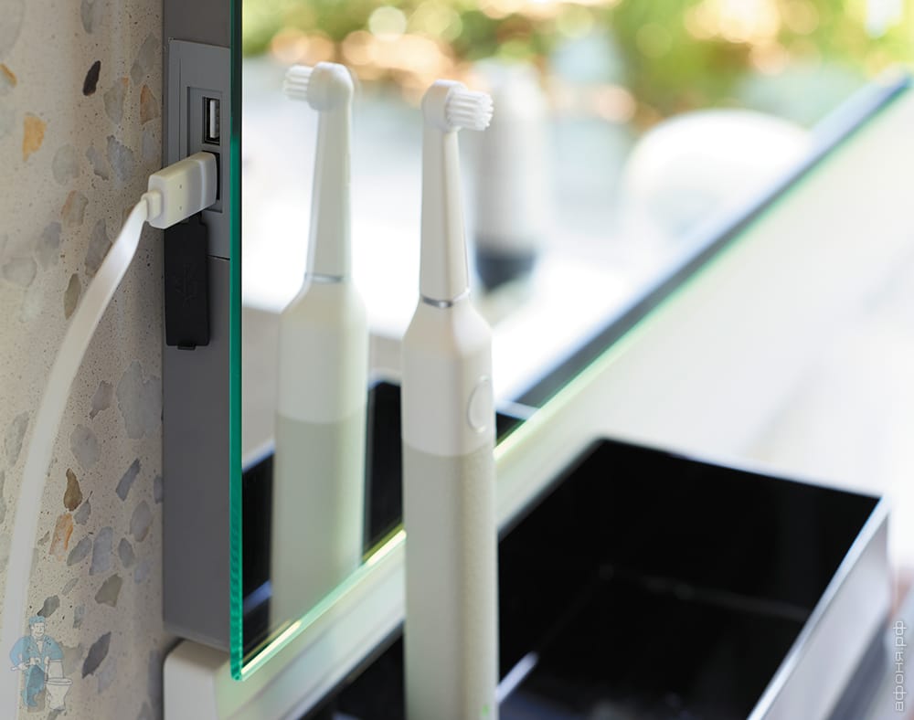 Зеркало Burgbad Fiumo 800х700х30 LED, USB, сенсор, обогрев, рейлинг, панель дуб кашемир SFXP080FOT45Код: 270801