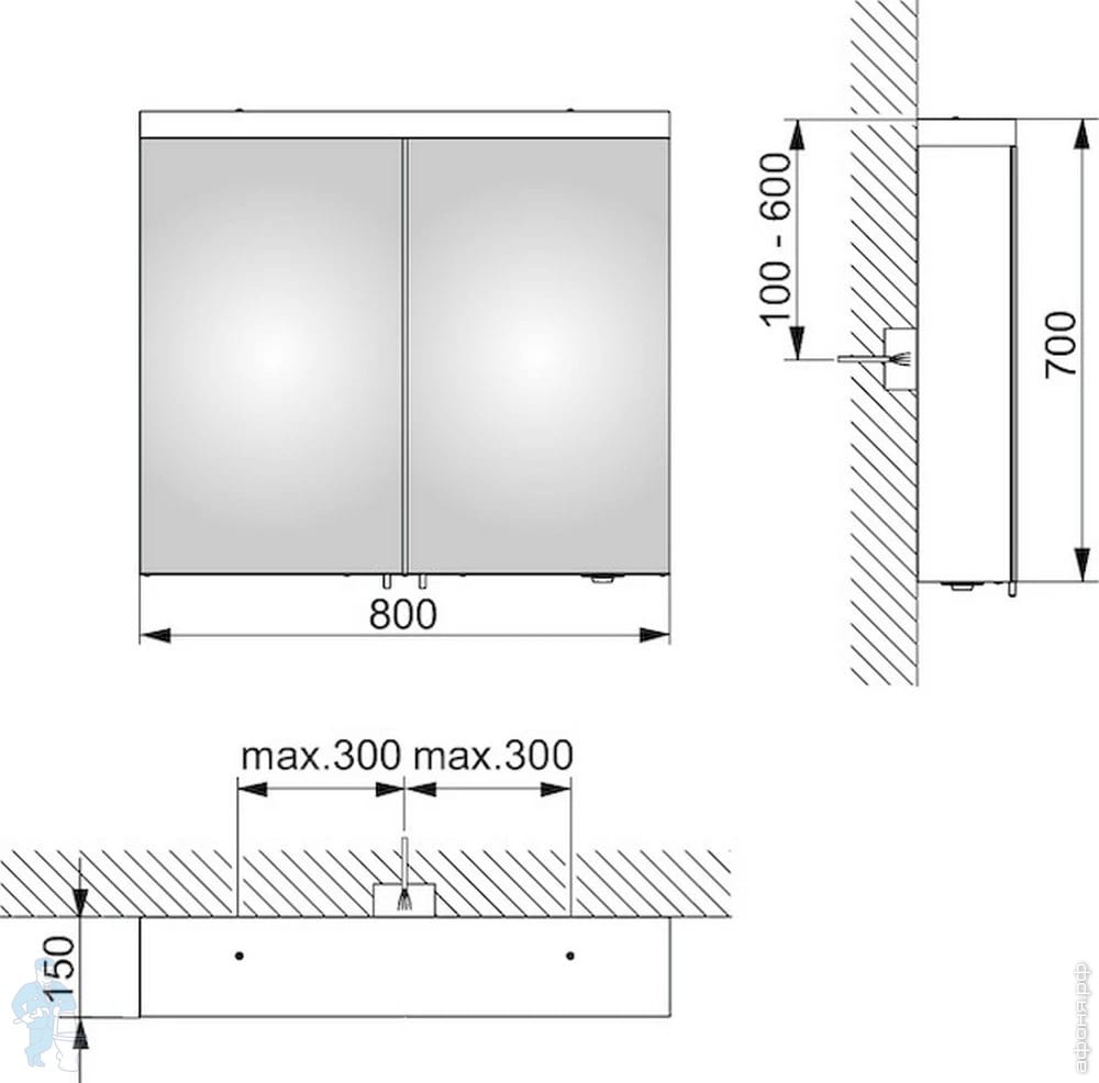 Зеркало-шкаф Keuco Royal Reflex.2 800х700х150 подсветка, подвесной, 2 двери, серебристый 24203171301Код: 309873