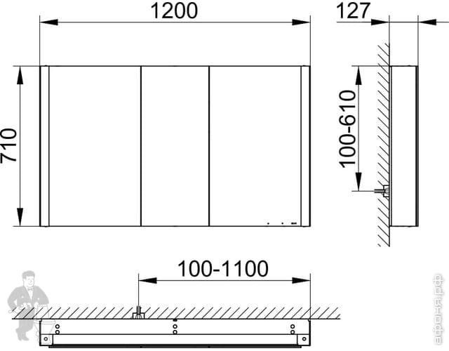 Зеркало-шкаф Keuco Somaris 1200х710х115 встраив.,3 дверцы,подсветка,подогрев,дуб светлый 14514853101Код: 315223