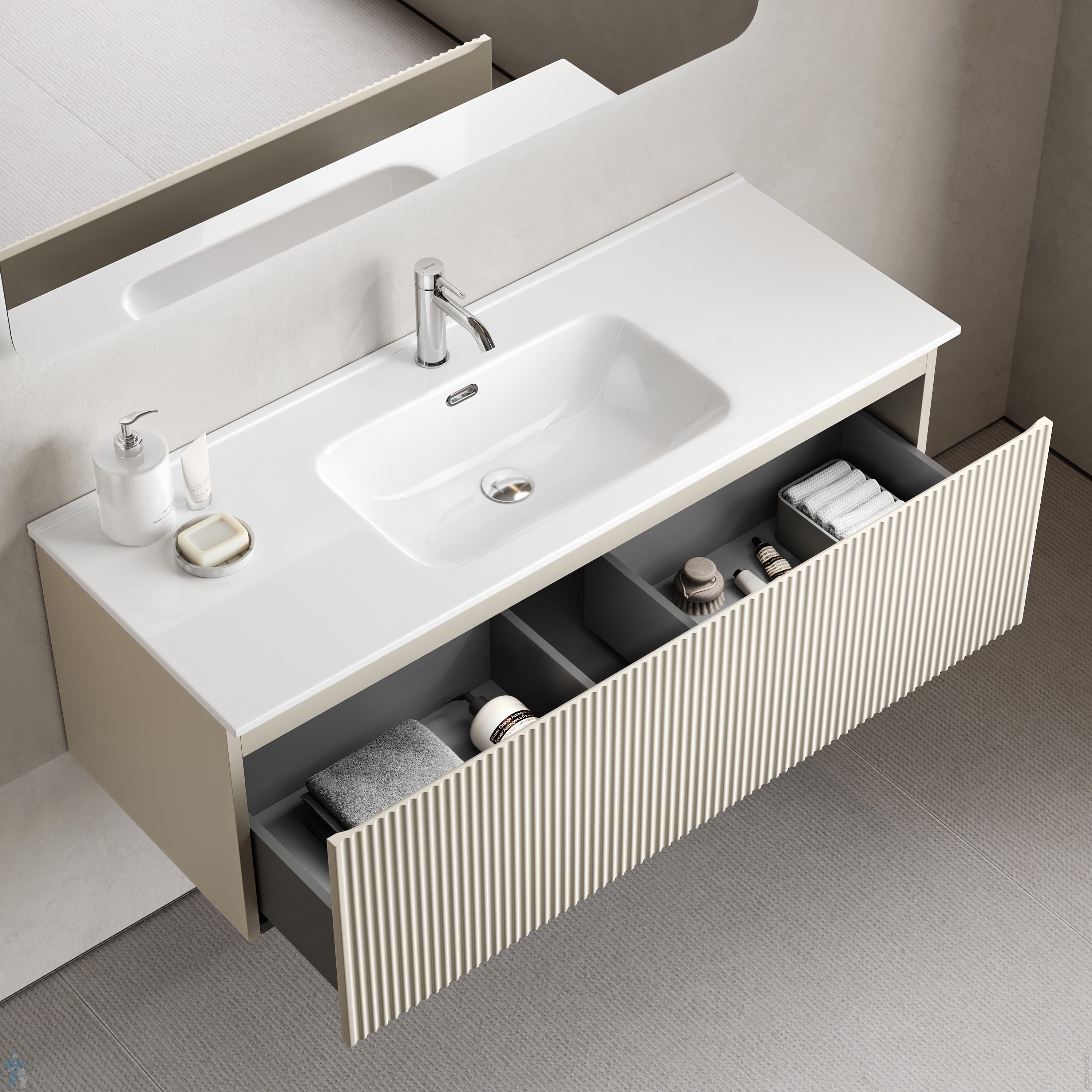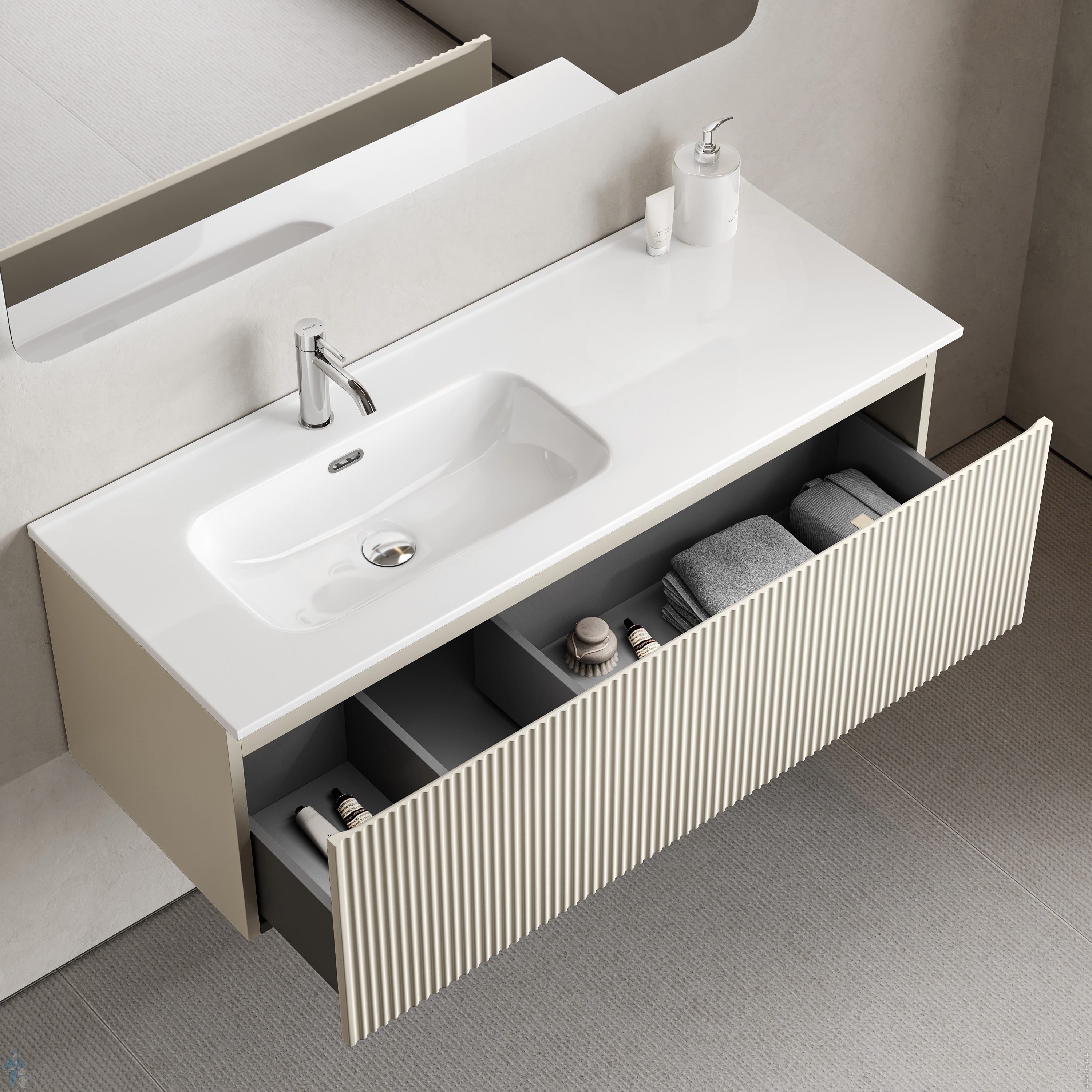 Тумба под раковину Sancos Snob R SNR120RCE 1195х445х500 подвесная, правая, 2 ящика, цвет: Beige softКод: 365205