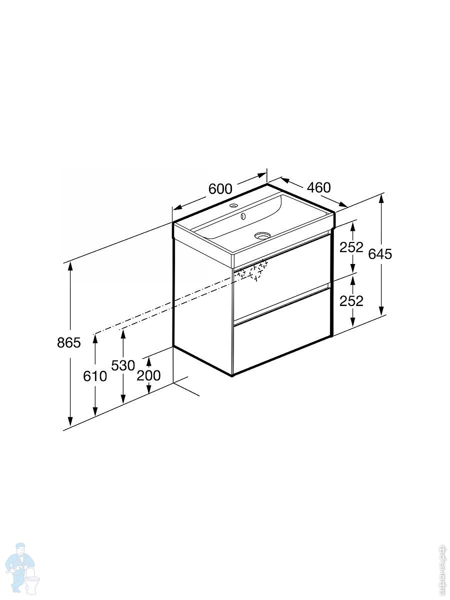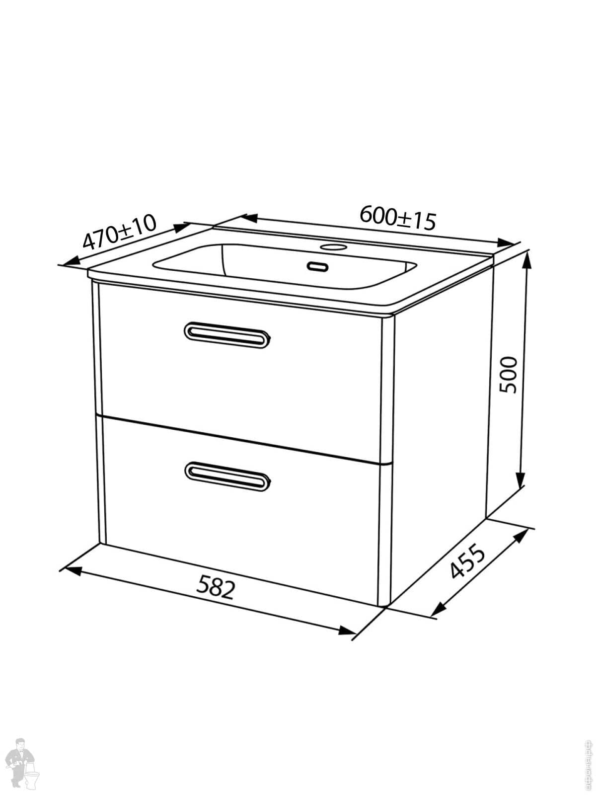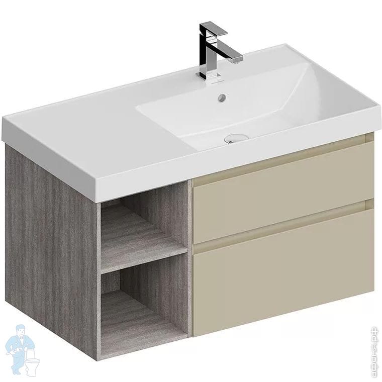 Тумба под раковину SANCOS Delta (995x445x500) подвесная, левая, 2 ящика, дуб красный/графит DL100LGRКод: 314576