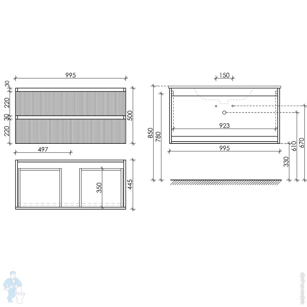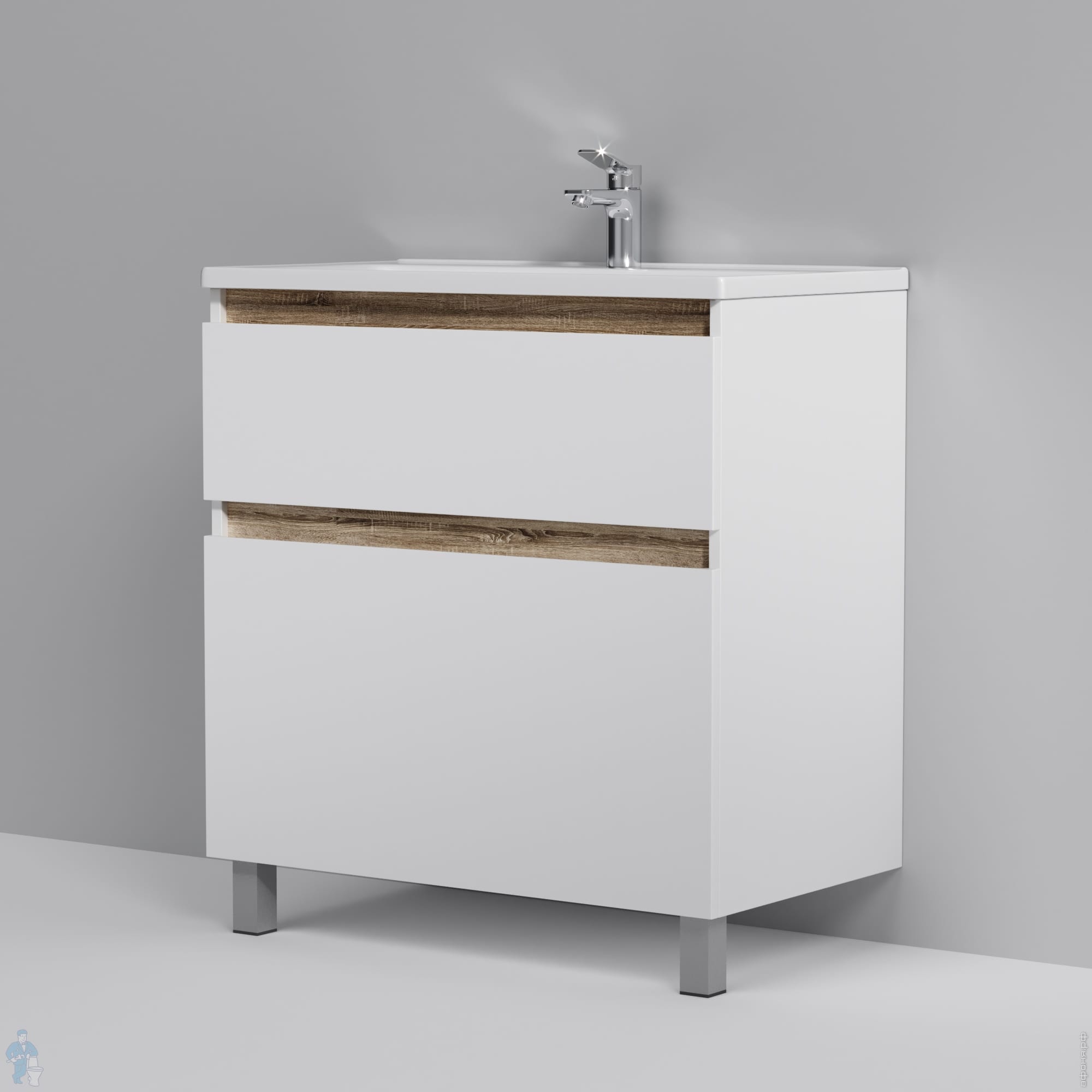 Тумба под раковину AQUATON Сохо 60 1A258001AJA00 588x455x482 подвесная, 2 ящ., графит/дуб веллингтонКод: 212144