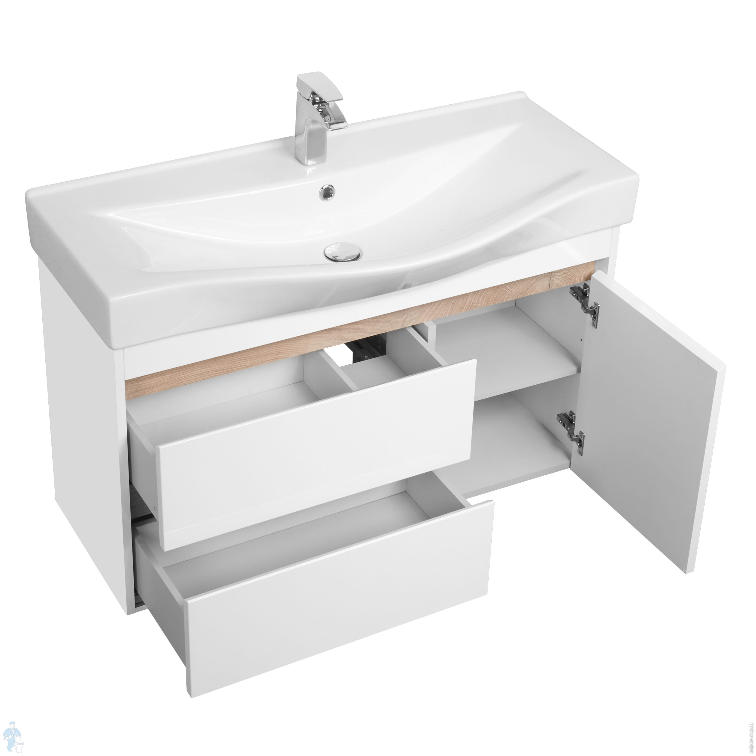 Серьезное преимущество комплекта — тумба под мойку + раковина — заключается в том, что покупатель сразу получает готовый умывальник. Однако более дорогие тумбы со встроенными раковинами имеют свои плюсы и минусы. На сайте «Афоня» всегда можно задать вопрос консультанту
