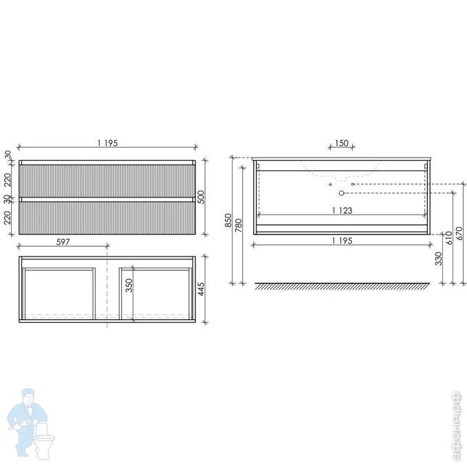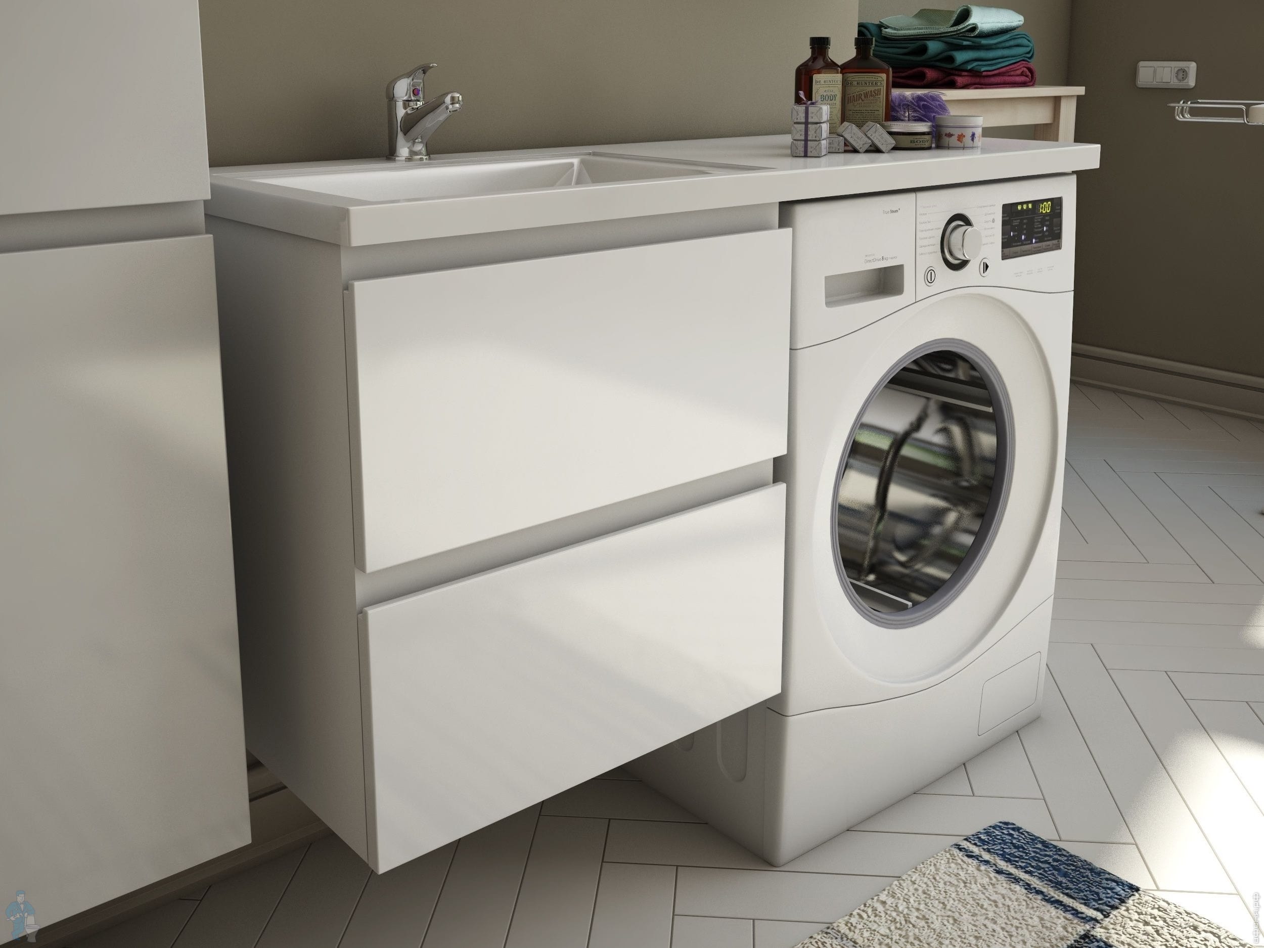 Тумба со столешницей Estet Dallas 1200х482 к стиральной машине, подвесная, 2 ящика,левая ФР-00001928Код: 1425621 отзыв