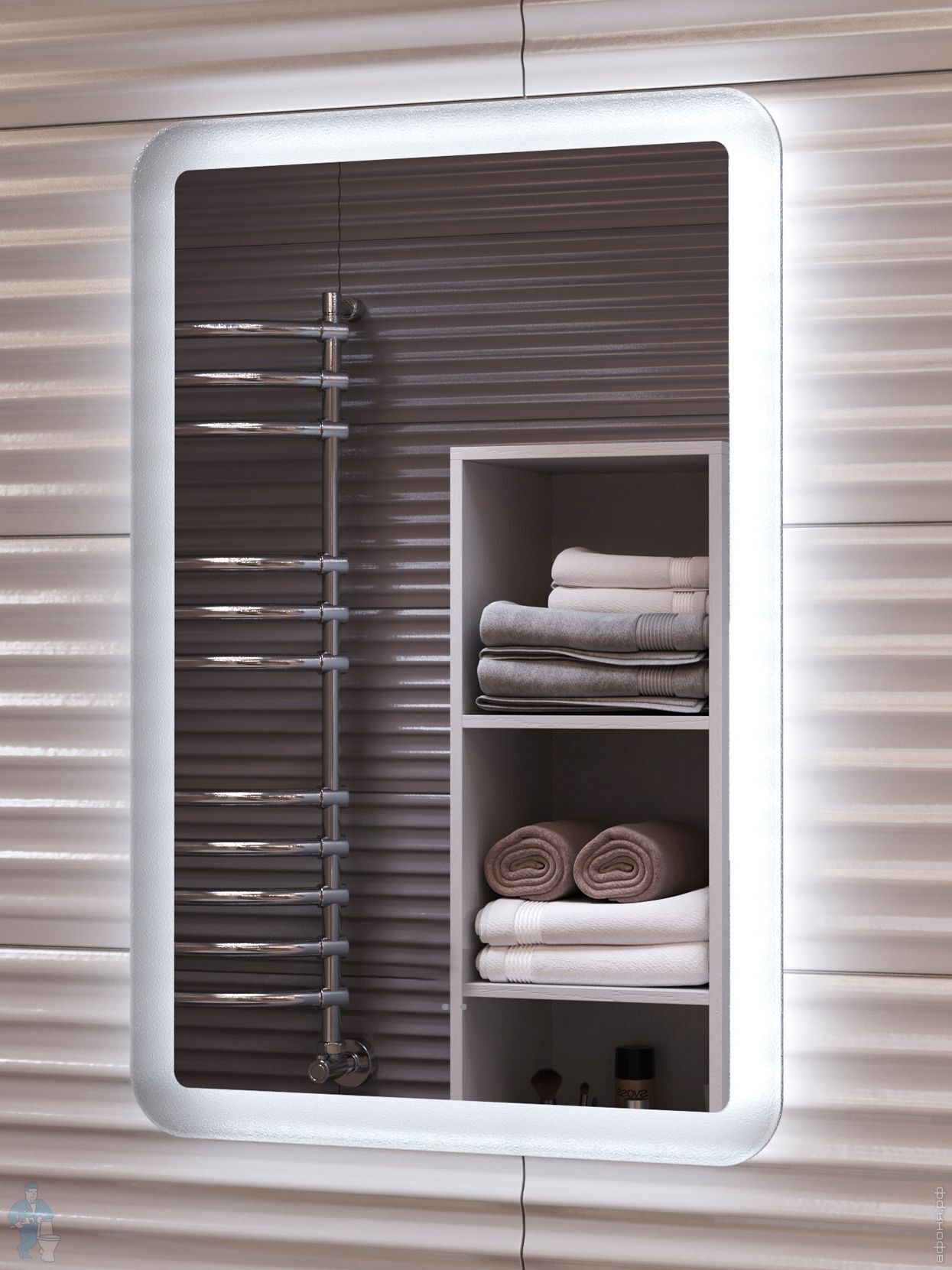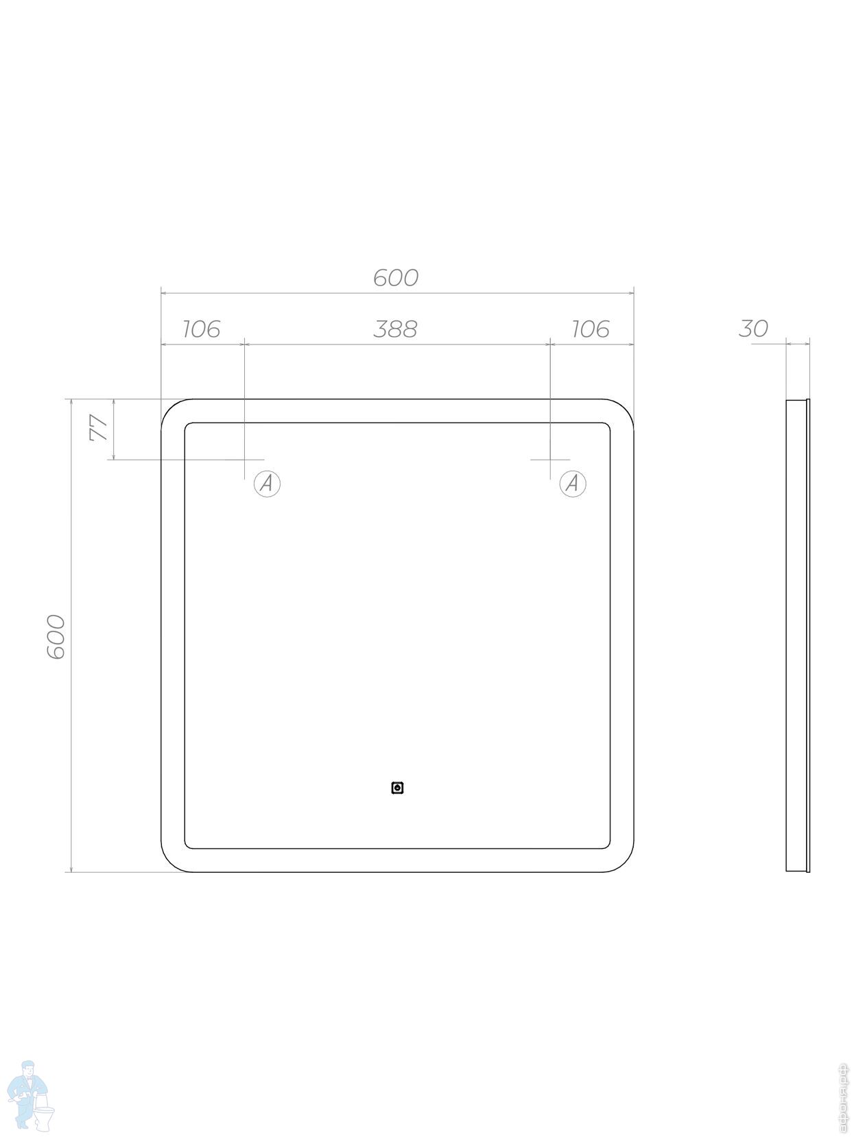 Зеркало VIGO Roberta Luxe 1000 (1000х1000) LED, бесконтактное управление, часы, подогрев, диммер 295Код: 365898