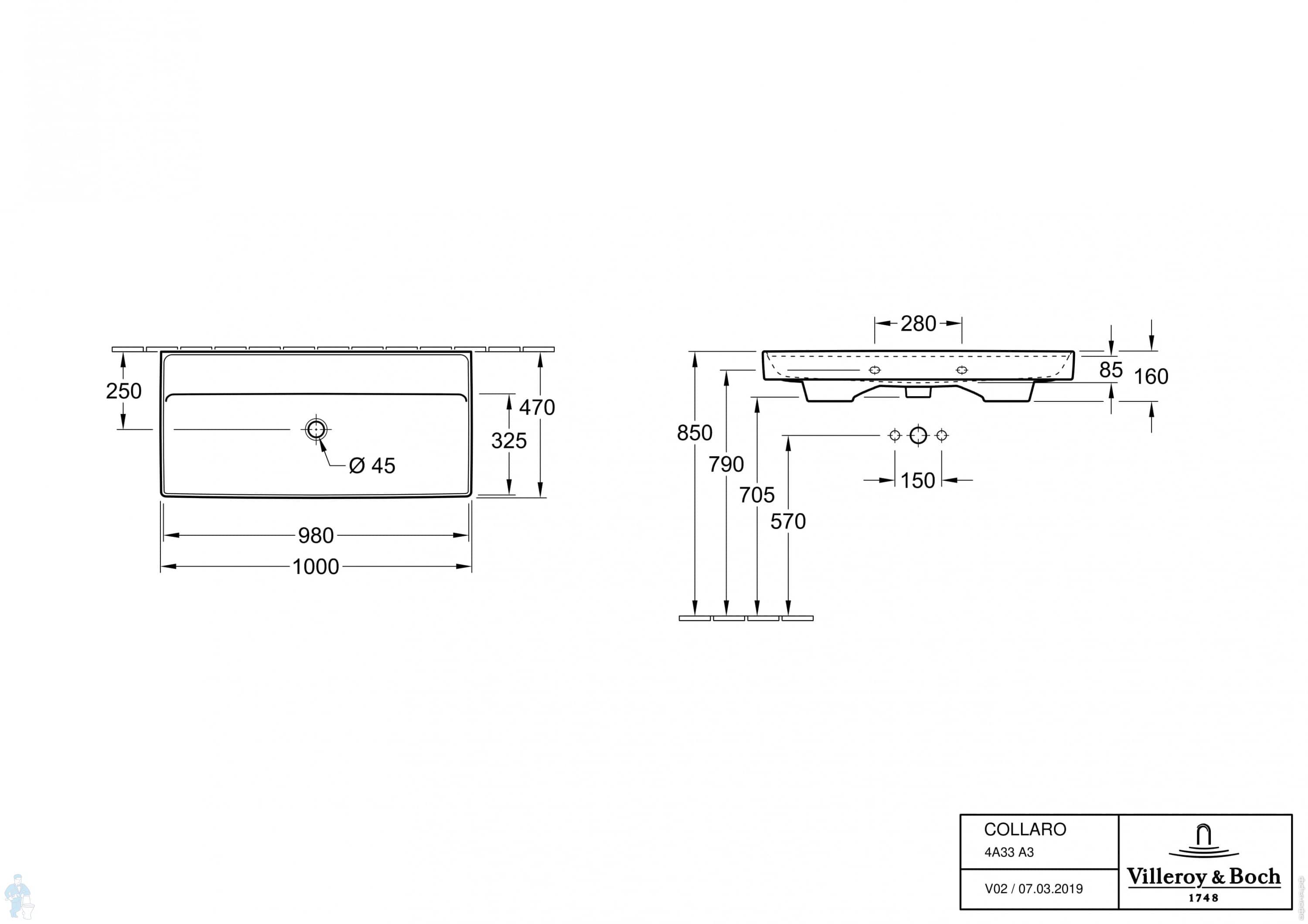 Раковина Villeroy & Boch Antao (1000х500х150) отв. под смес., без перелива, ceramic+, белая 4A76A2R1Код: 316564