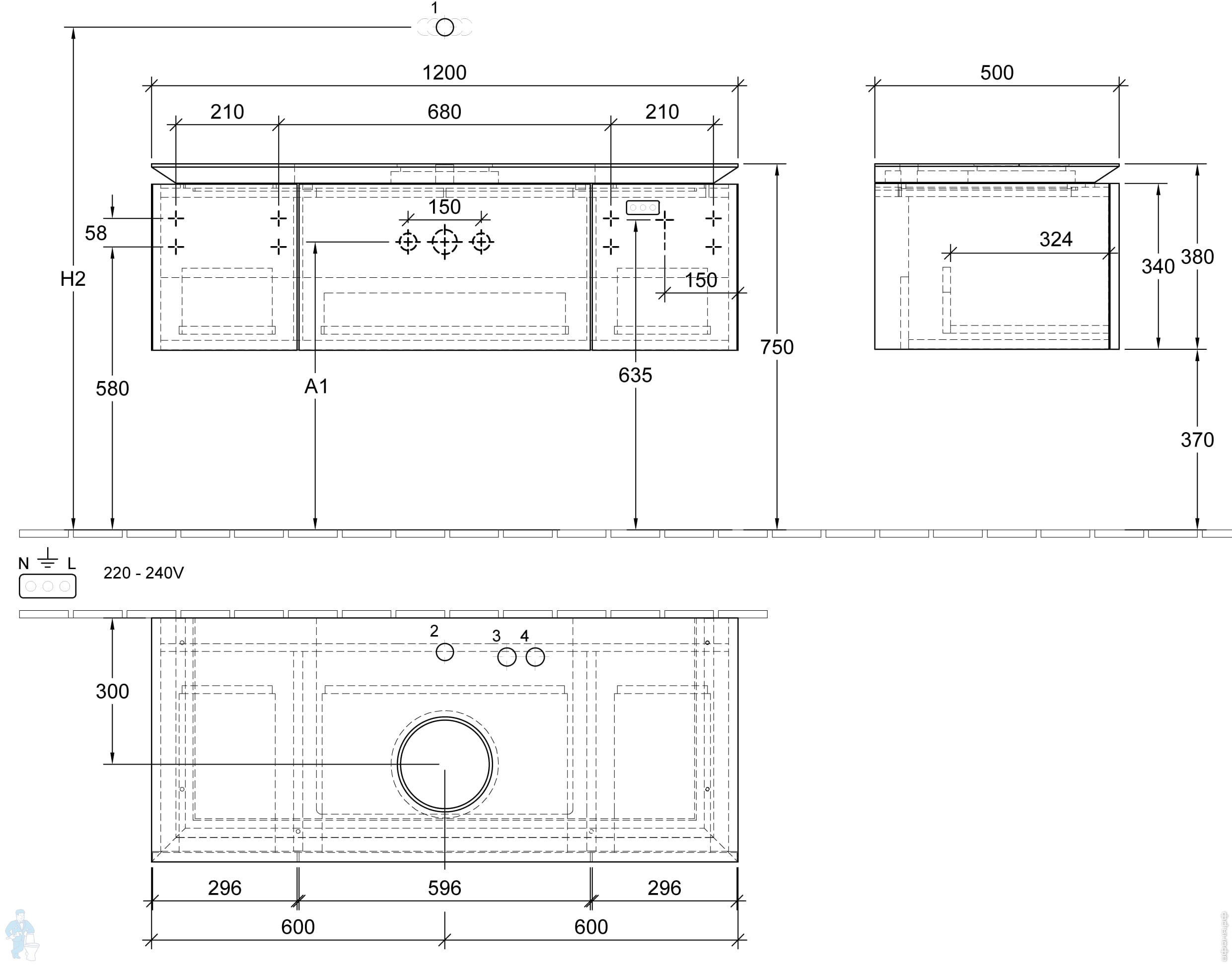 Тумба под умывальник Villeroy & Boch LEGATO (1200х500х380) подвесная, подсветка, сер.глянец B577L0FPКод: 147863