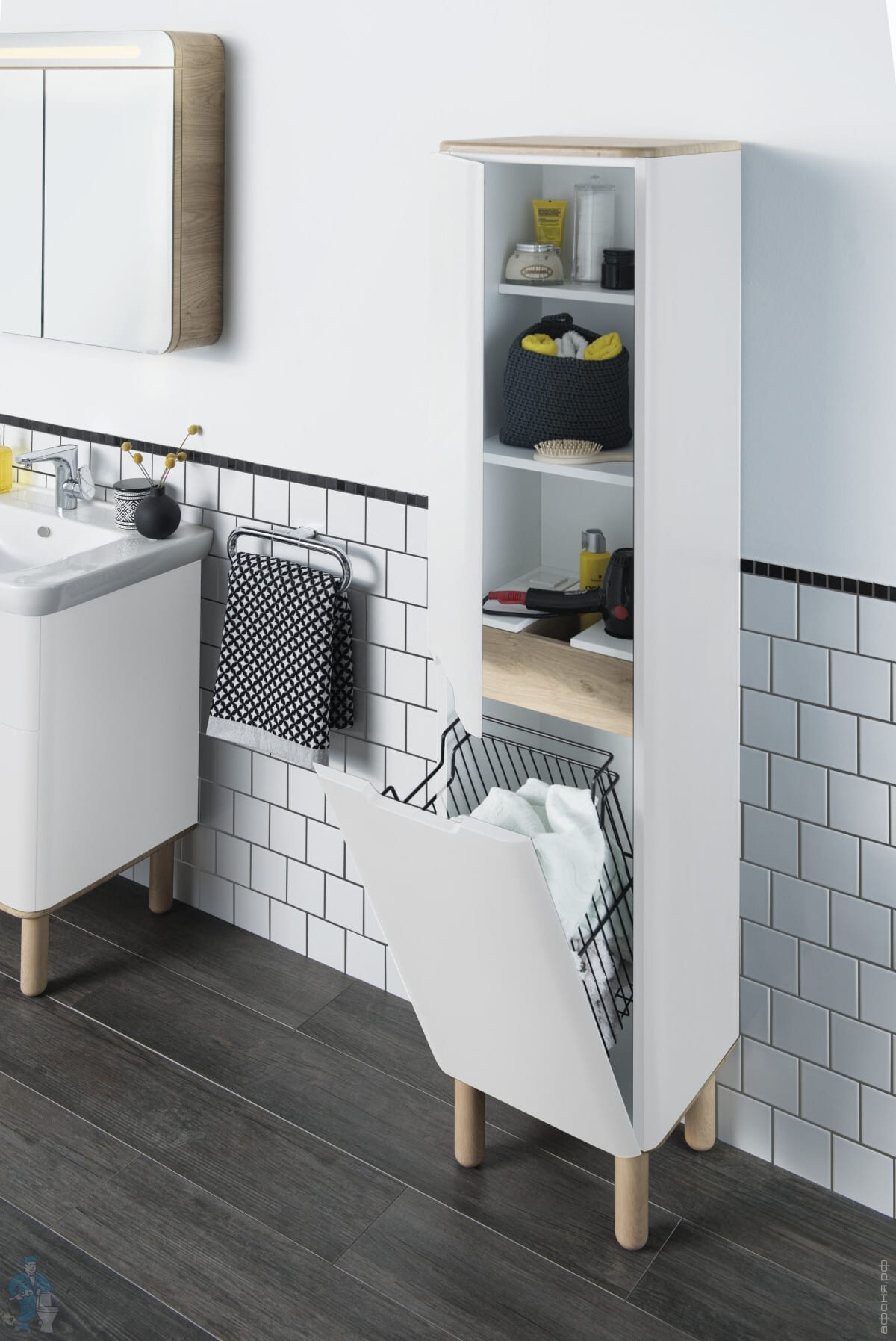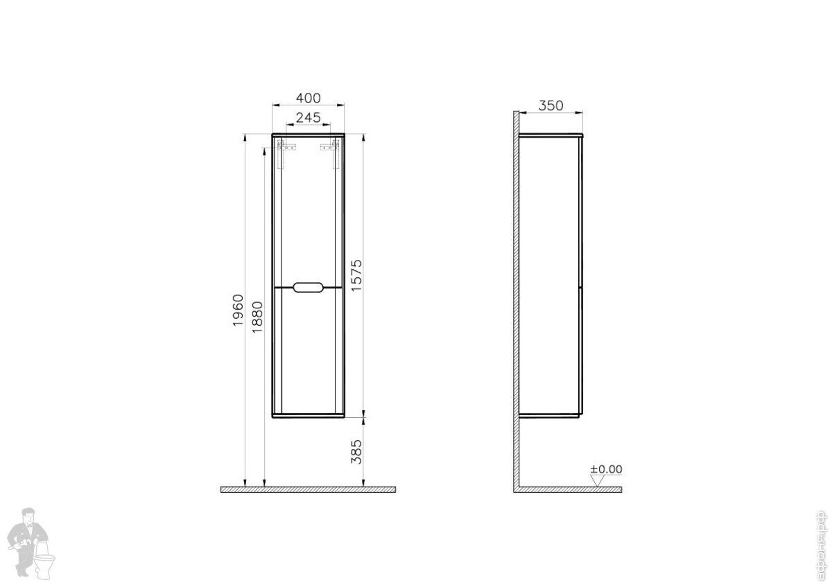 Пенал Vitra Sento 400х1575х350 с корзиной для белья, без ножек, петли справа, антрацит матовый 60844Код: 195986