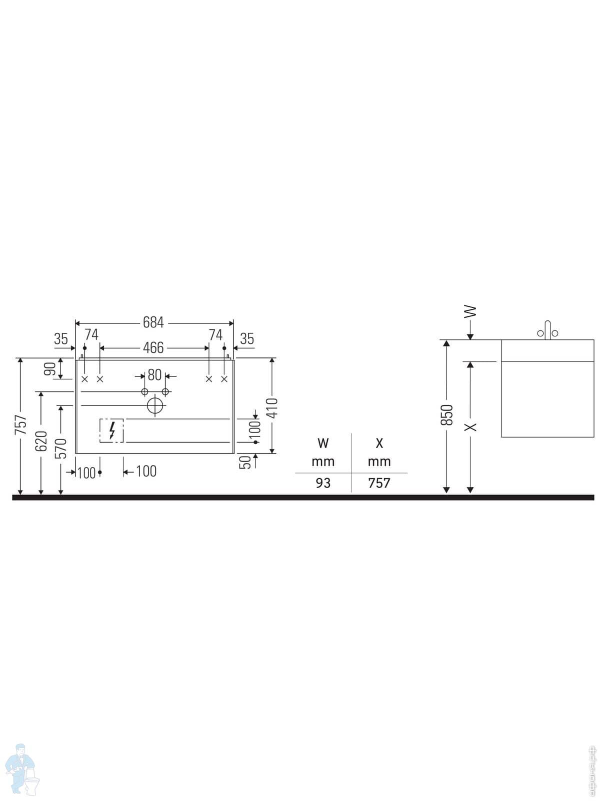 Тумба под раковину Duravit White Tulip WT497608585 1000х408х550 подвесная, 1 выдв. ящ., белый глянецКод: 208470