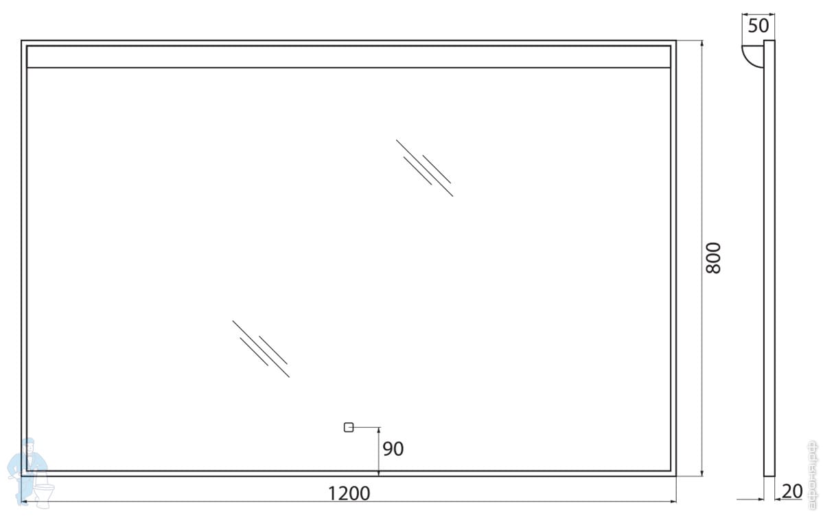 Зеркало BelBagno SPC-UNO-1200-800-TCH (1200х800х50) алюминиевая рама,подсветка,сенсорный выключательКод: 256532