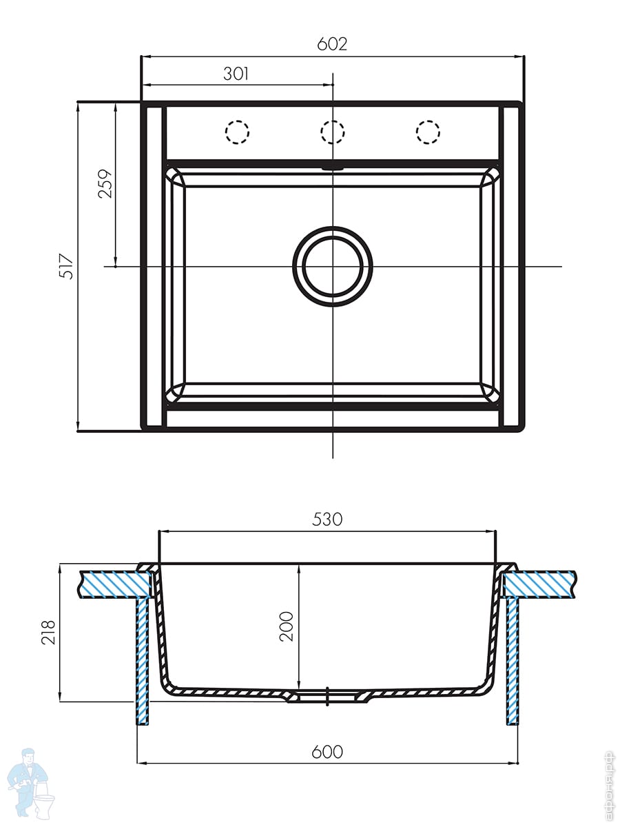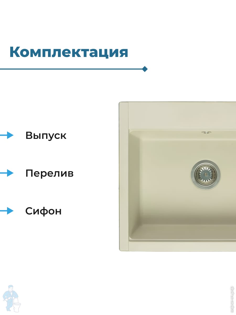 Мойка керамогранитная Aquaton Парма (510х190х470) прямоугольная, одинарная, серый шелк 1A713032PM250Код: 113308