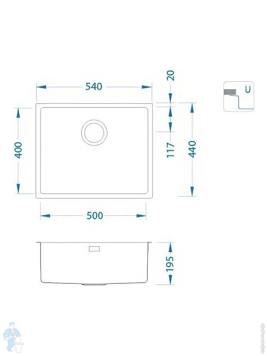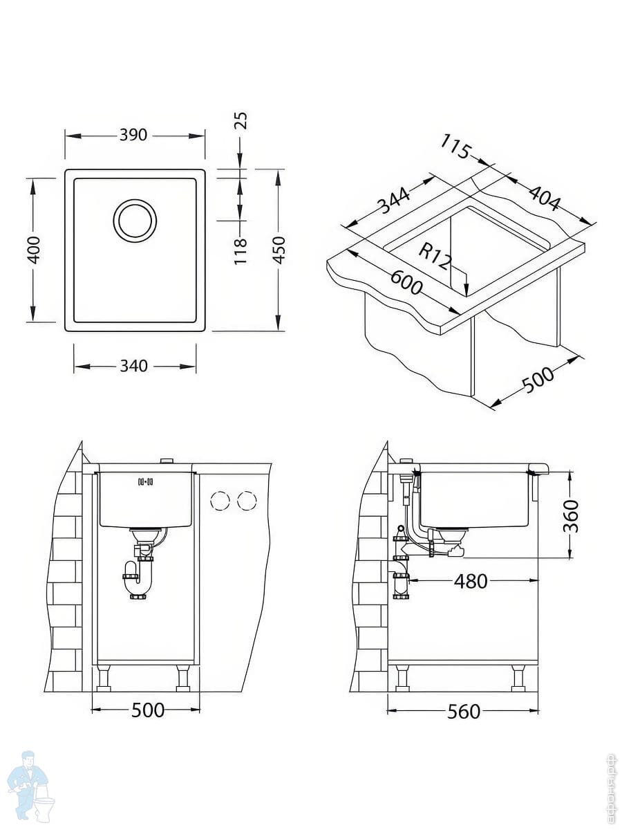 Мойка ALVEUS Monarch Kombino 50 (540х440) монтаж врезной/вровень, нерж ст. 1мм, PVD антрацит 1121284Код: 309131