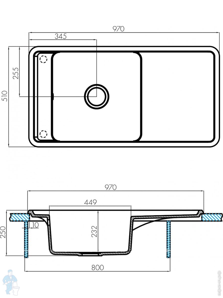 Мойка керамогранитная Aquaton Беллис 97 (970х510х250) одинарная с крылом, терракотовый 1A725132BS270Код: 187833