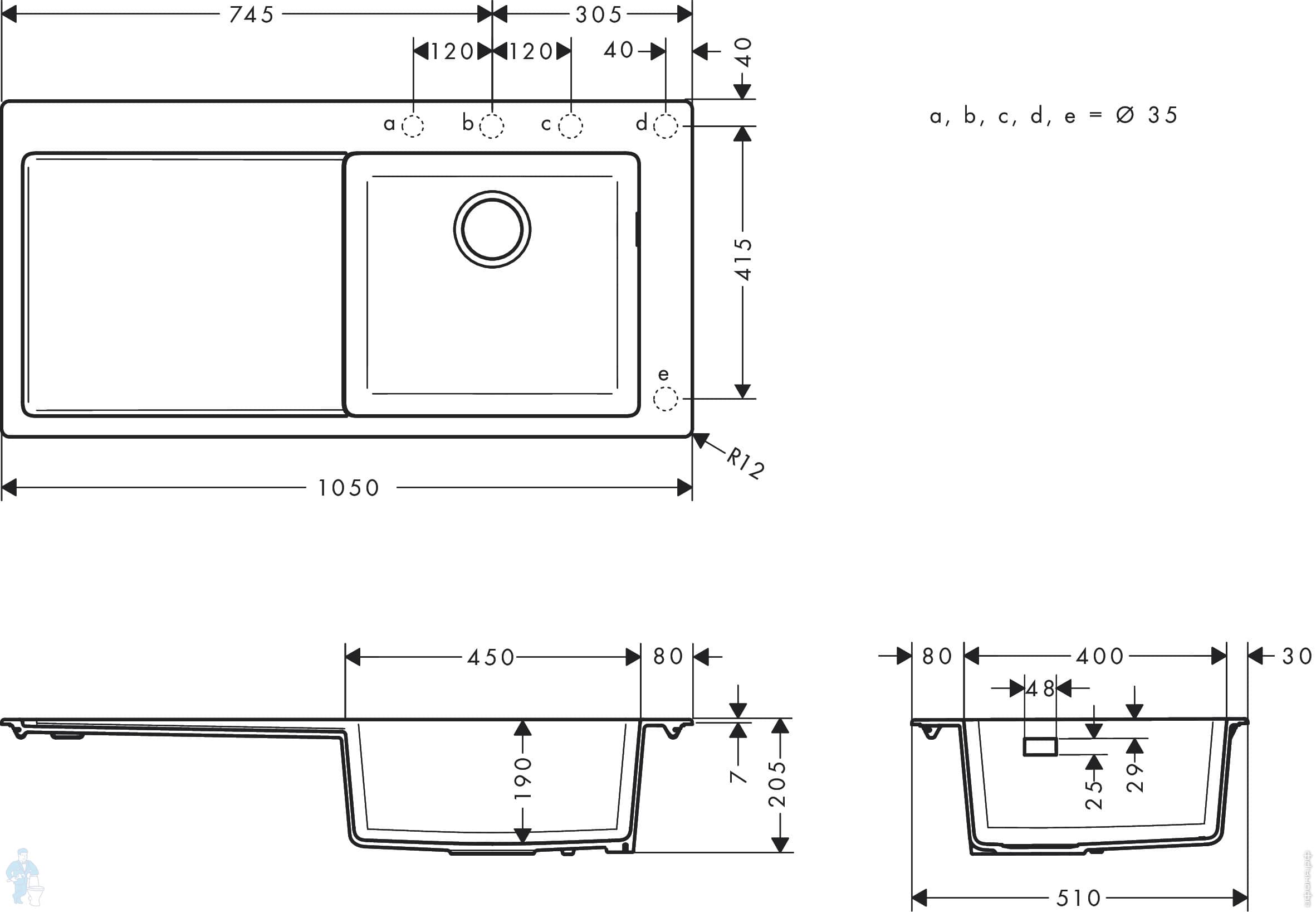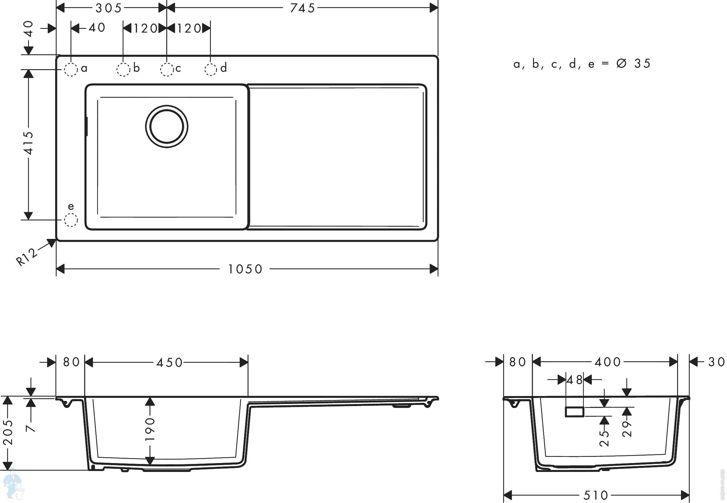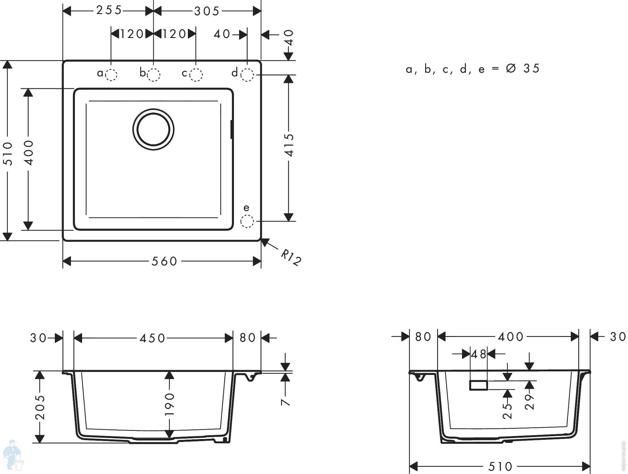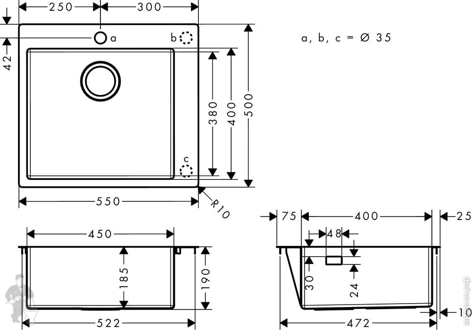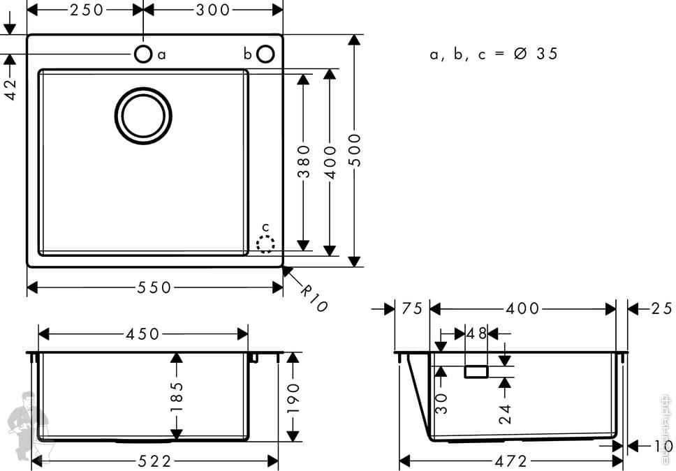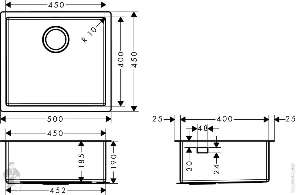 Для шкафа/столешницы 60 см
