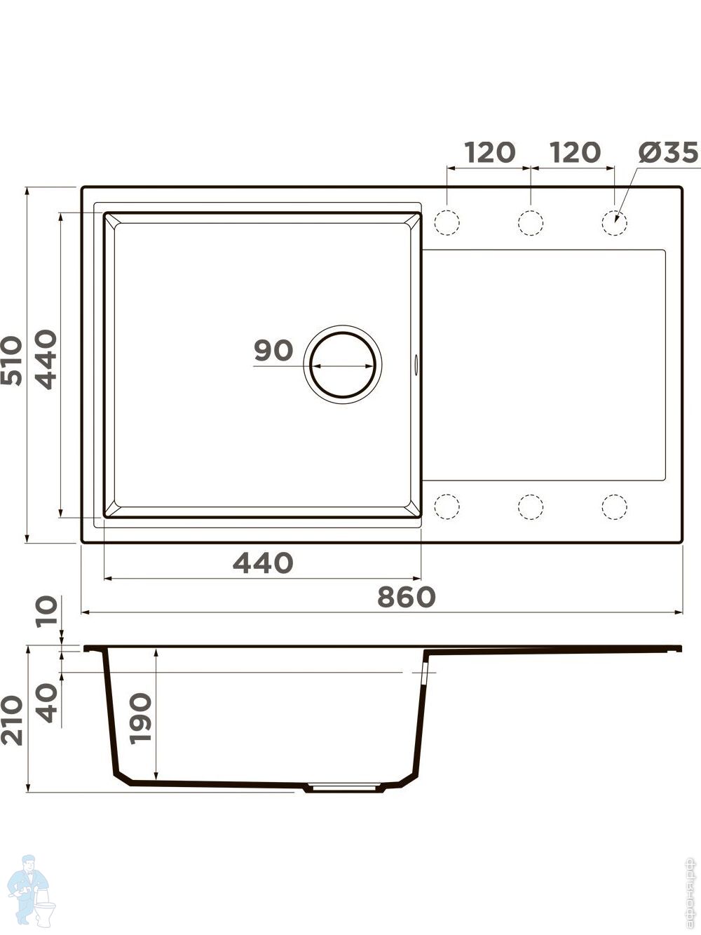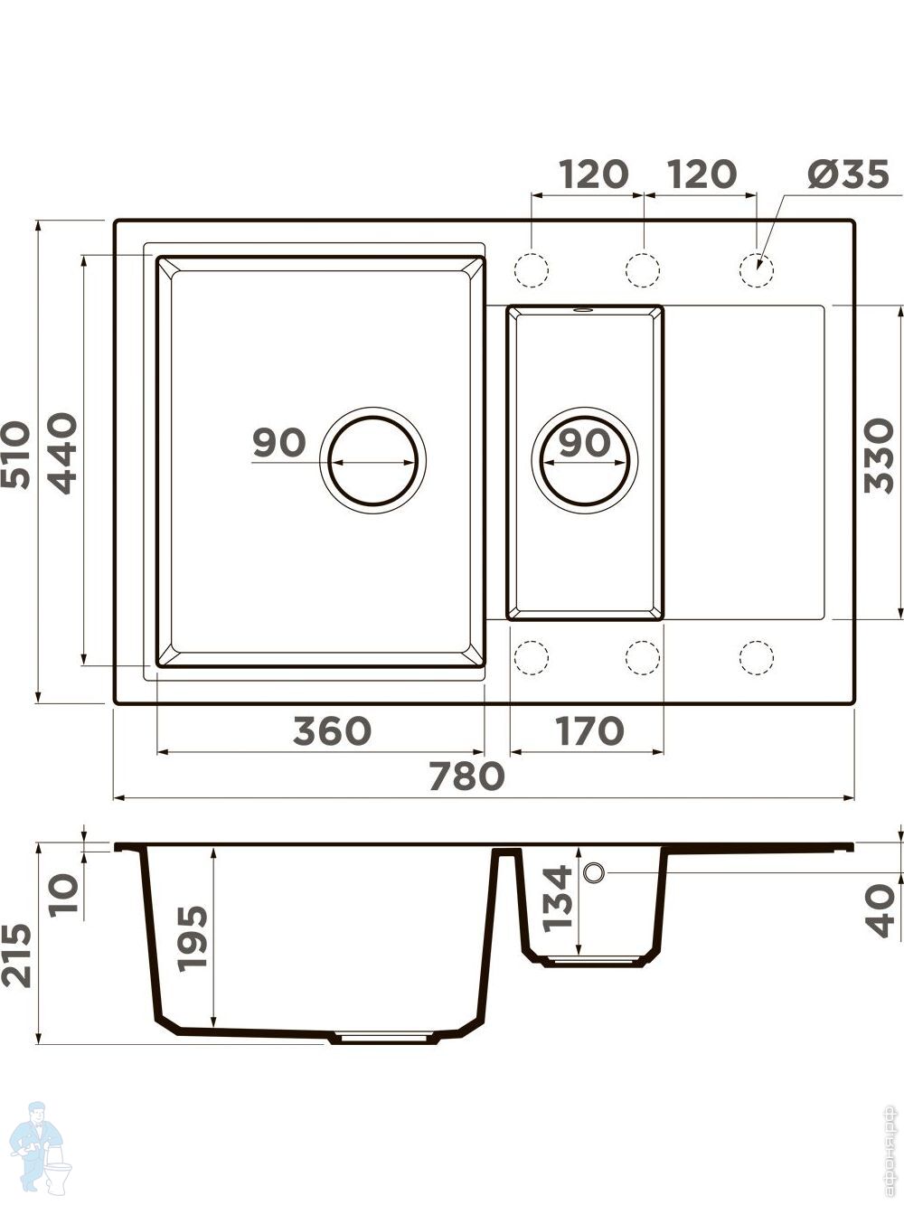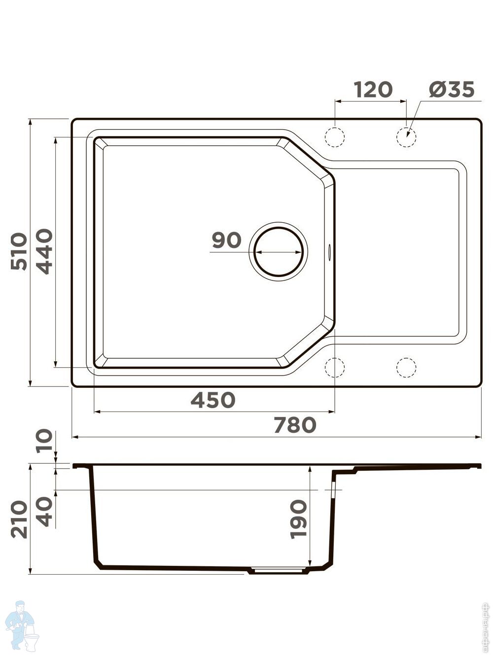 в шкаф от 60 см (на столешницу)