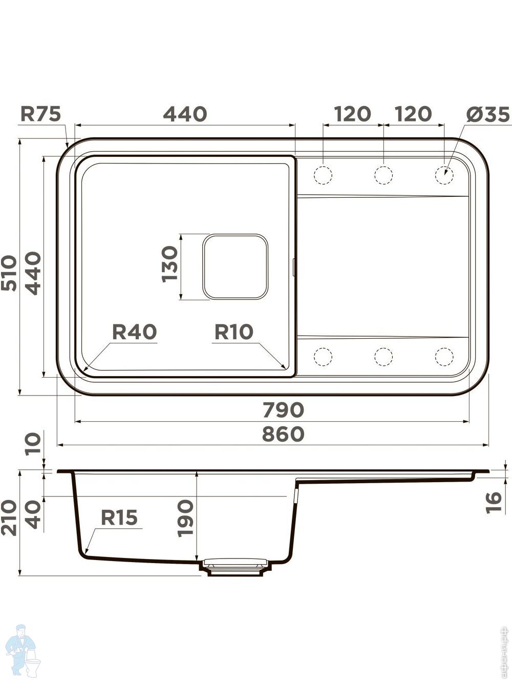 Мойки Omoikiri Артгранит (гранит+кварц) в шкаф от 60 см (на столешницу) на Афоня.рф