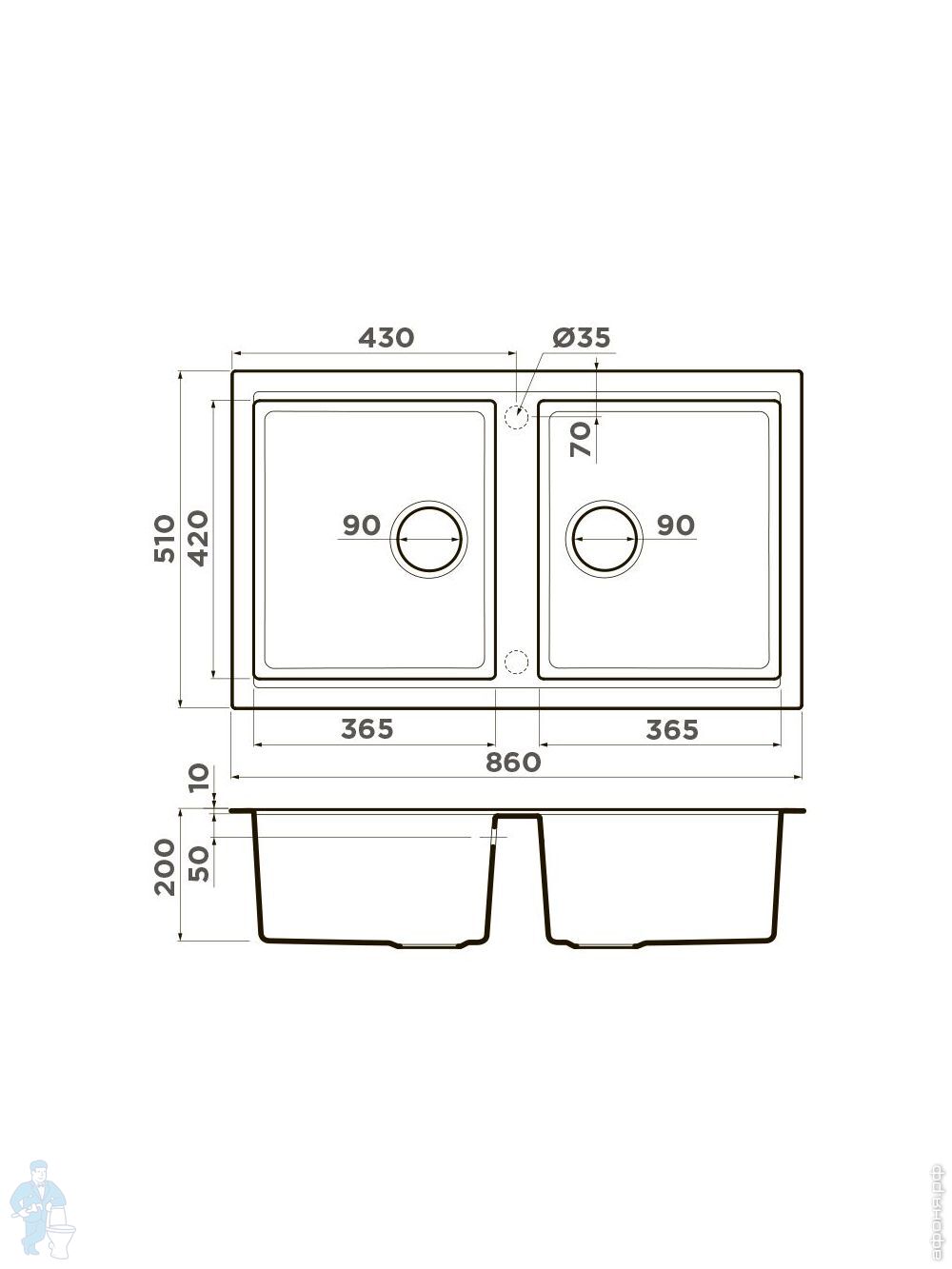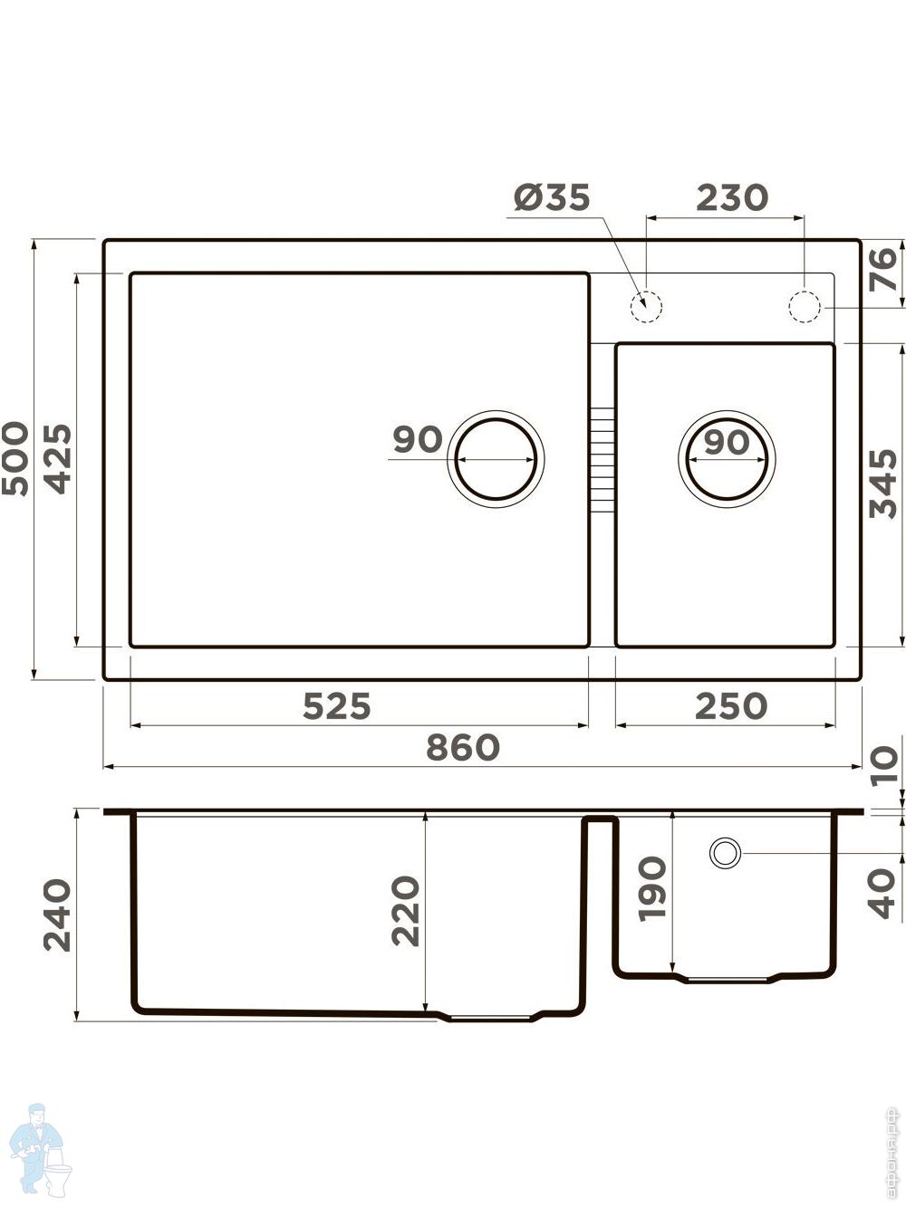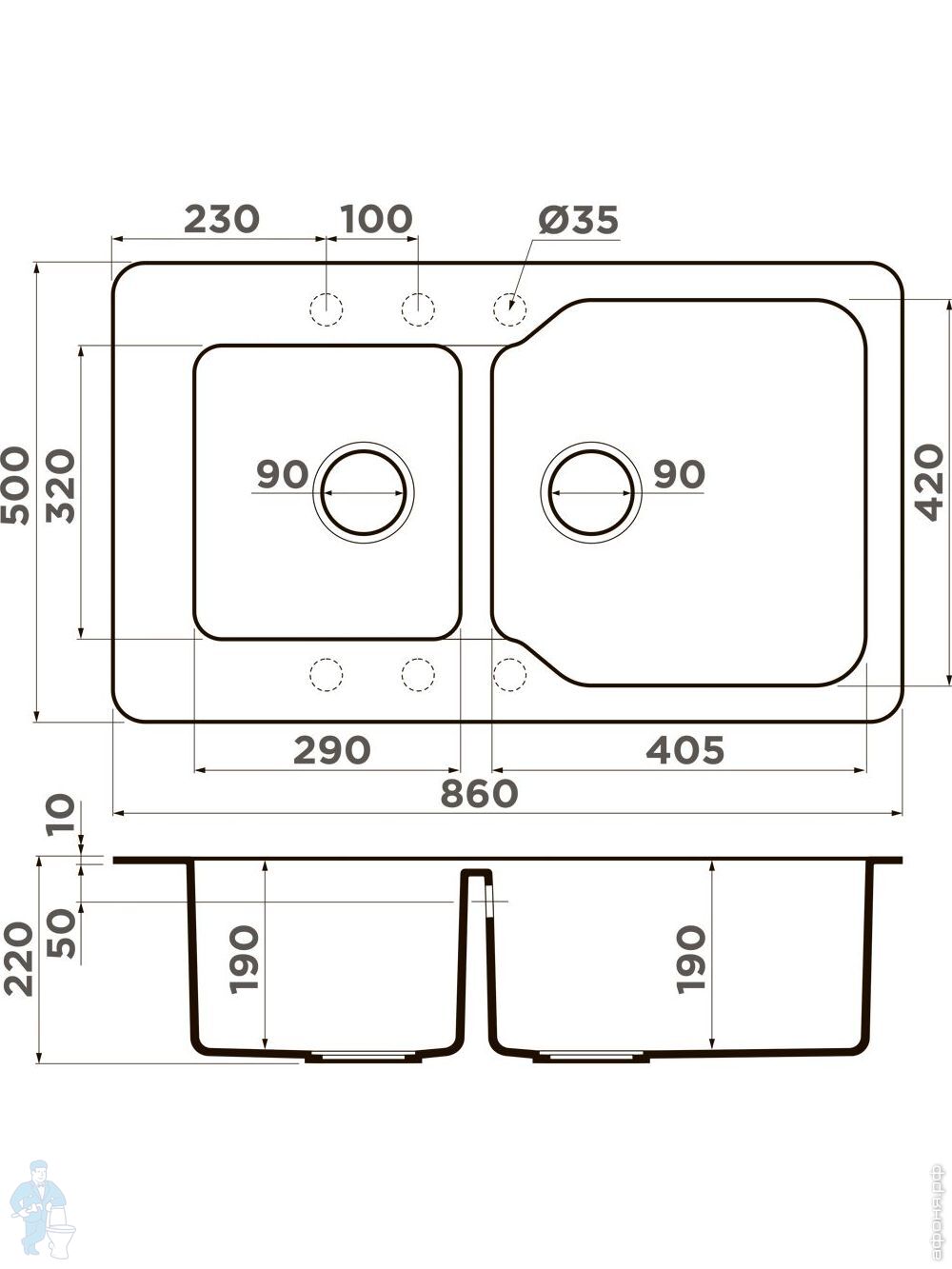 Мойка Omoikiri TEDORI 86-2 DC (860х510х200) врезная, 2 чаши, тетогранит, цвет темный шоколад 4993928Код: 241347
