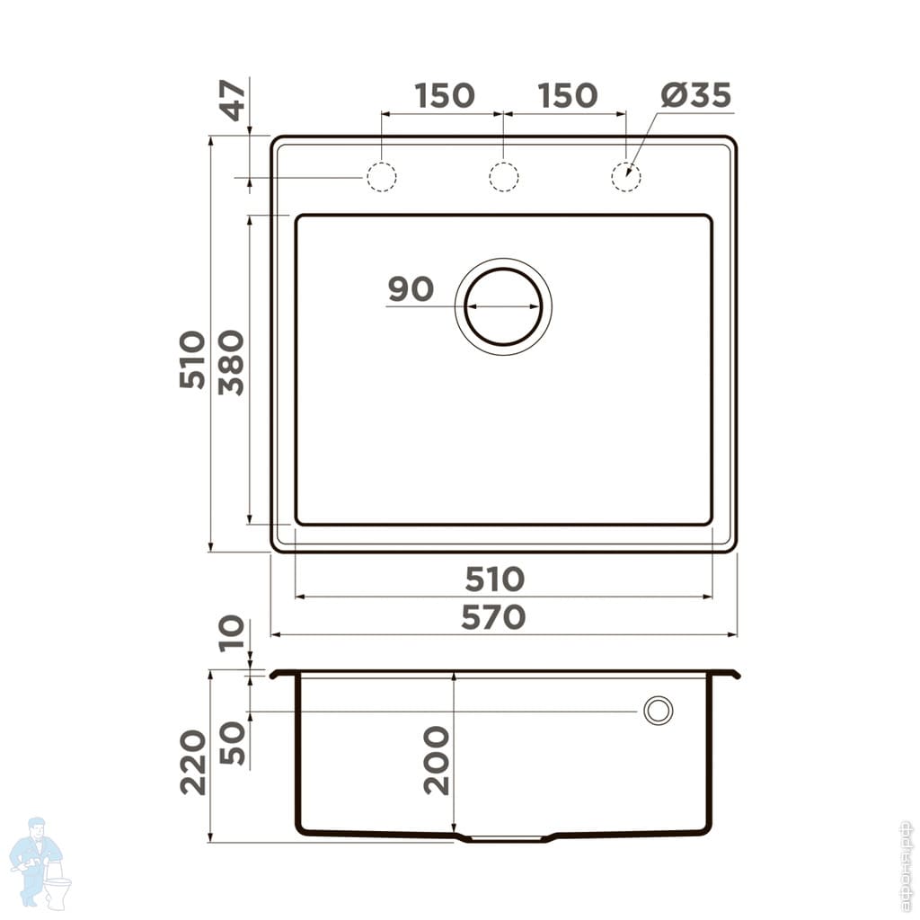 Мойка Omoikiri TAKI 49-U/IF-IN (490х440х200) монтаж врезной/подстольный/вровень, нерж. сталь 4973045Код: 107563
