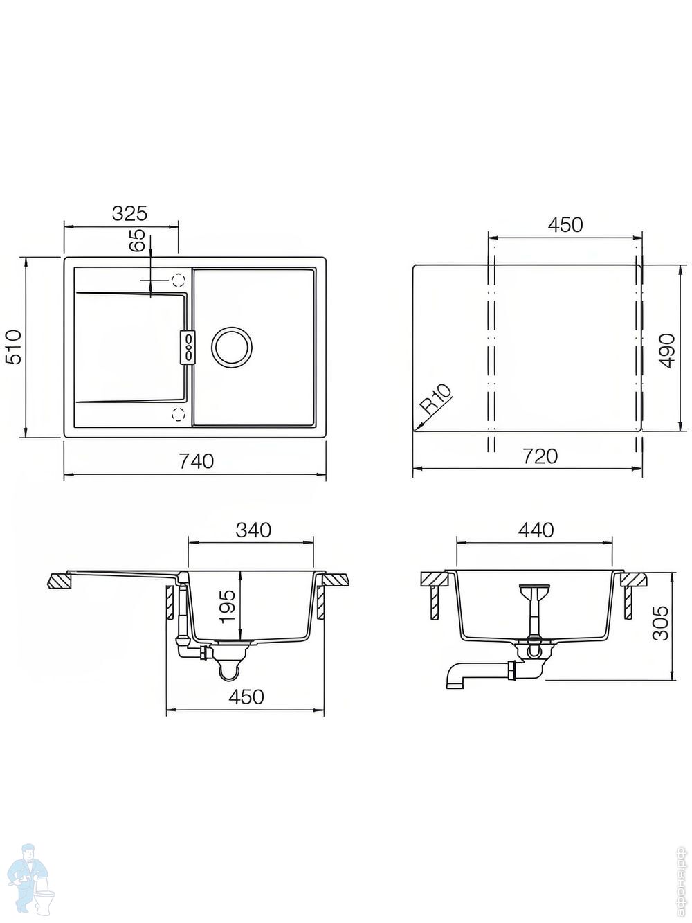 Мойки Schock Eton 45D (740x510) Cristadur на Афоня.рф