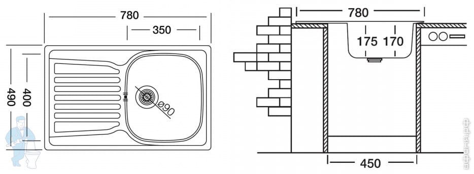 Врезные мойки для кухни Ukinox в подстолье от 45см на Афоня.рф