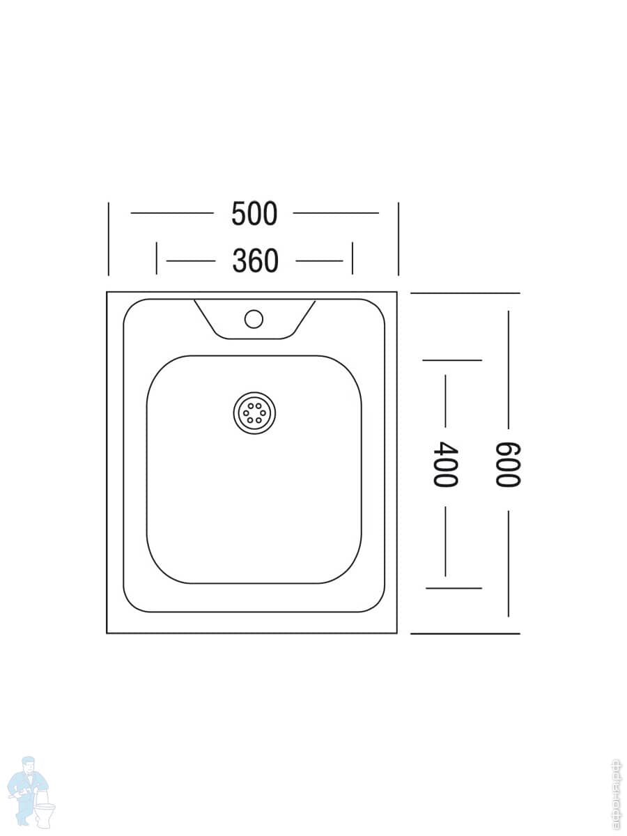 Мойка накладная Ukinox Standart 500х600 матовая нерж. сталь 0,5мм, слив 1 1/2, STD 500.600 ---5C 0C-Код: 4888