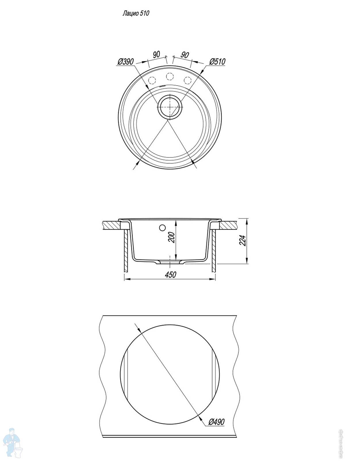 Мойка FLORENTINA Лацио (510х510х224) врезная сверху, кварцевый композит, серый шелк 17.010.B0510.307Код: 256699