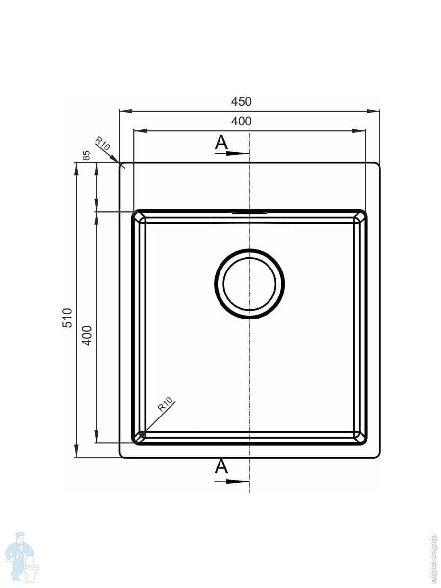 Мойка FLORENTINA Липси 460 FG (460х510х217) врезная сверху,кварцевый комп.,антрацит 20.280.B0460.302Код: 70733