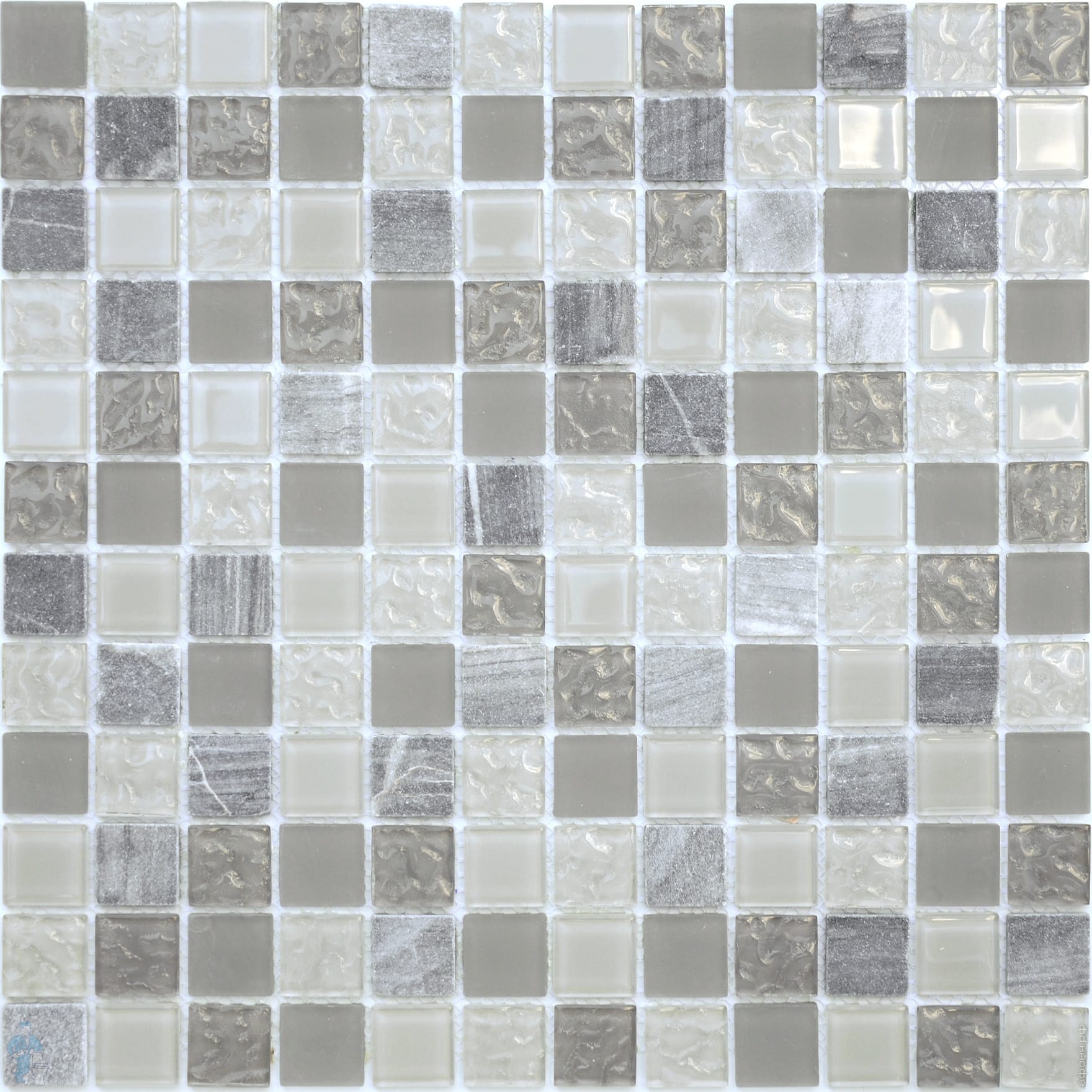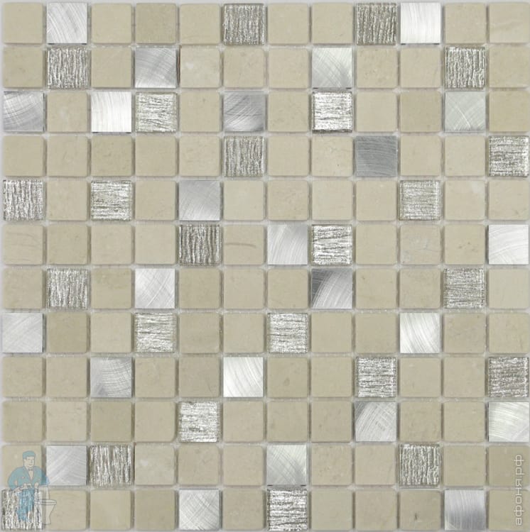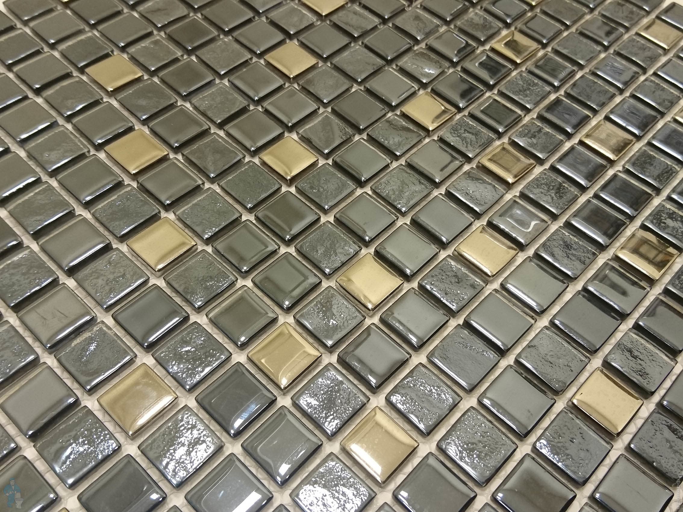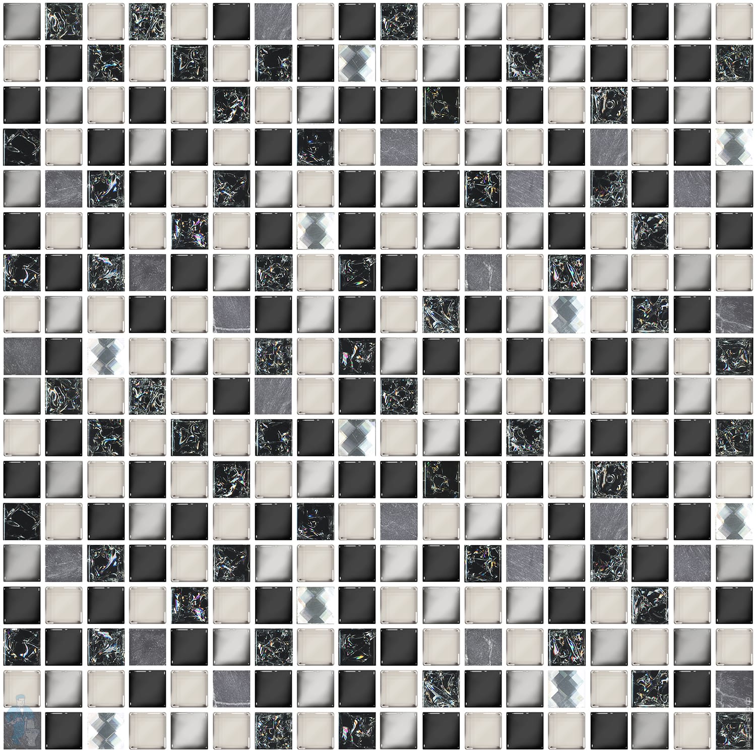 Мозаика стеклянная с камнем LeeDo Naturelle Alcantara Nero 23х23 (298х298x8) серебристо-черная (шт.)Код: 111853